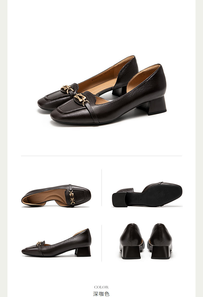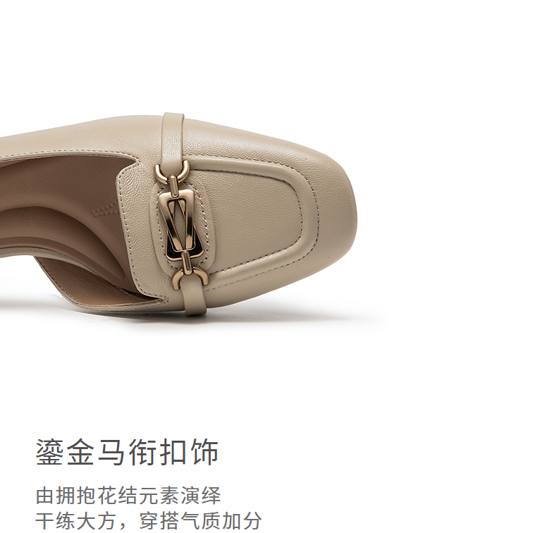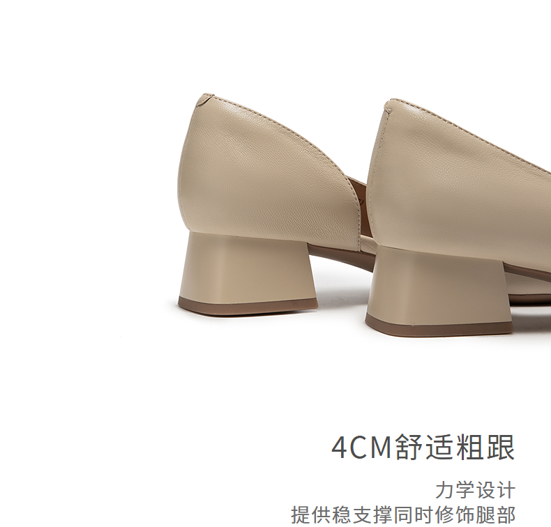 千百度中跟裸色浅口单鞋女春季尖头增高显瘦通勤小皮鞋A24106016