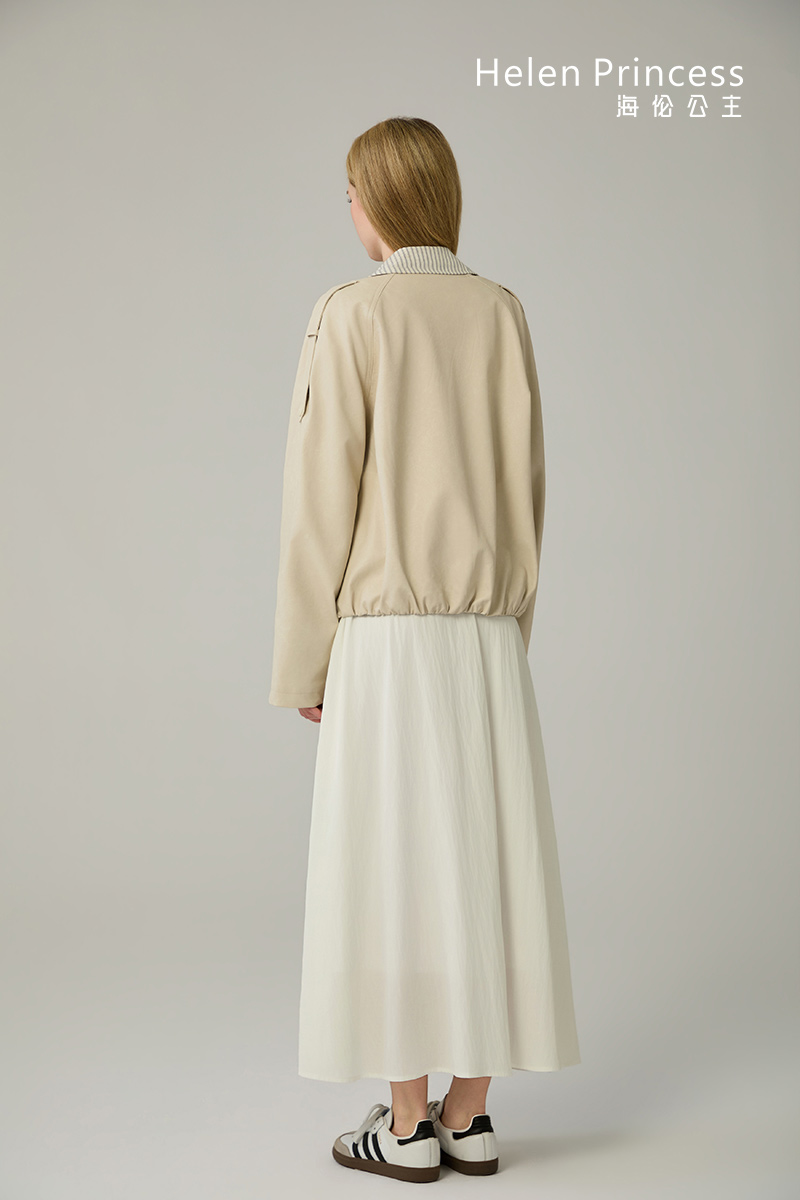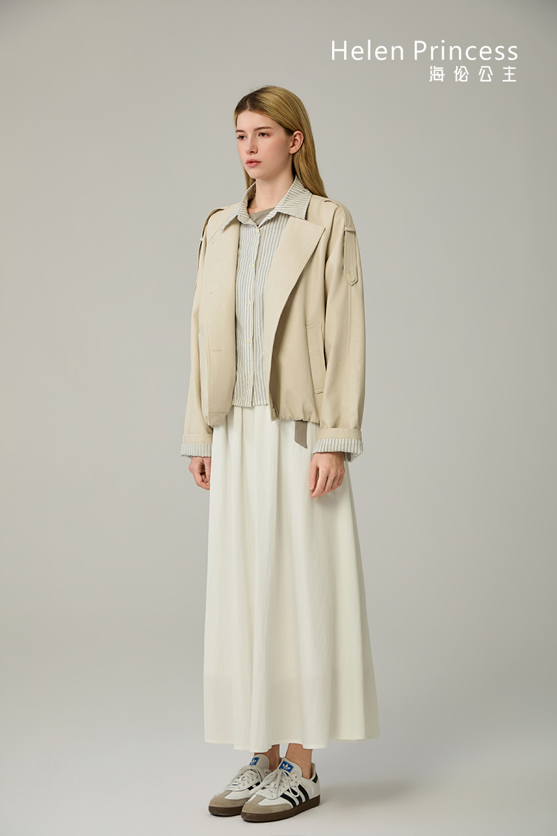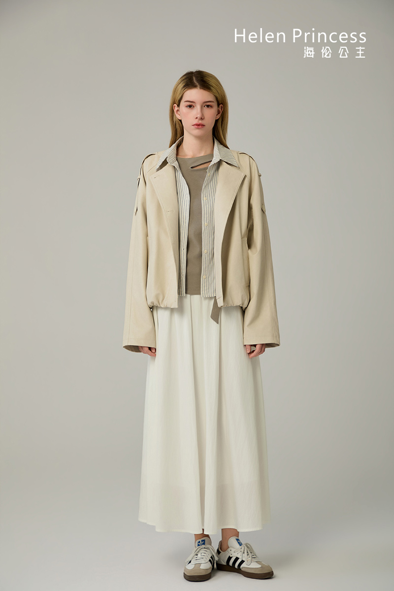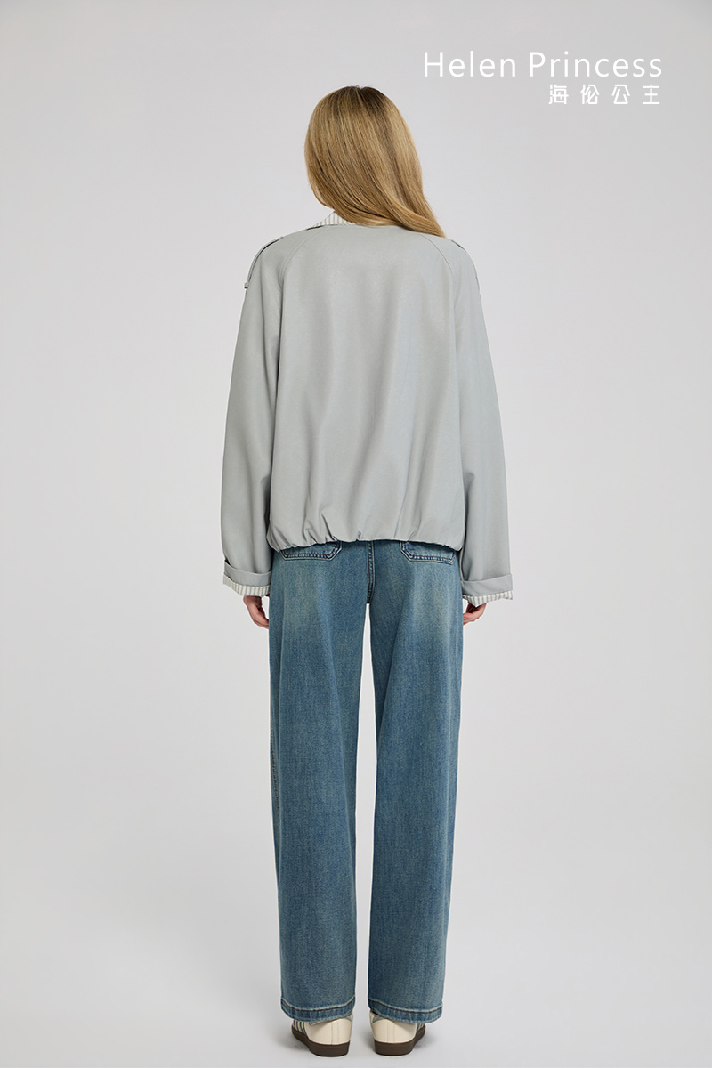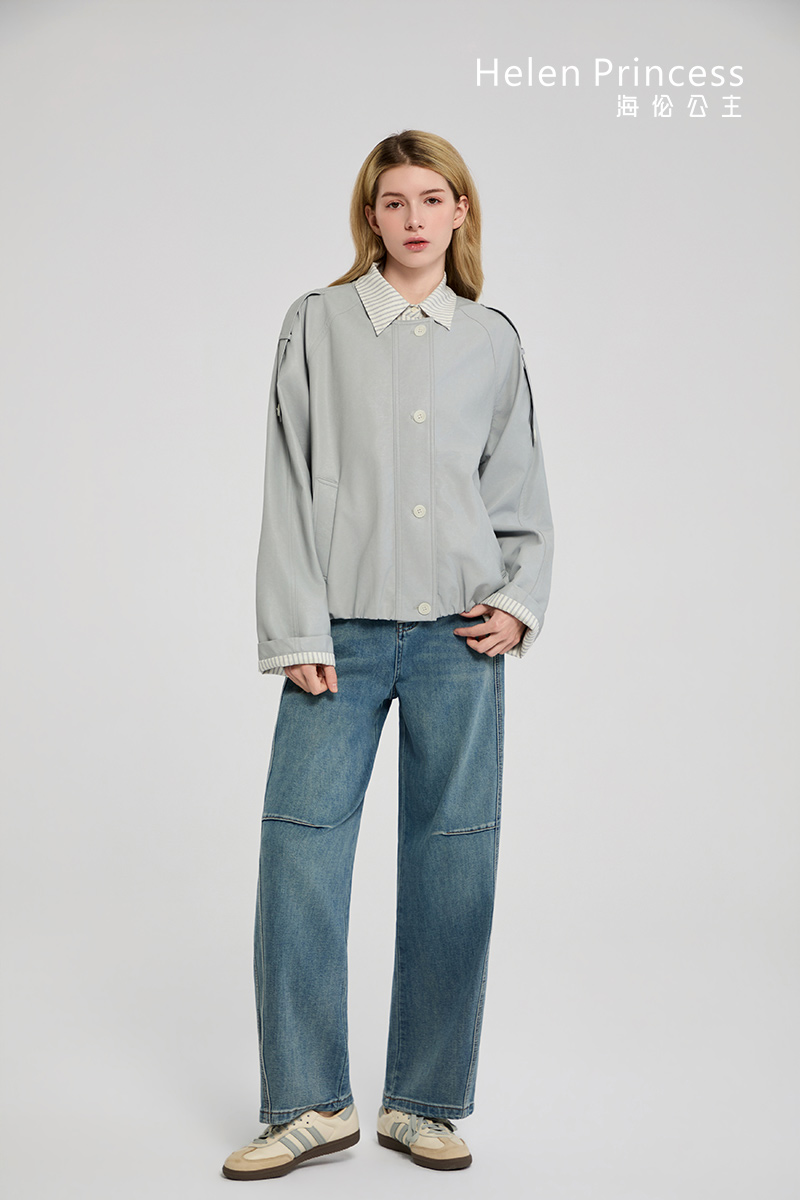 采用衬衫与皮衣元素的拼接设计,条纹衬衫带来的清新靓丽柔和了皮衣的挺括酷感。整体版型宽松版型,兼具休闲与时尚感。