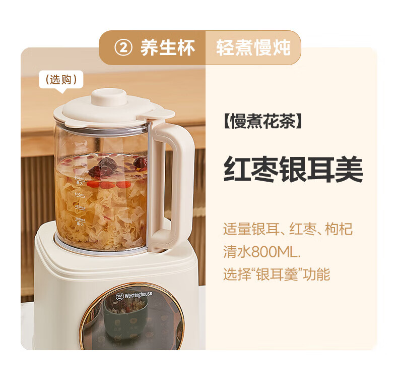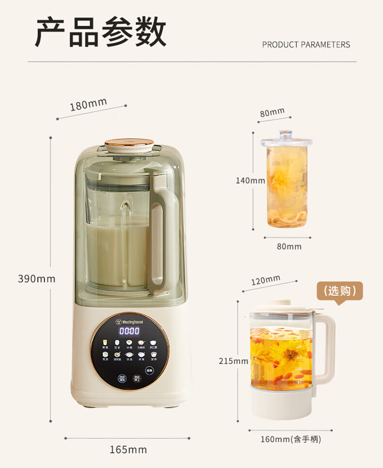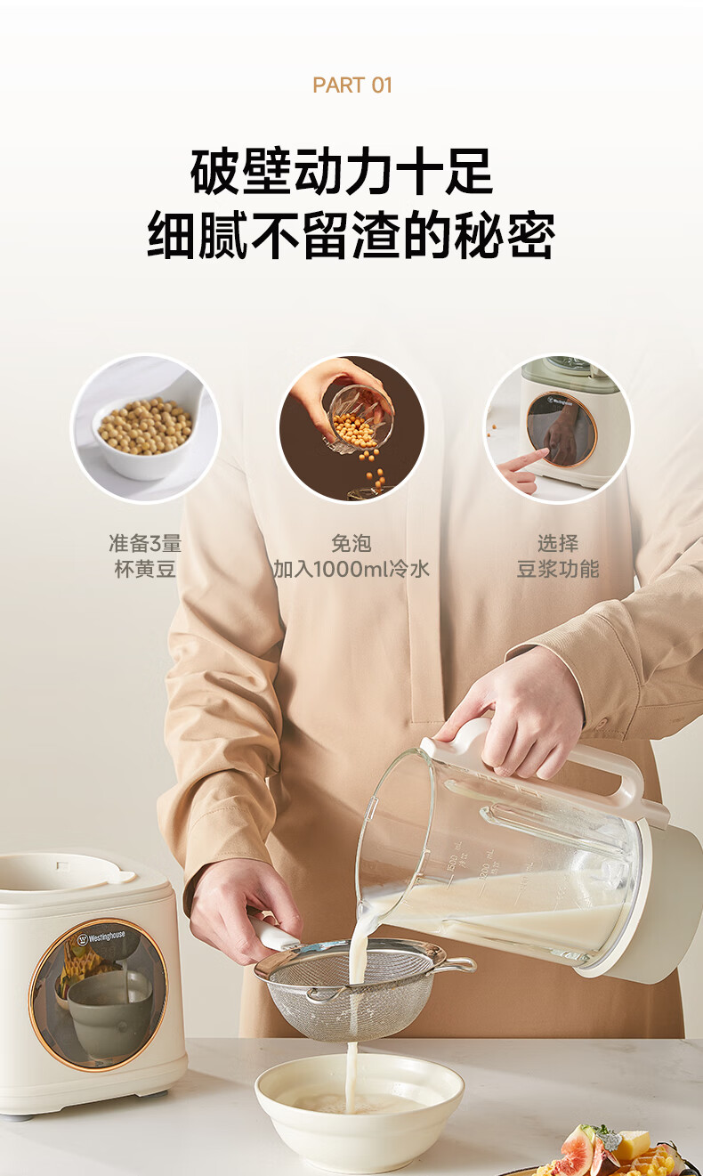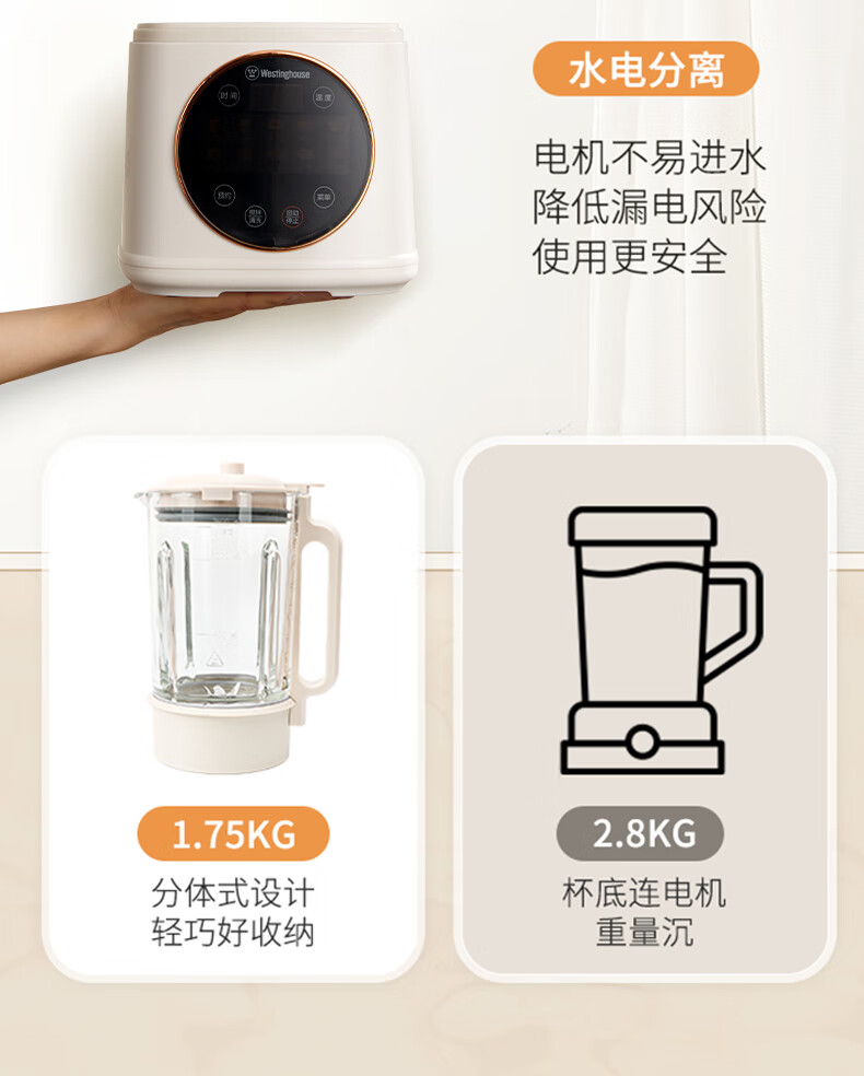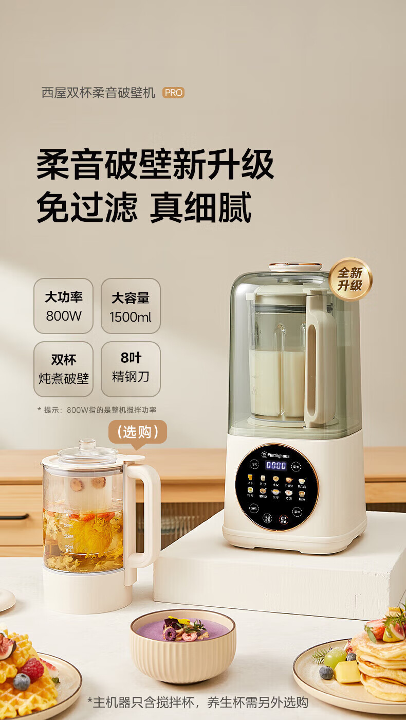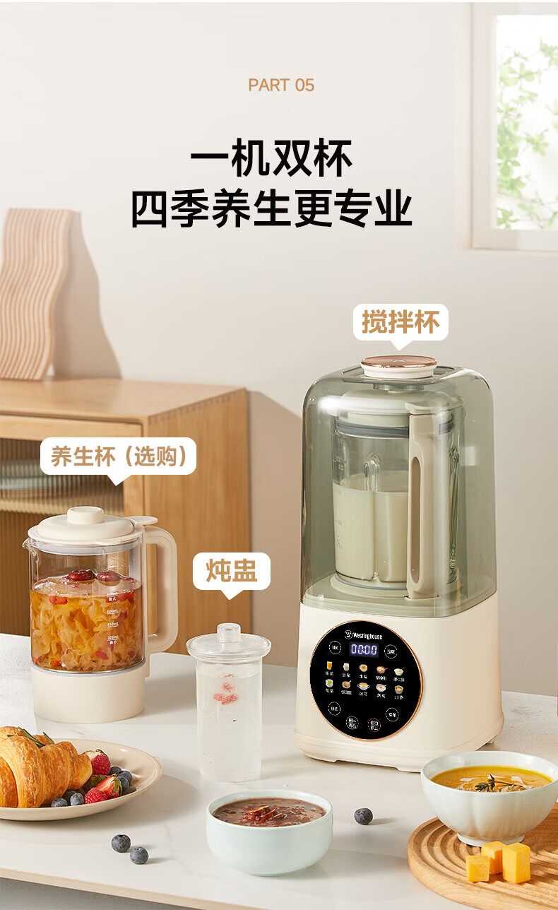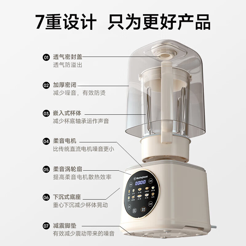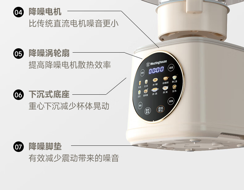 西屋(Westinghouse)柔音破壁机家用豆浆机加热全自动榨汁机搅拌机降噪辅食机 WPB15J7杏仁白(tz)