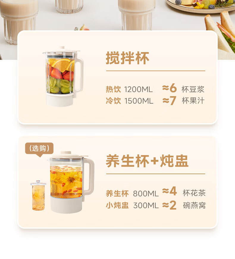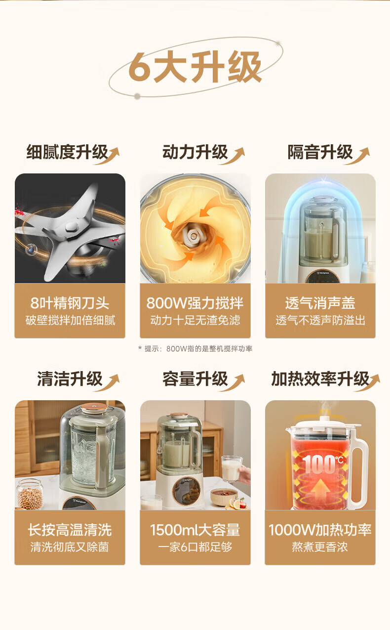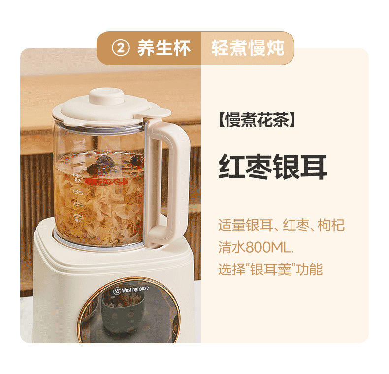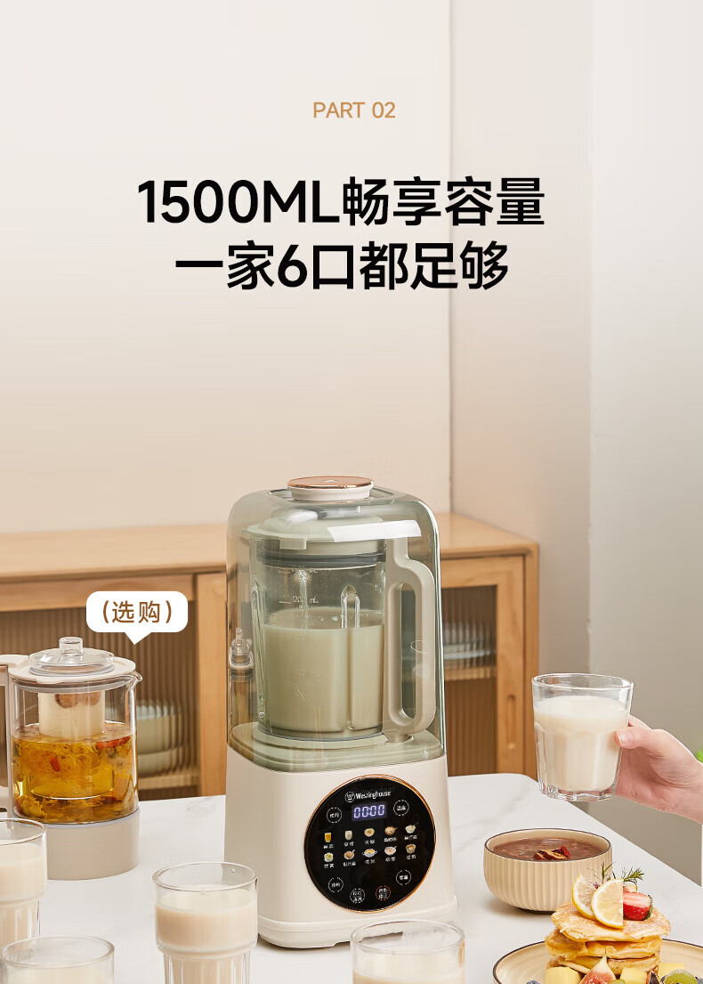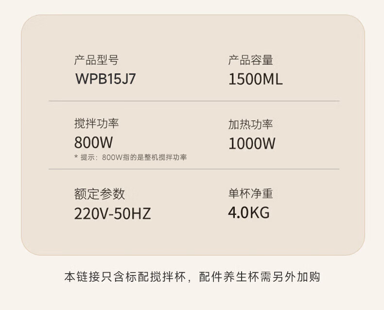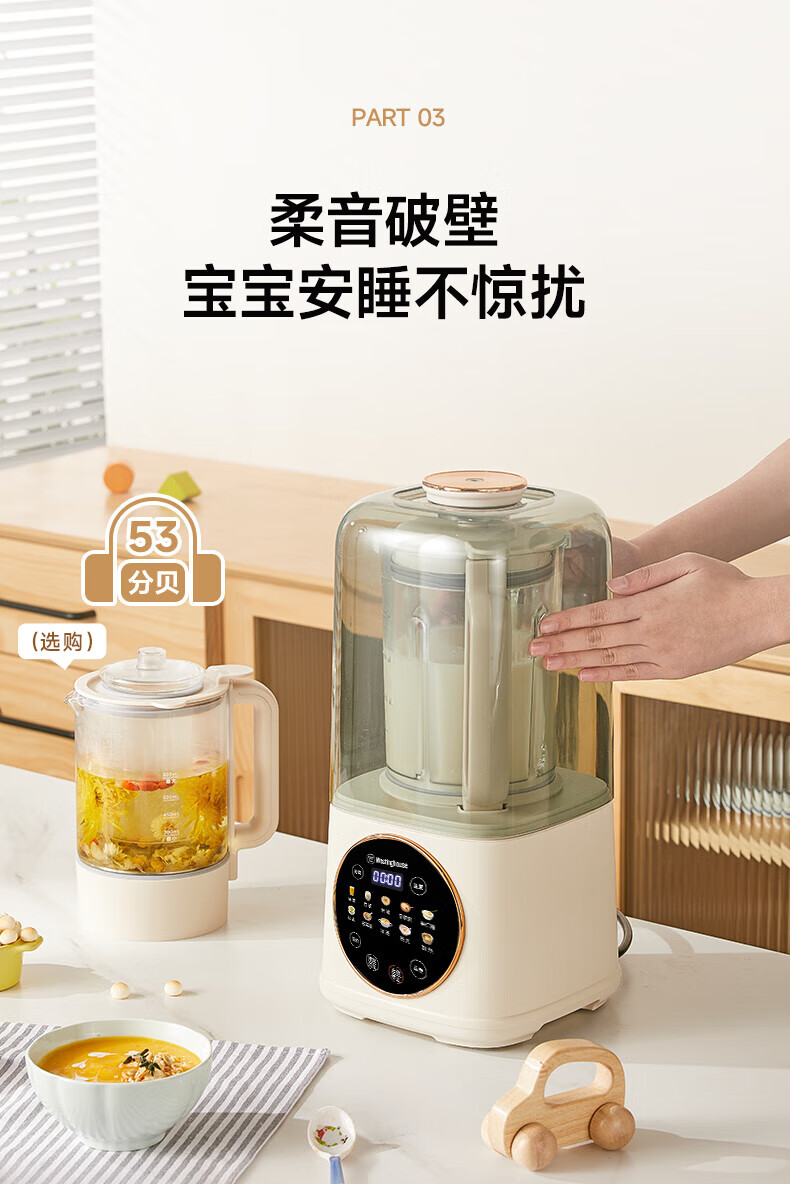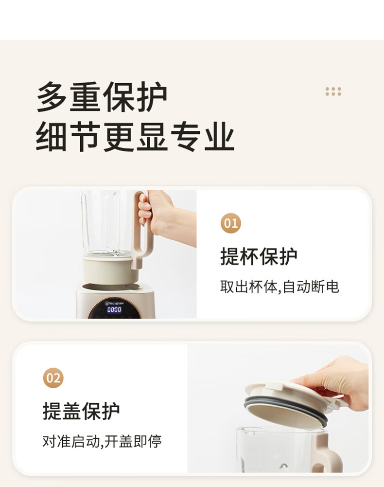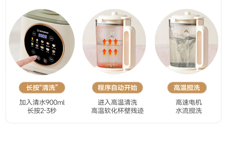 西屋(Westinghouse)柔音破壁机家用豆浆机加热全自动榨汁机搅拌机降噪辅食机 WPB15J7杏仁白(tz)