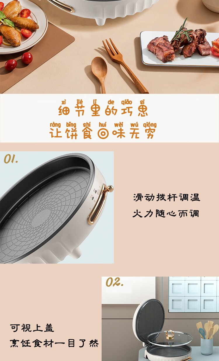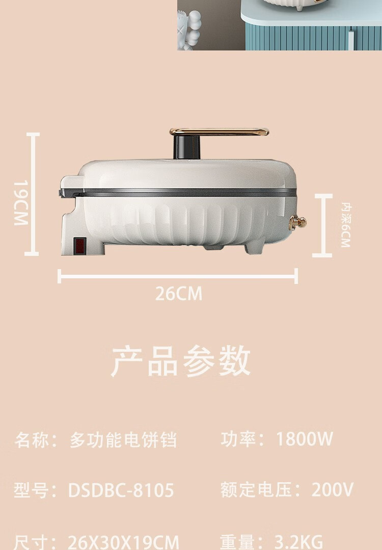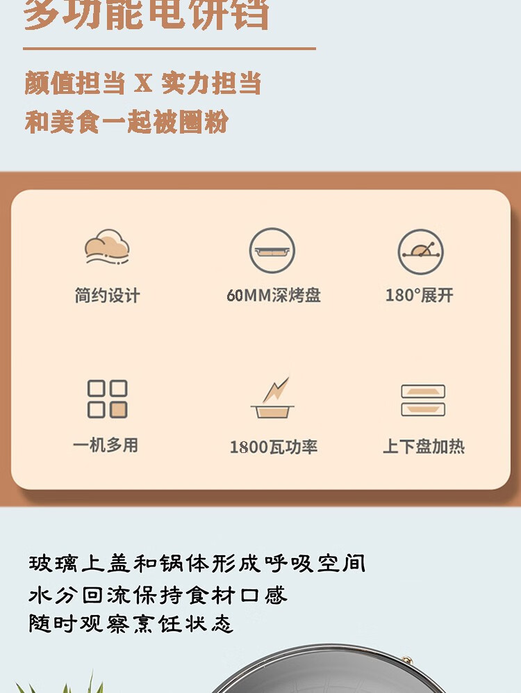 都市太太都市太太高尔夫系列多功能电饼铛家用电饼铛双面加热1800W大火力早餐机煎烤机