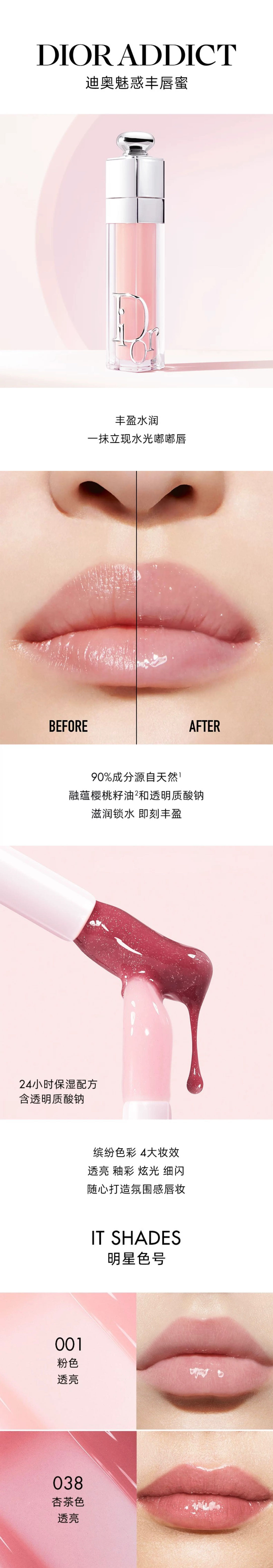 【11.21 分拥专属 跨境直邮】Dior迪奥唇部护理三件套 变色唇膏001#3.2g (正装)+丰唇蜜001#6ml(正装) +丰唇蜜038#2ml(小样)