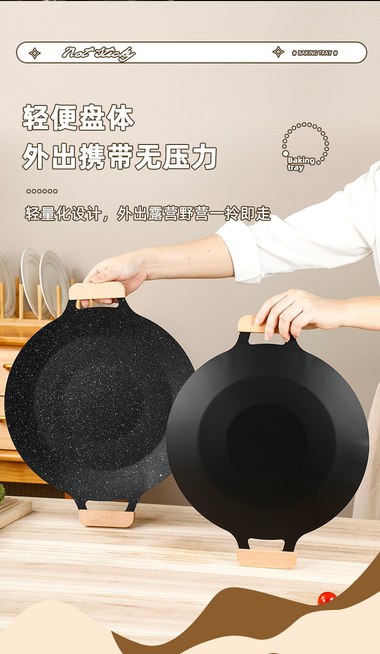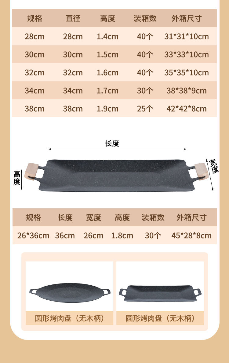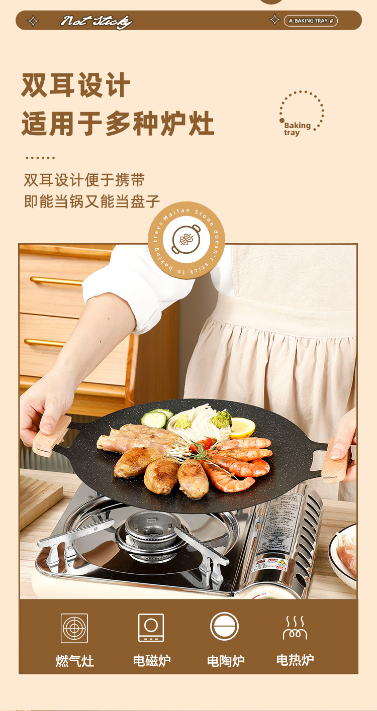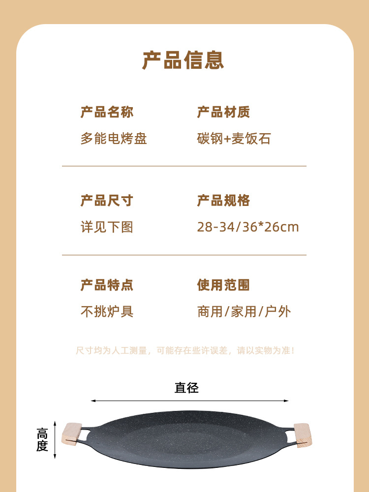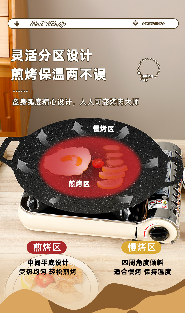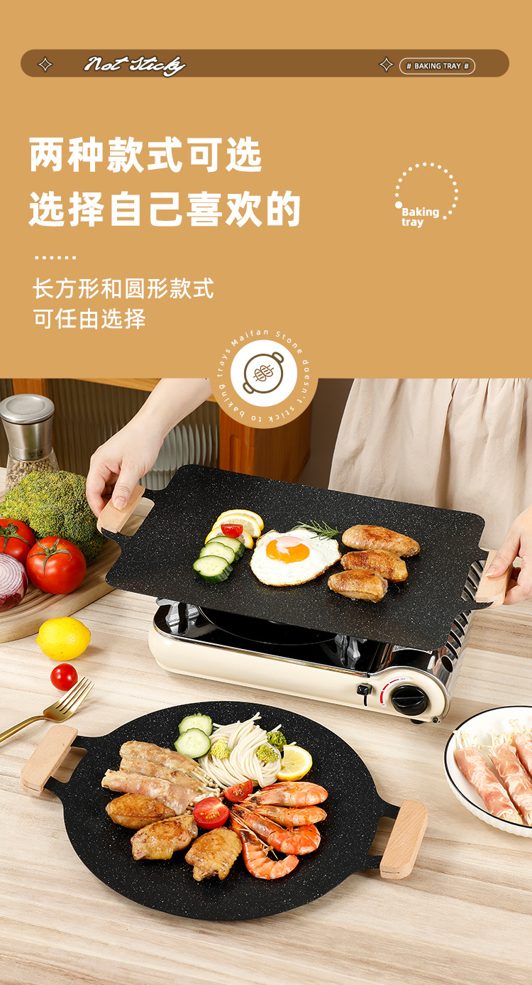 户外麦饭石烤肉盘不粘韩式商用铁板烧电磁炉家用烧烤盘烤肉专用锅