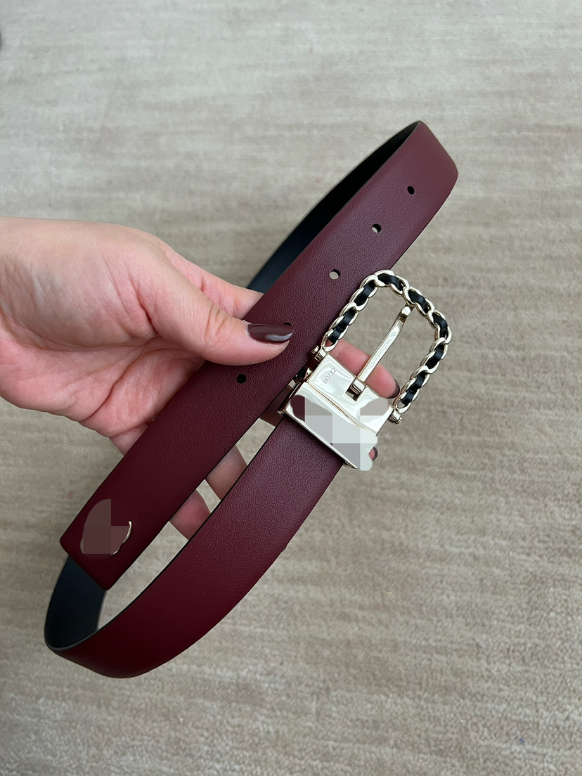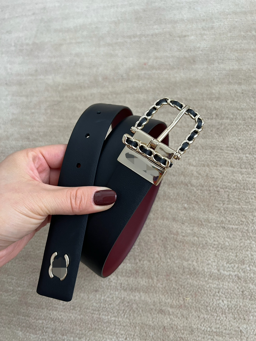 1110-3 真香 双面胎牛皮 皮穿链条针扣 女士腰带皮带 看欧码 自留80码
