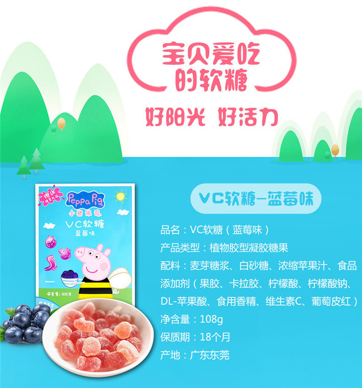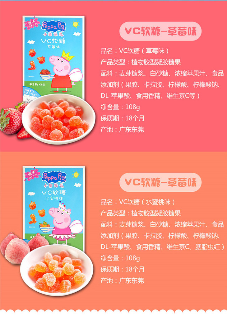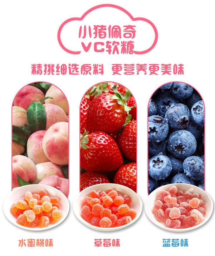 亿智小猪佩奇VC软糖儿童糖果水果味橡皮果汁糖108g
