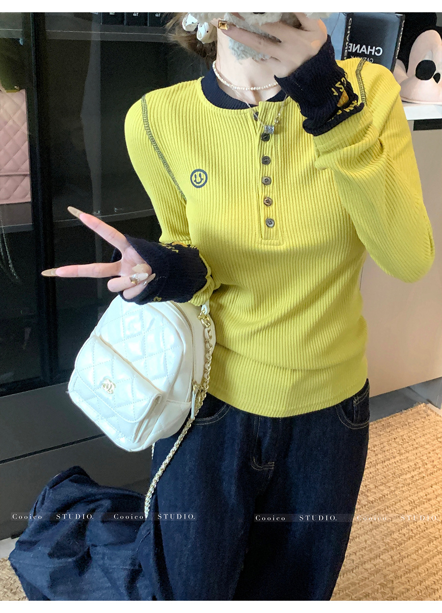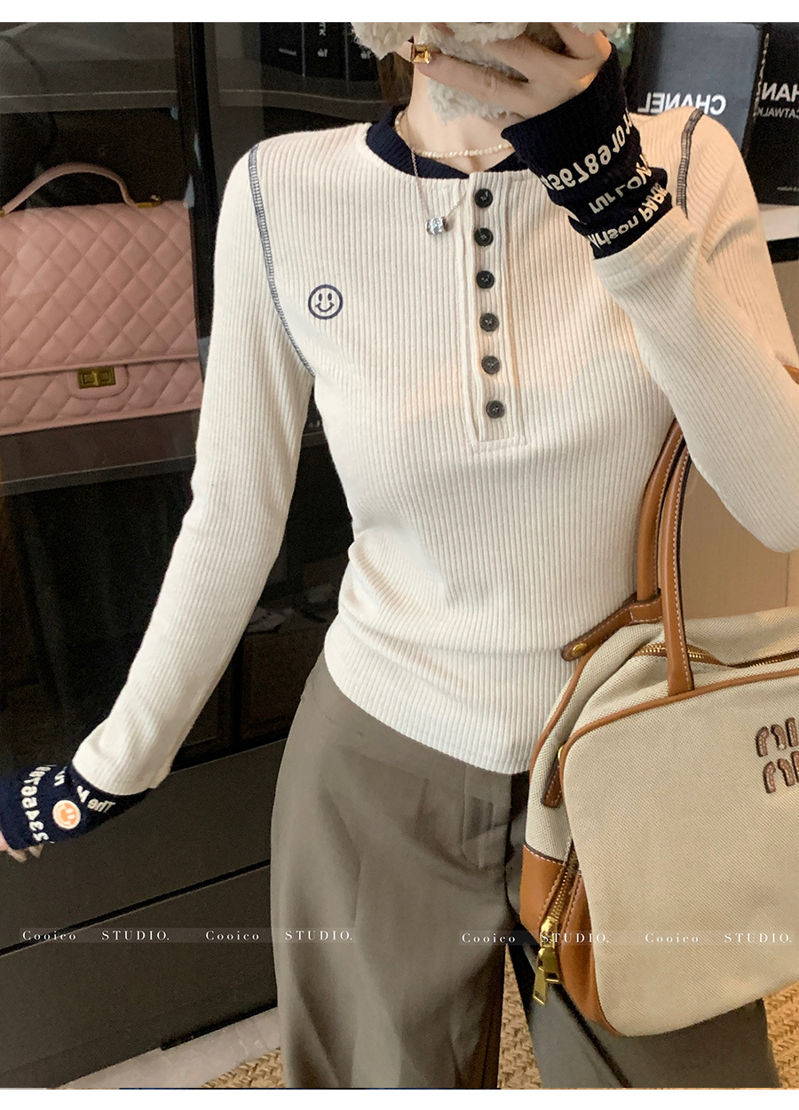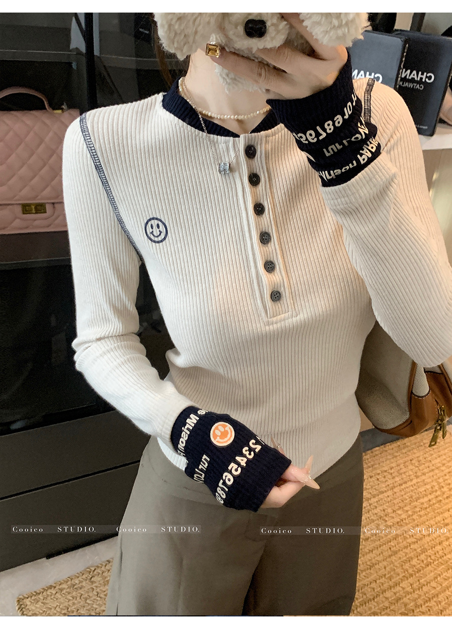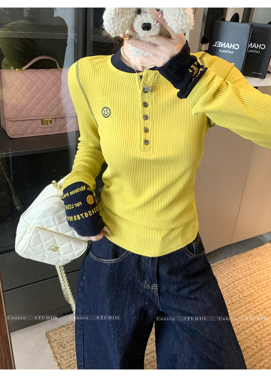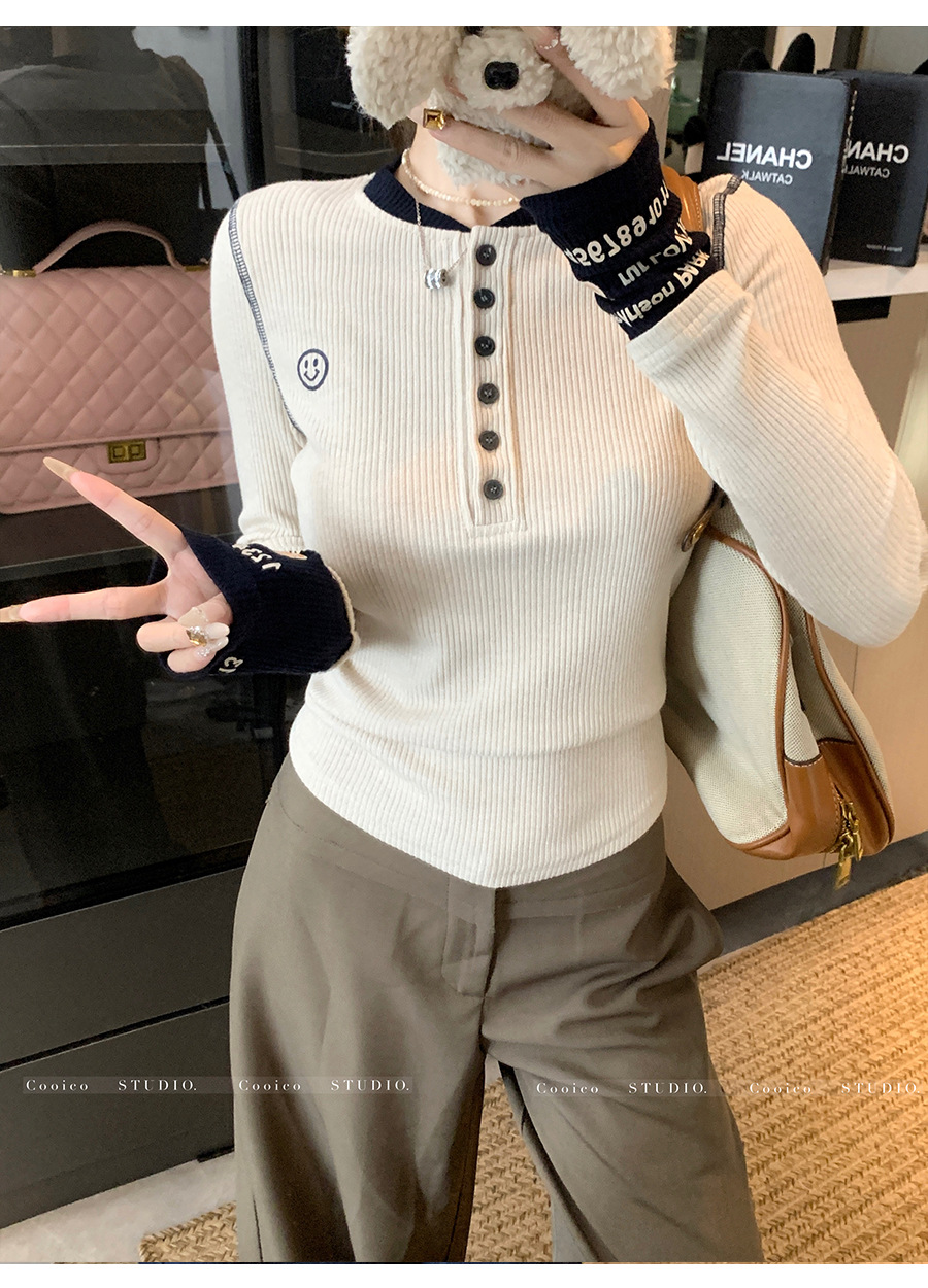 【99元2件】多巴胺撞色针织衫 早春2025设计感刺绣外穿修身显瘦上衣