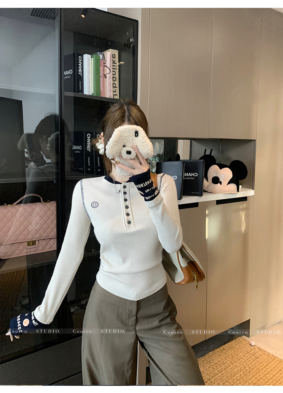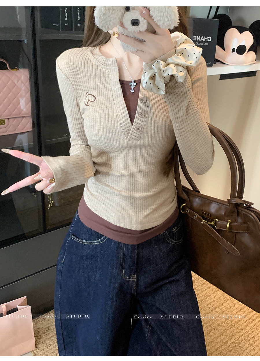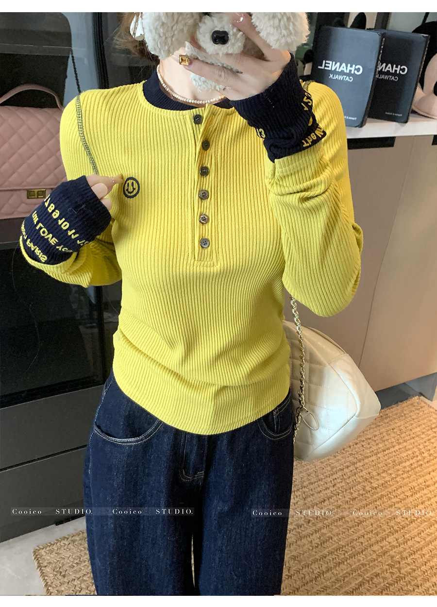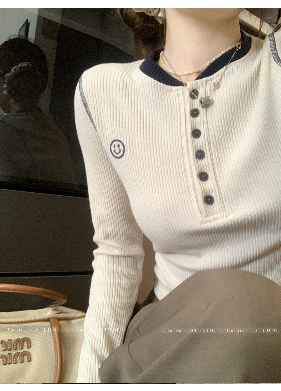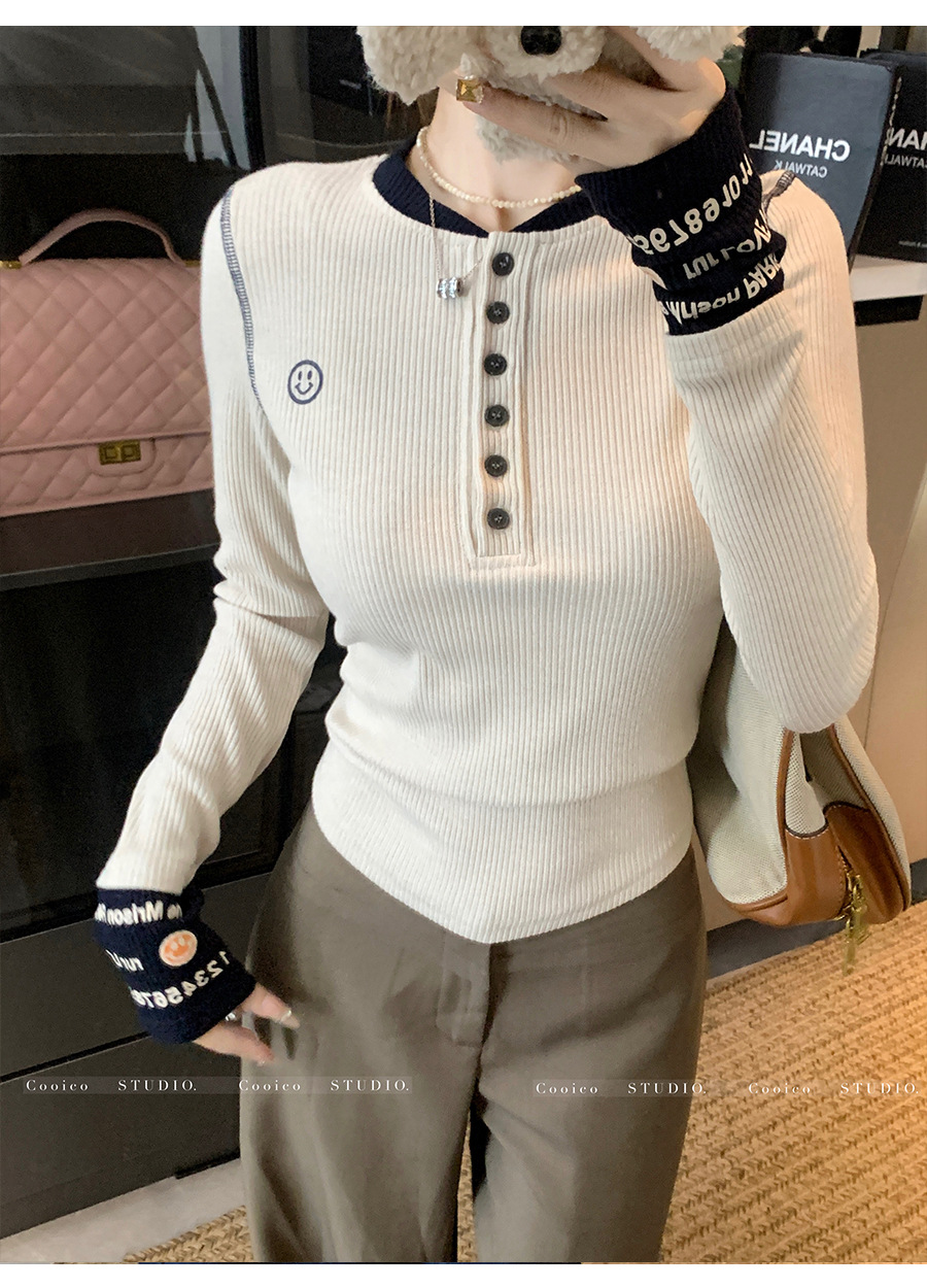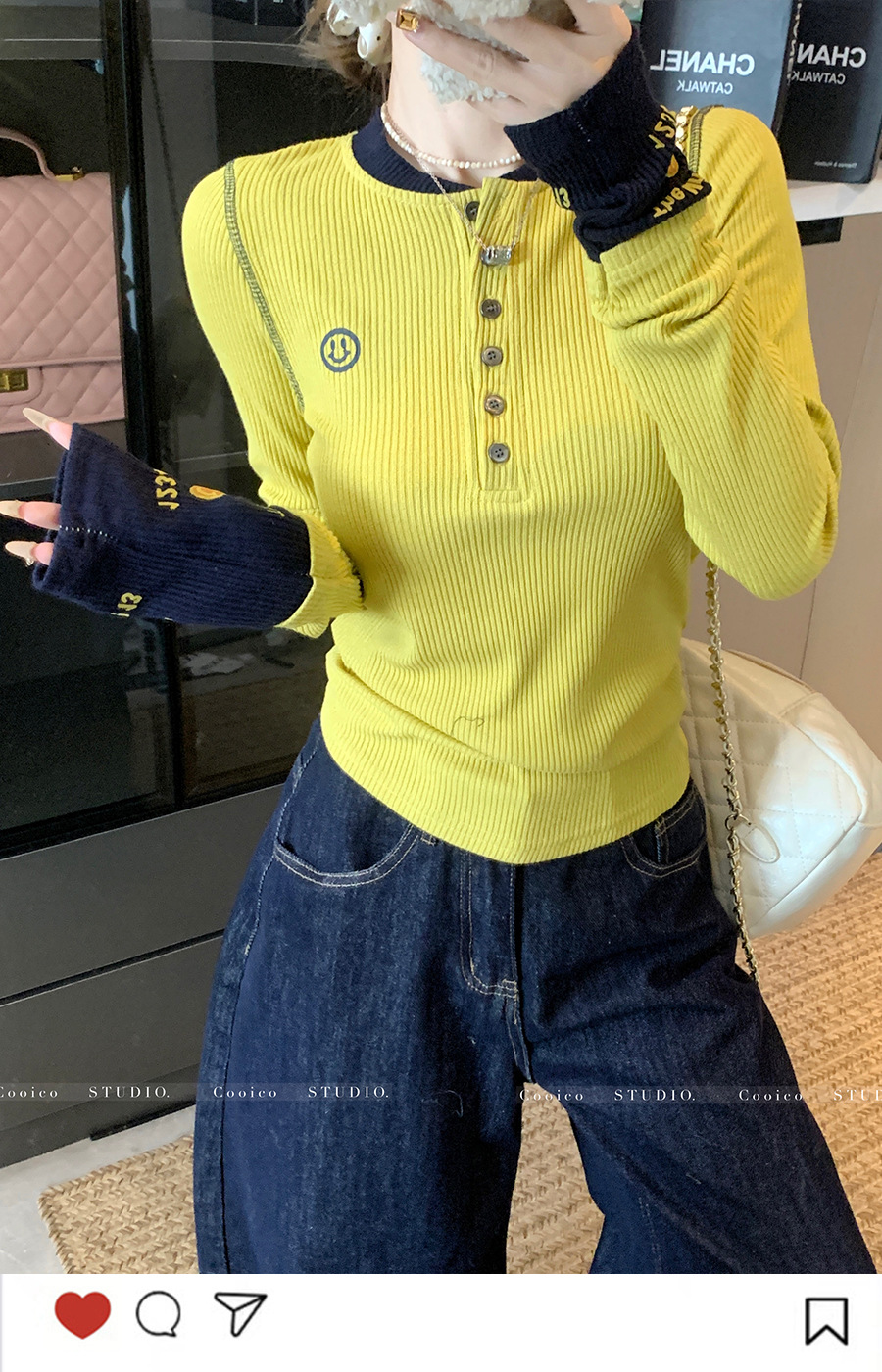 【99元2件】多巴胺撞色针织衫 早春2025设计感刺绣外穿修身显瘦上衣