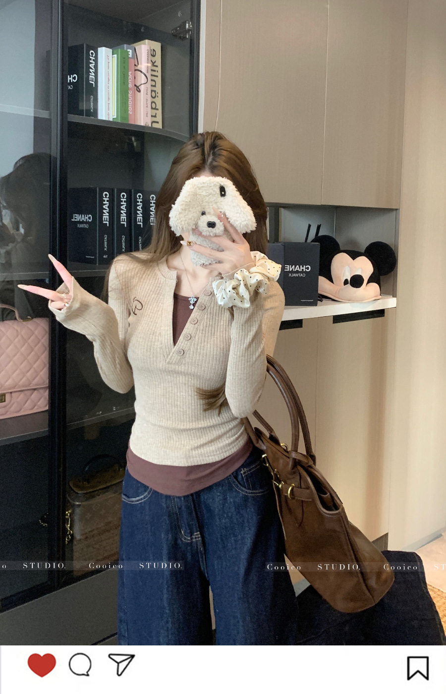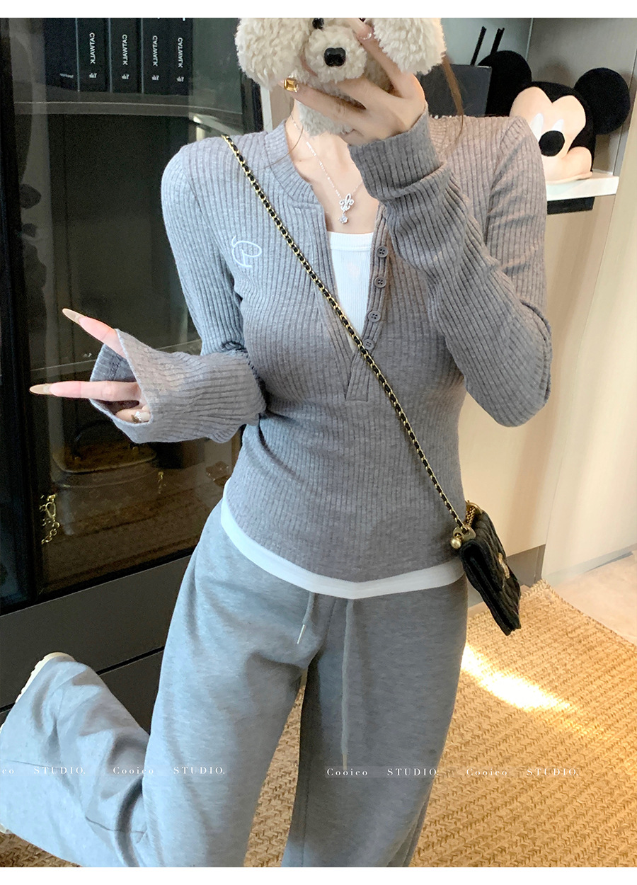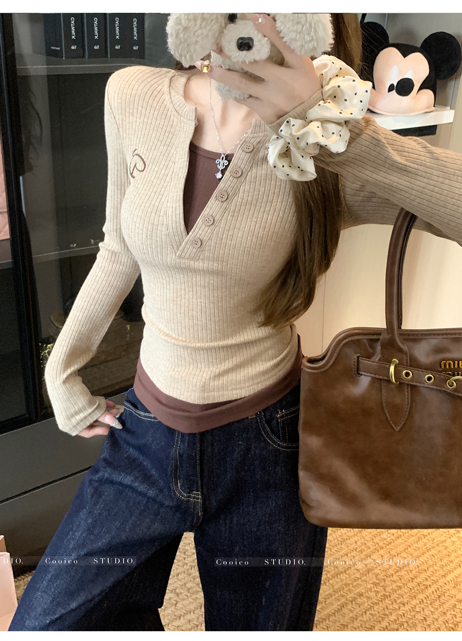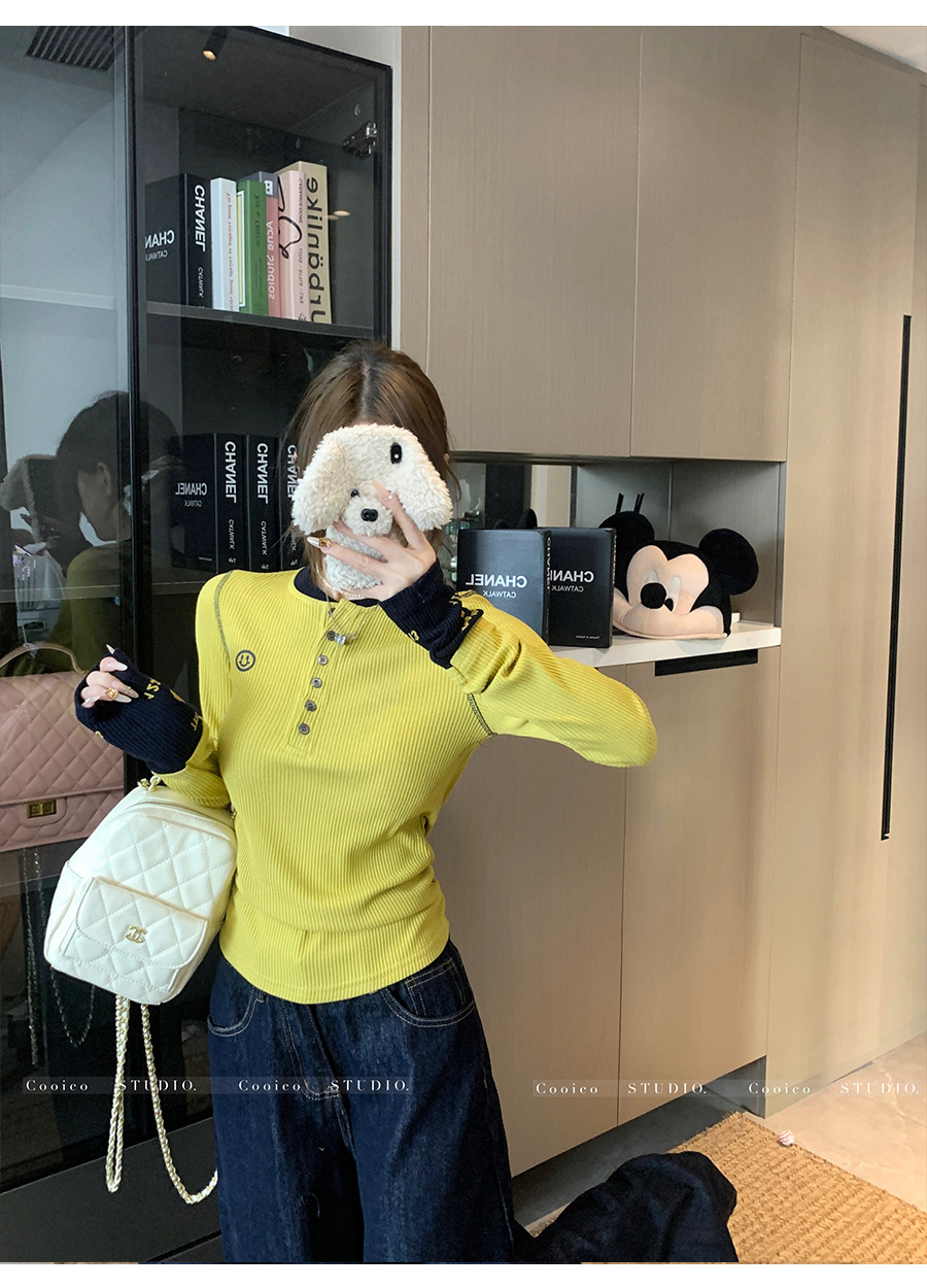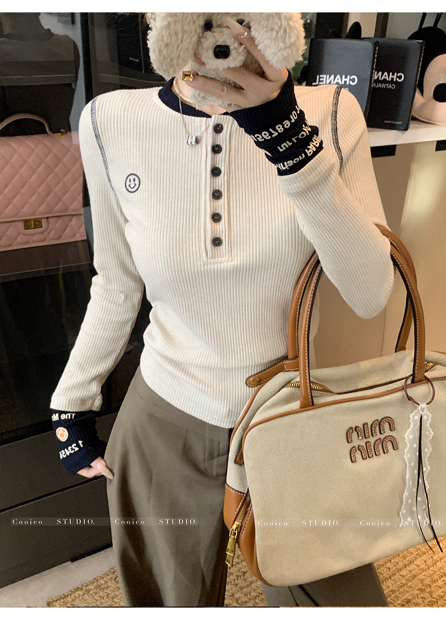 【99元2件】多巴胺撞色针织衫 早春2025设计感刺绣外穿修身显瘦上衣