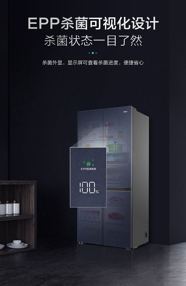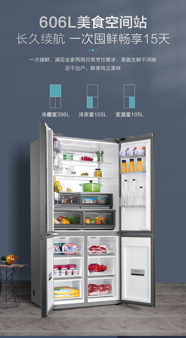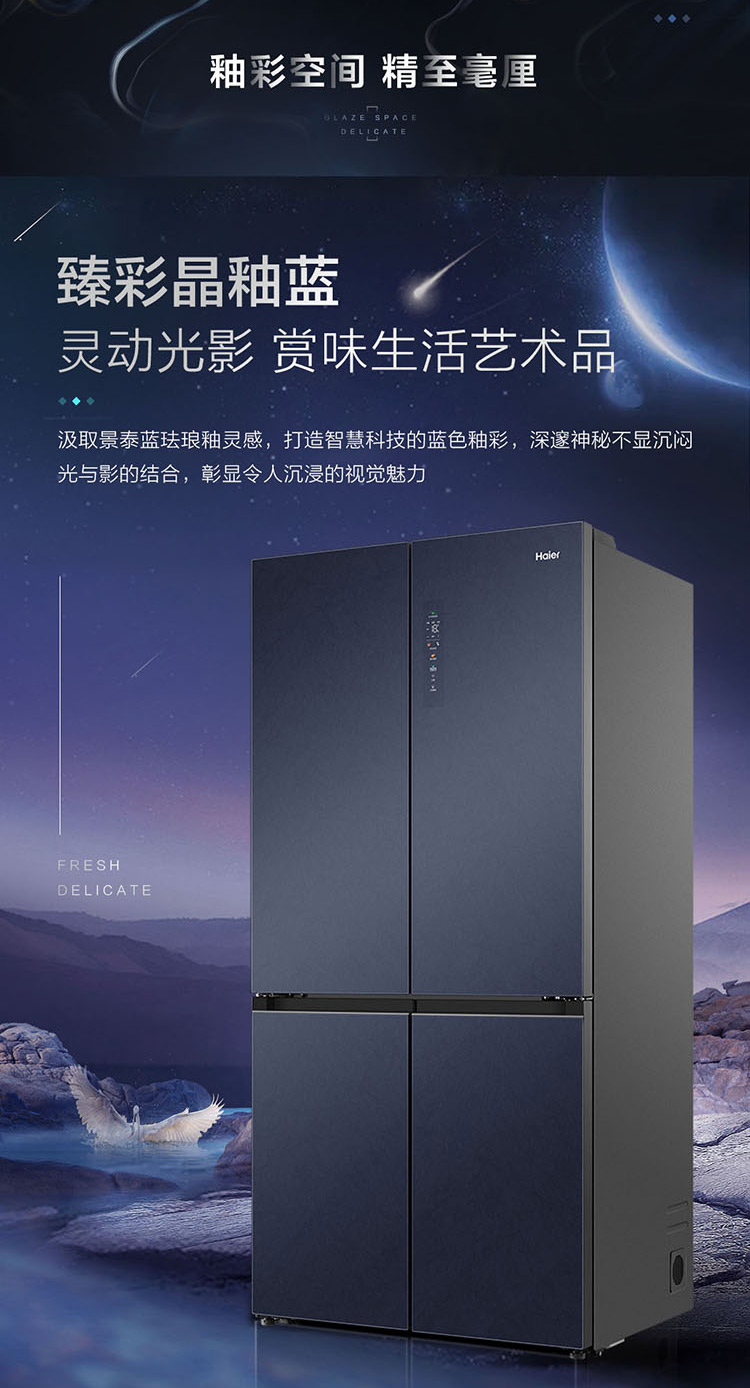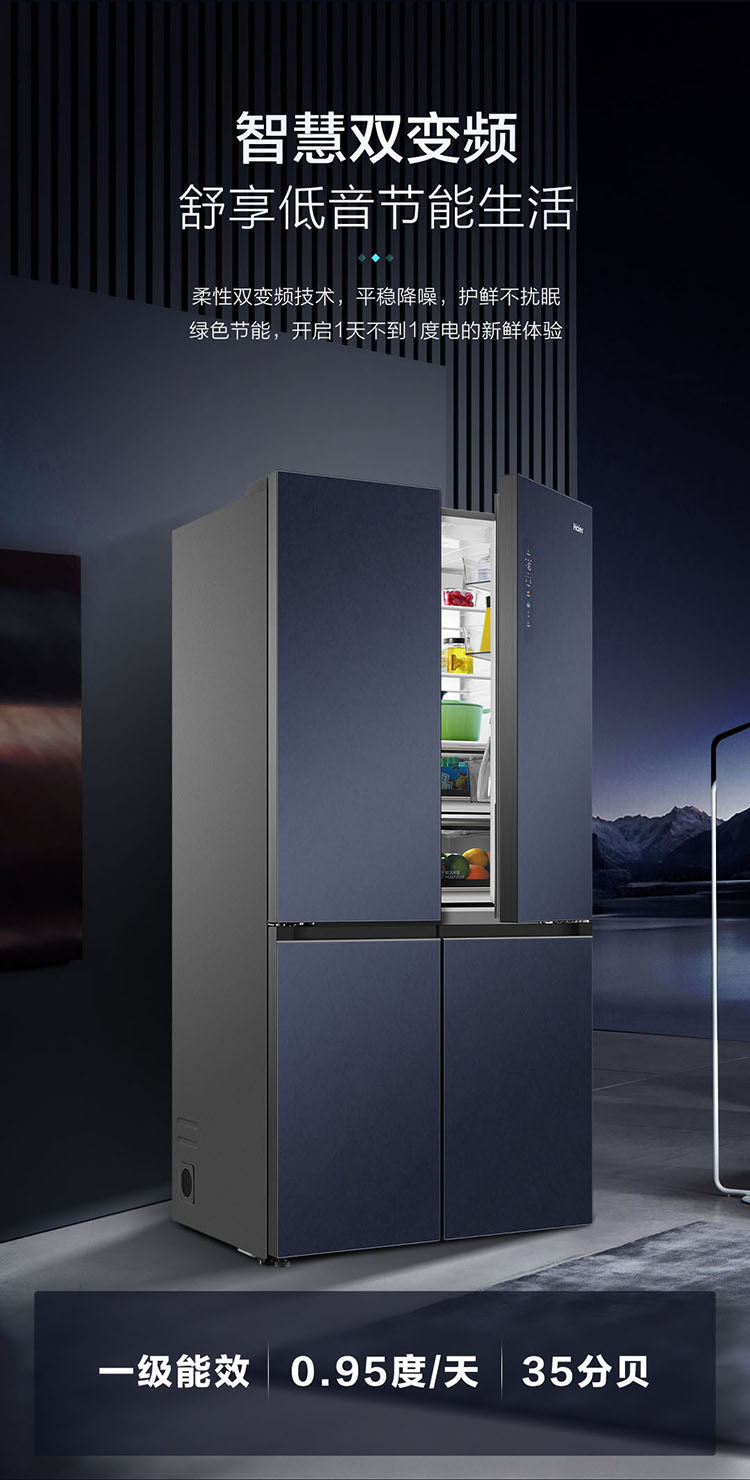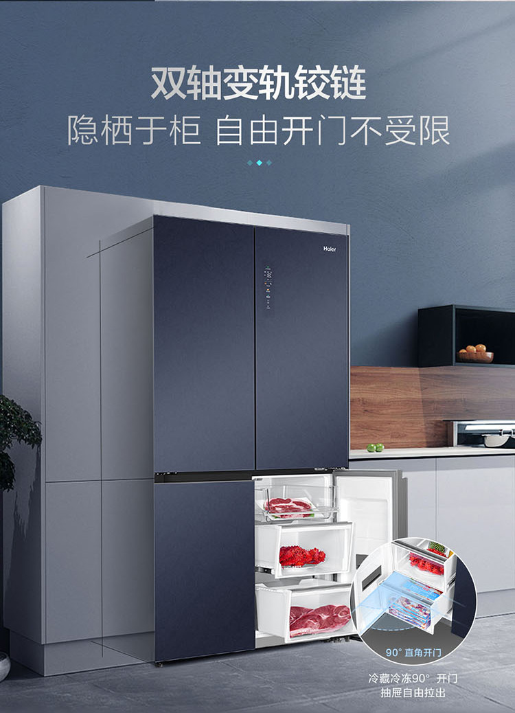 【全空间保鲜科技】海尔(Haier)冰箱十字四开门零距离自由嵌入式底部前置散热一级变频超薄冰箱 【零嵌入三系统】606升905mm宽晶釉蓝冰箱606WGHTD14BRU1
