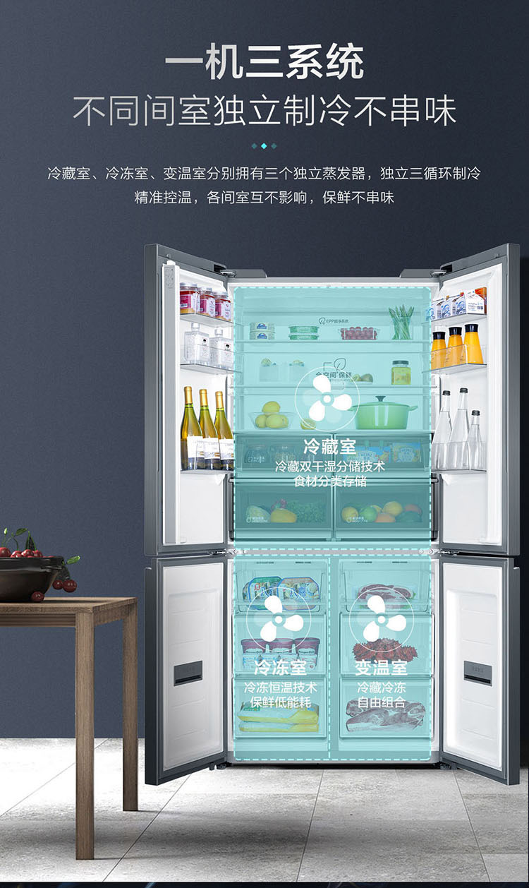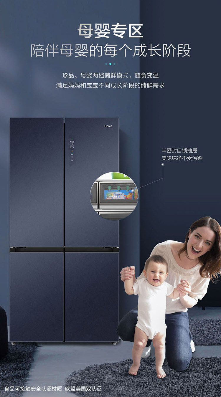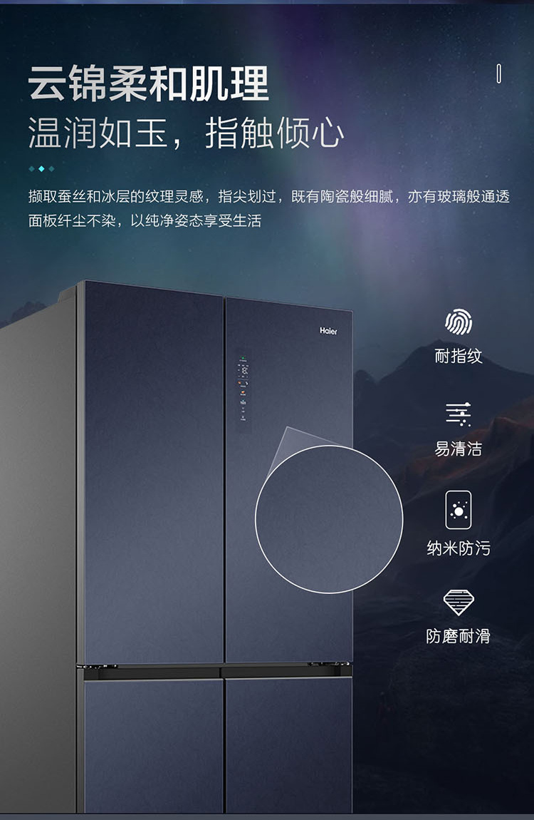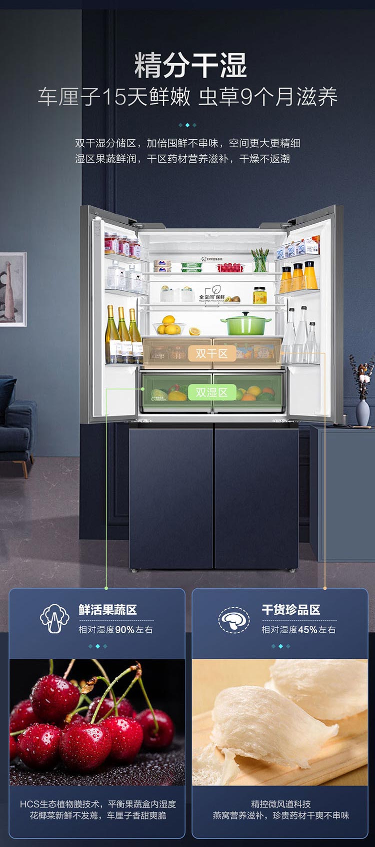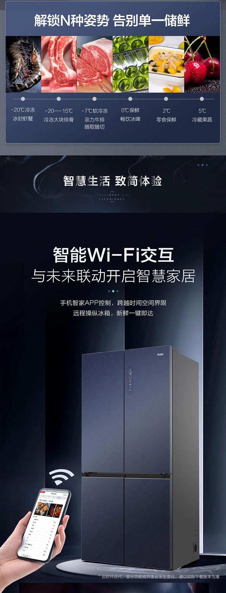【全空间保鲜科技】海尔(Haier)冰箱十字四开门零距离自由嵌入式底部前置散热一级变频超薄冰箱 【零嵌入三系统】606升905mm宽晶釉蓝冰箱606WGHTD14BRU1