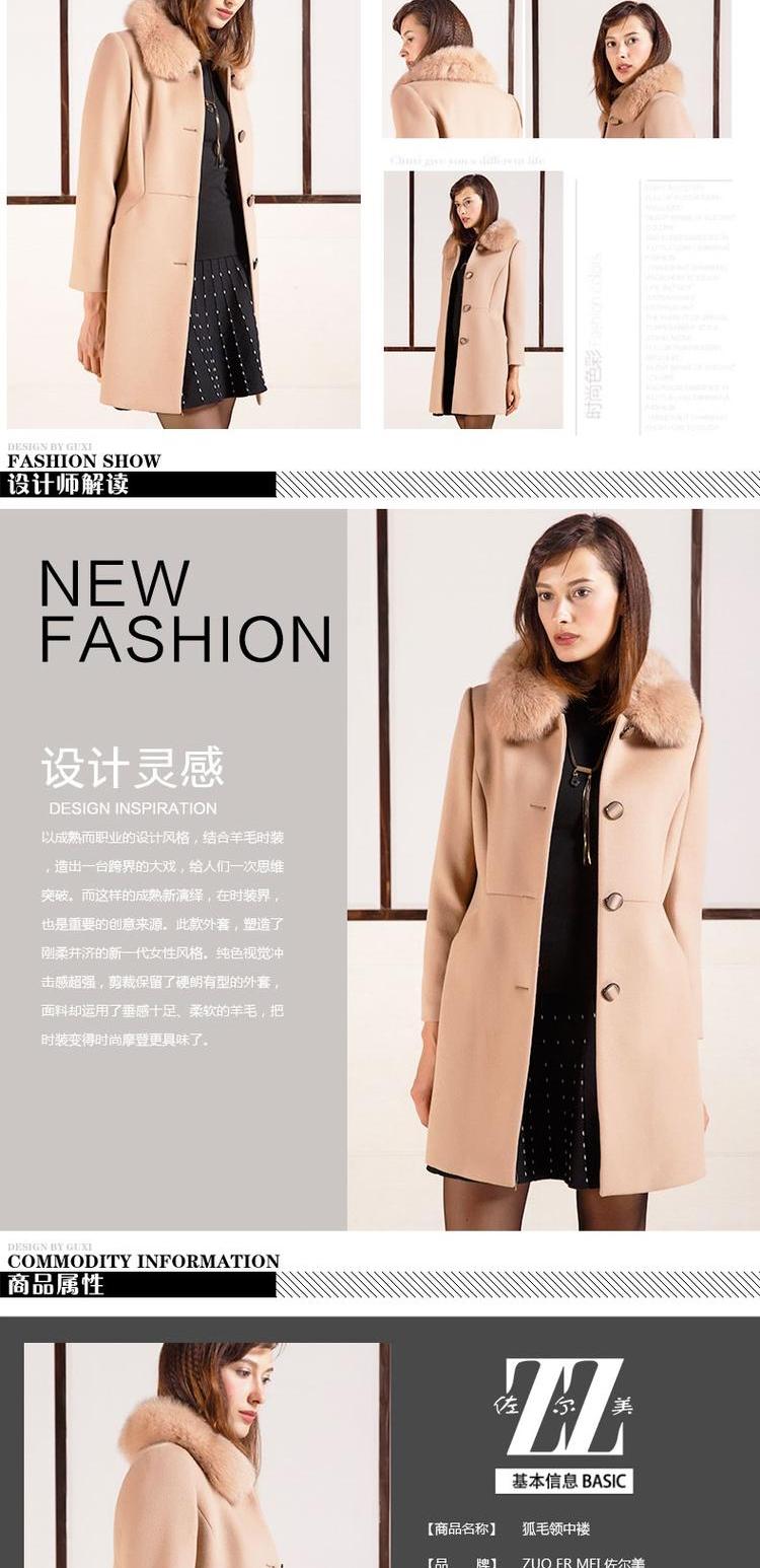 佐尔美新品中长款羊毛妮子大衣毛领单排扣毛呢外套女E44ZH78