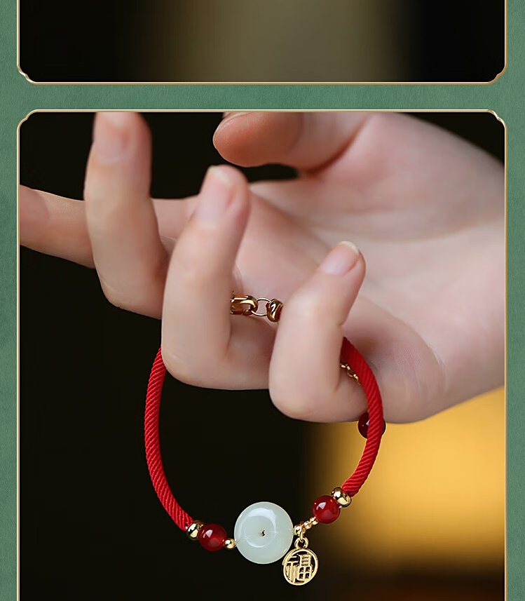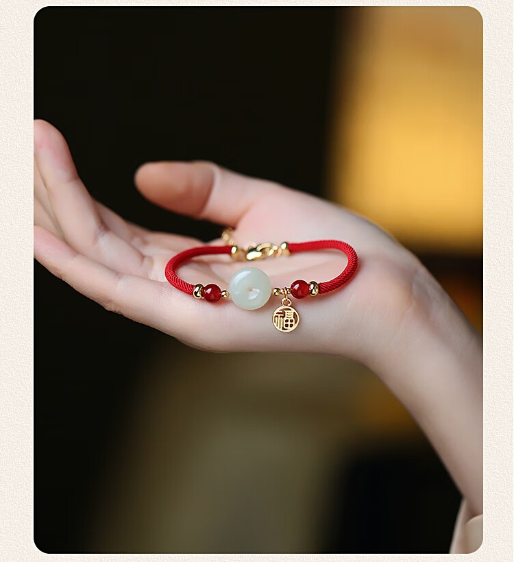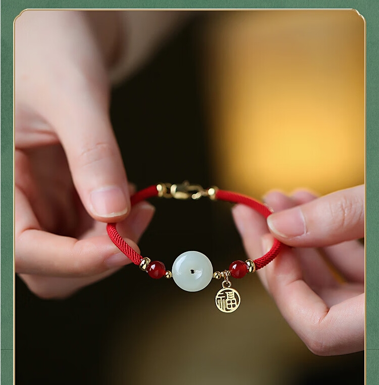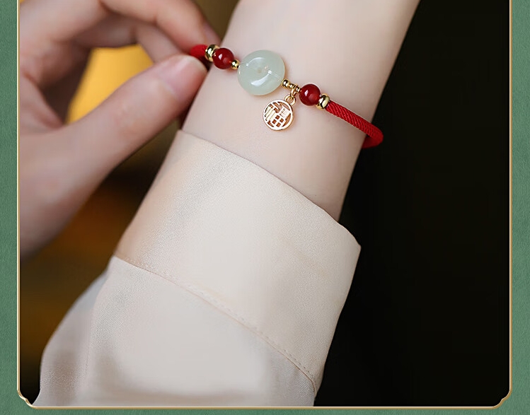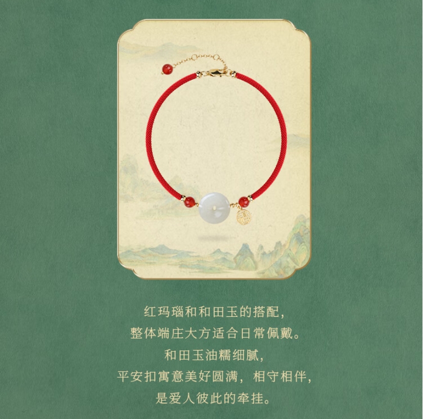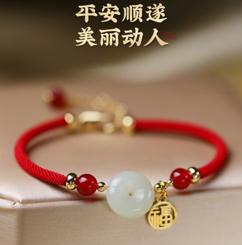 凤凰涅磐和田玉平安扣手链女本命年手工编织母亲节520情人节礼物送女友