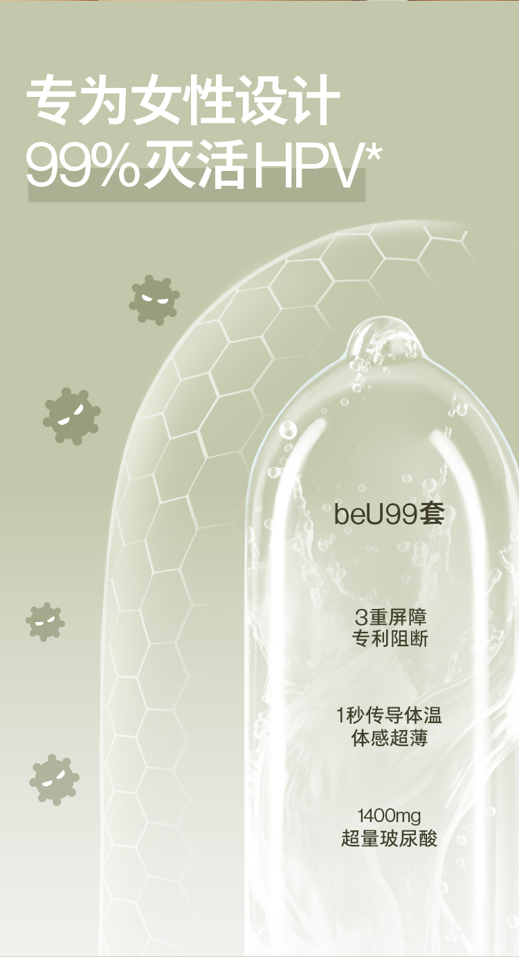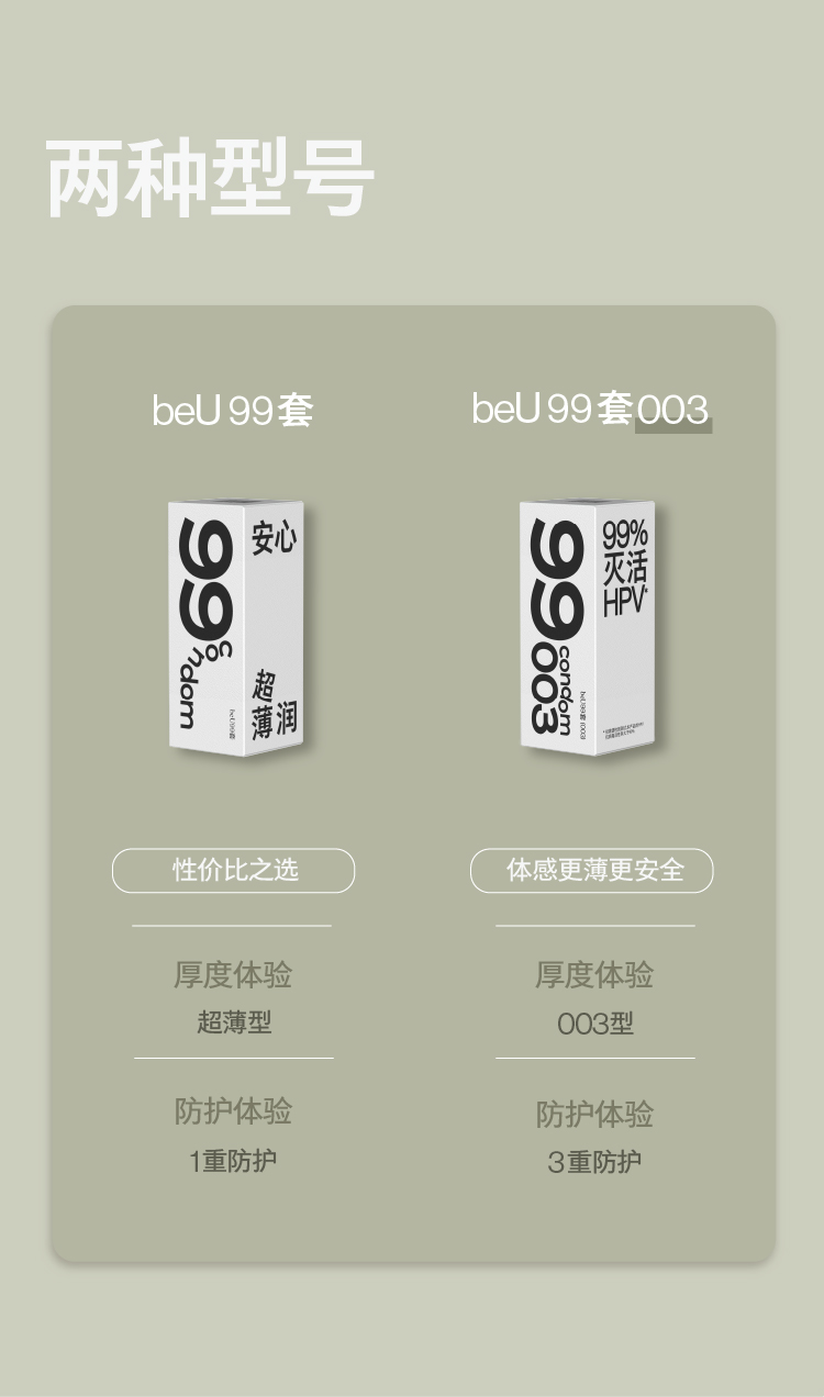 beU必遇99套避孕套灭活HPV玻尿酸润滑003持久安全超薄