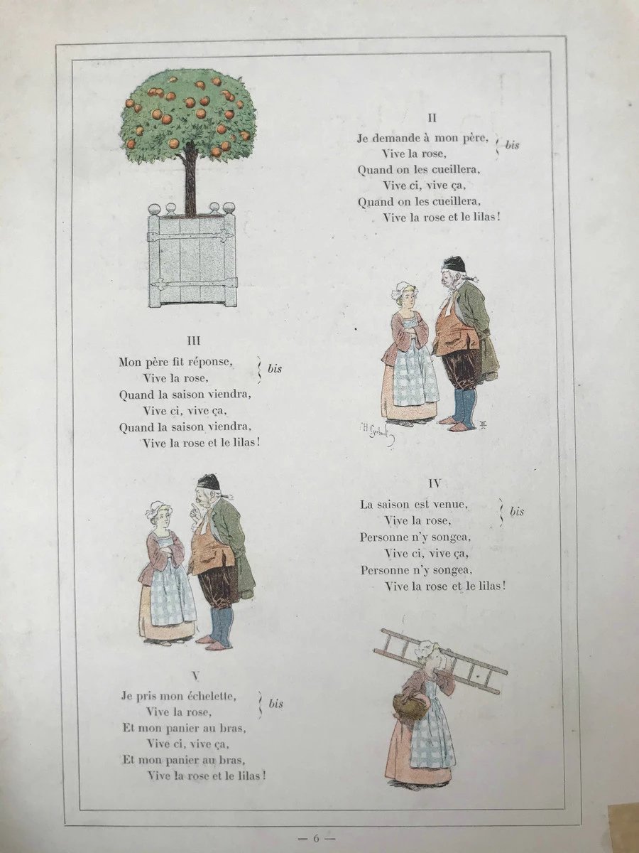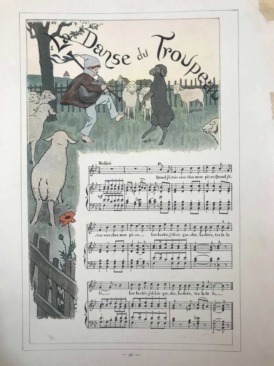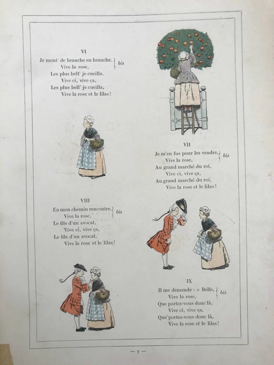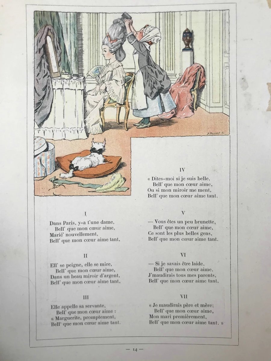 【法语】约20世纪早期 旧时代歌谣集 数十幅彩色插图 精装大16开