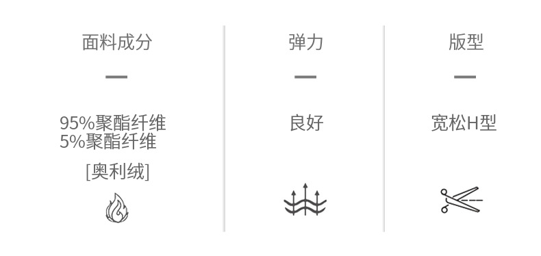双面绒:内外双版复合一体奥利绒,适合冬季(0-12度左右)