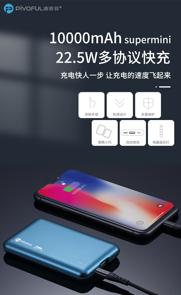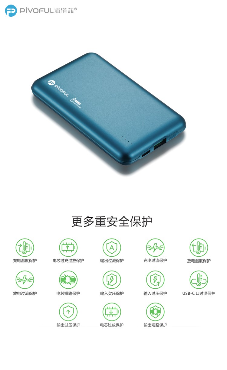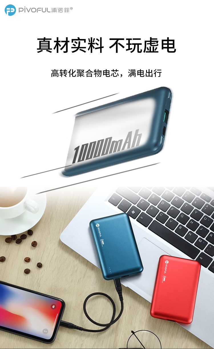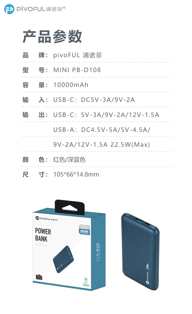 PIVOFUL浦诺菲 MINI10000毫安快充移动电源 蓝色 PB-D108