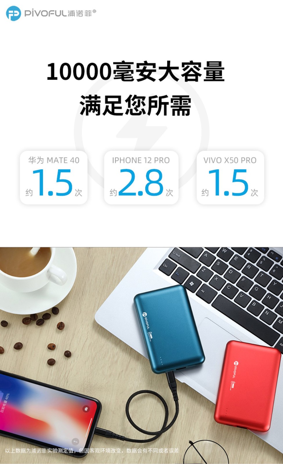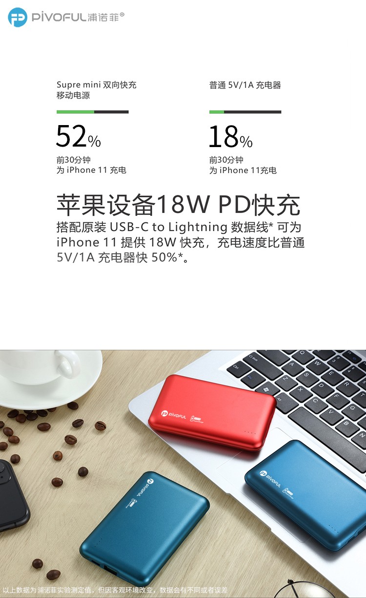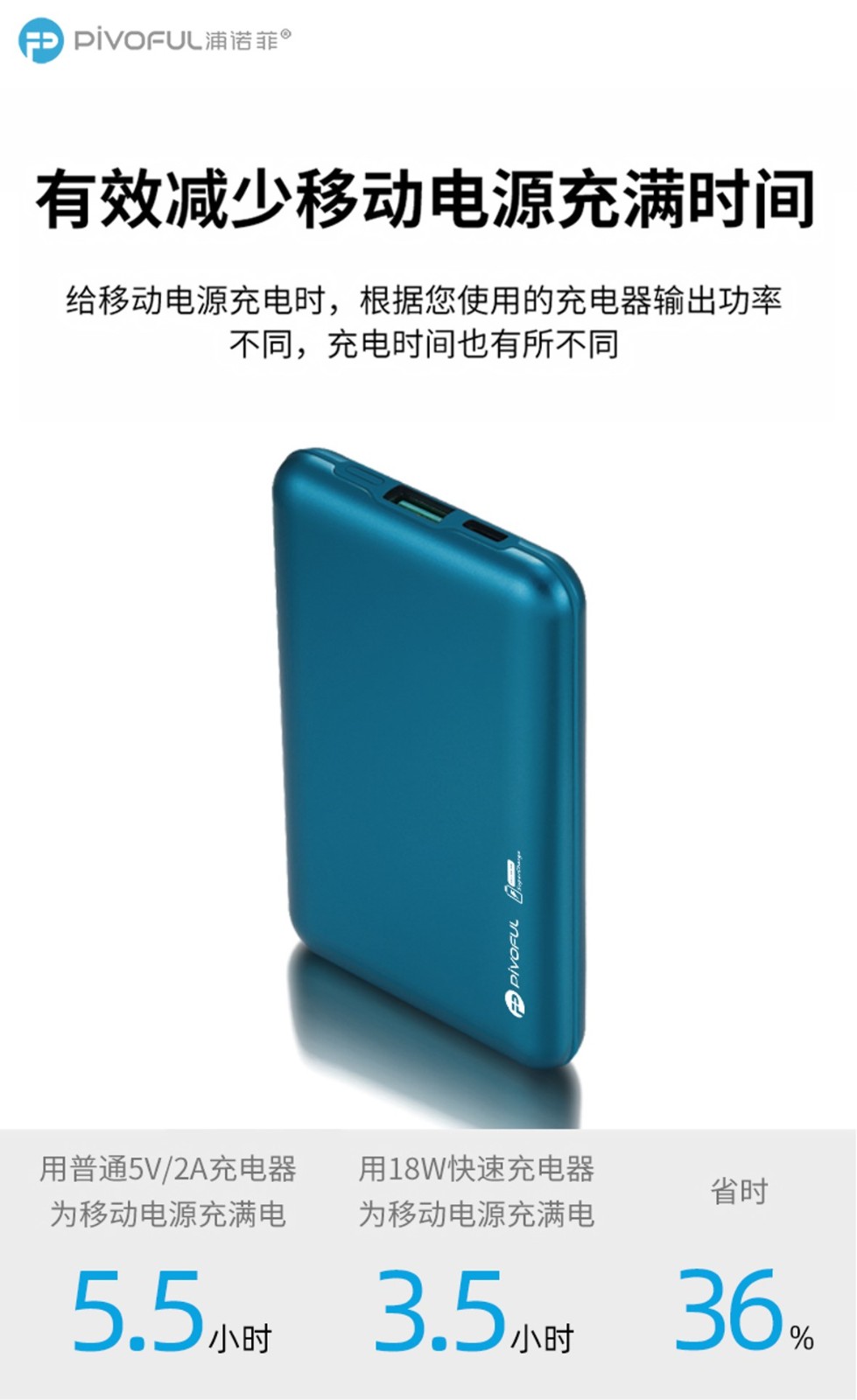 PIVOFUL浦诺菲 MINI10000毫安快充移动电源 蓝色 PB-D108