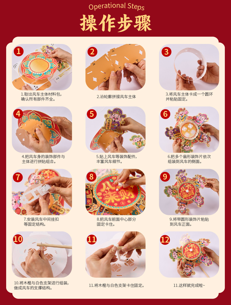 过新年春节元宵马年来财风车手工diy灯笼儿童制作材料包花灯装饰