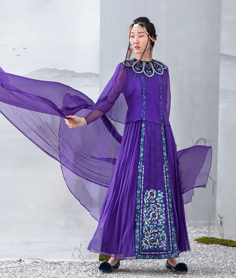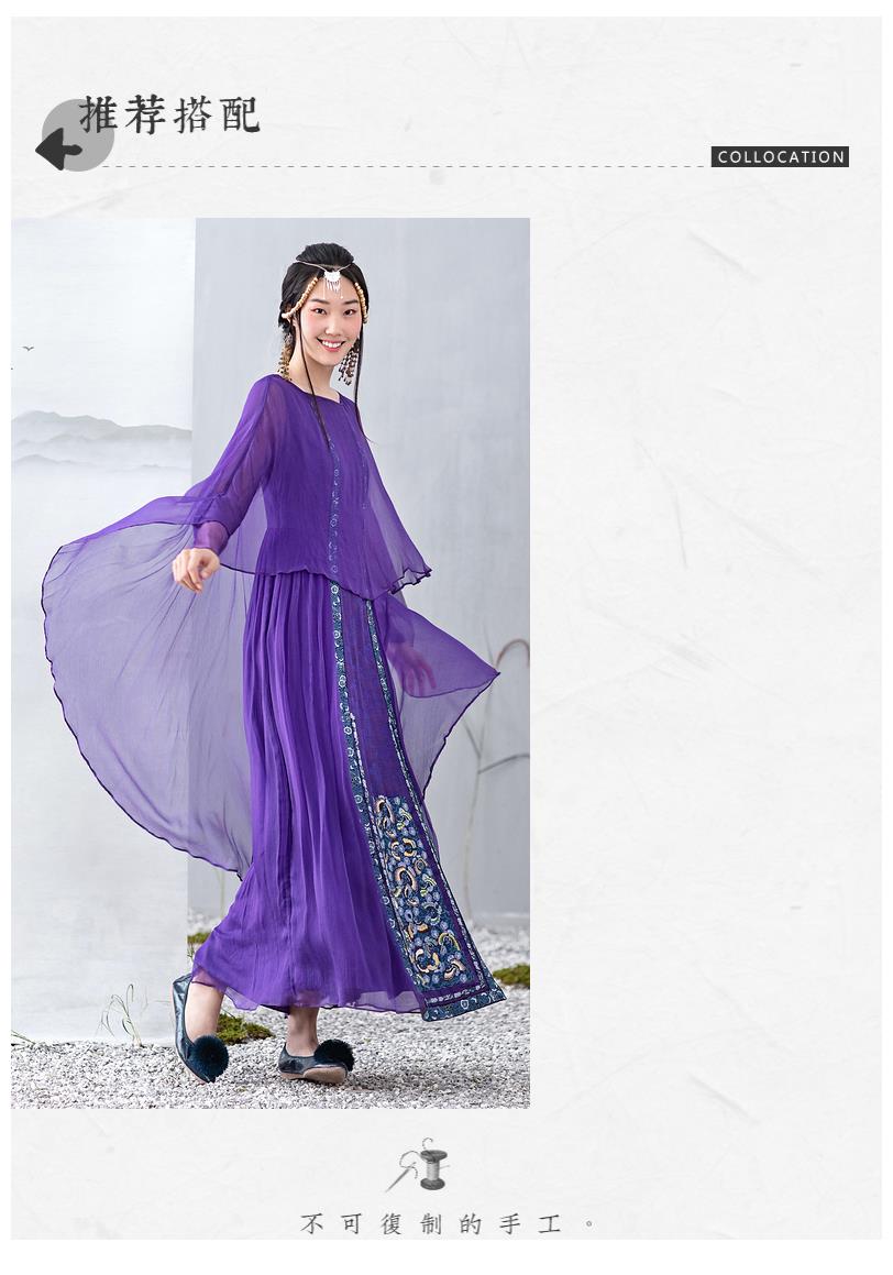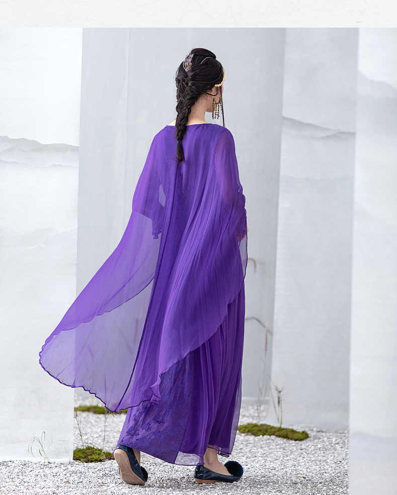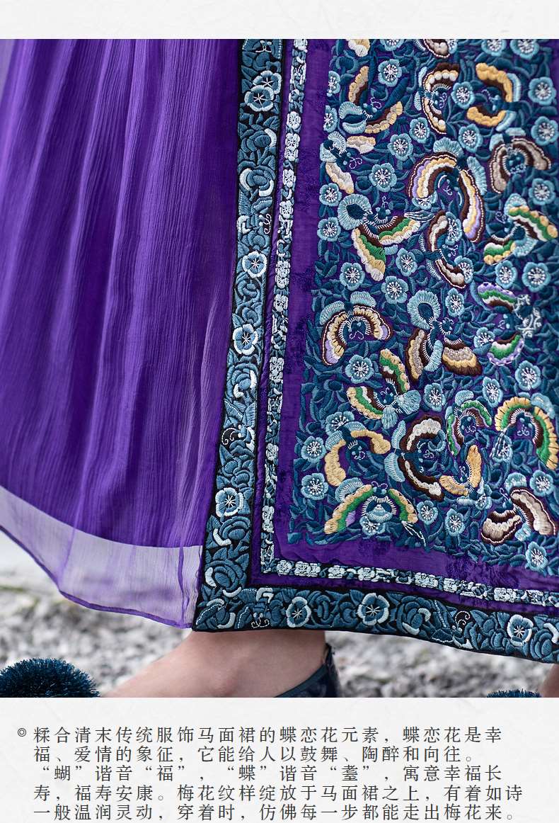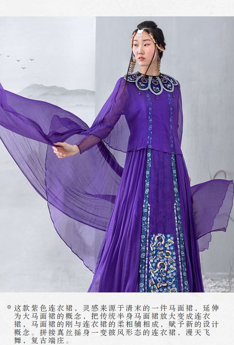 【林栖设计小店】【现货】生活在左马面裙系列紫色真丝绣花复古中长款马面裙连衣裙子飘逸 1911057