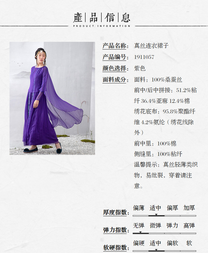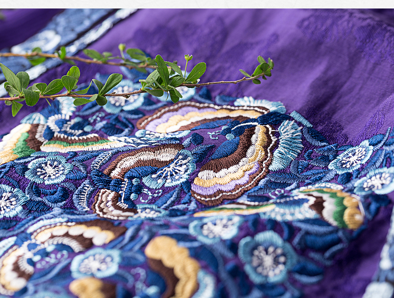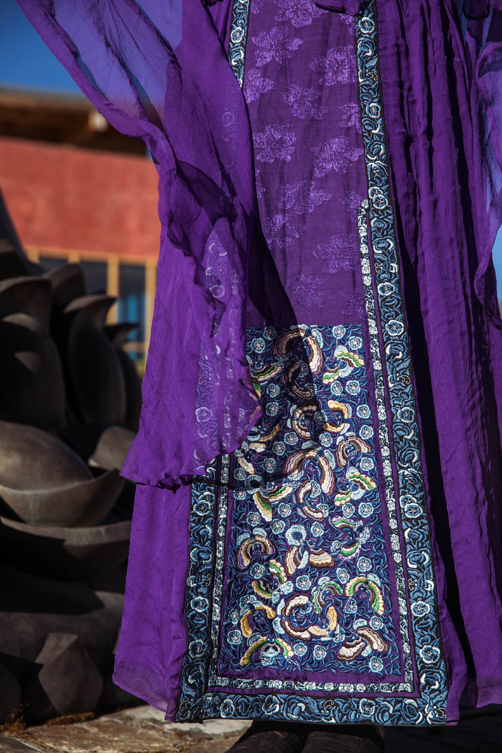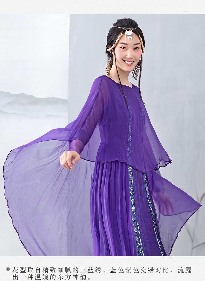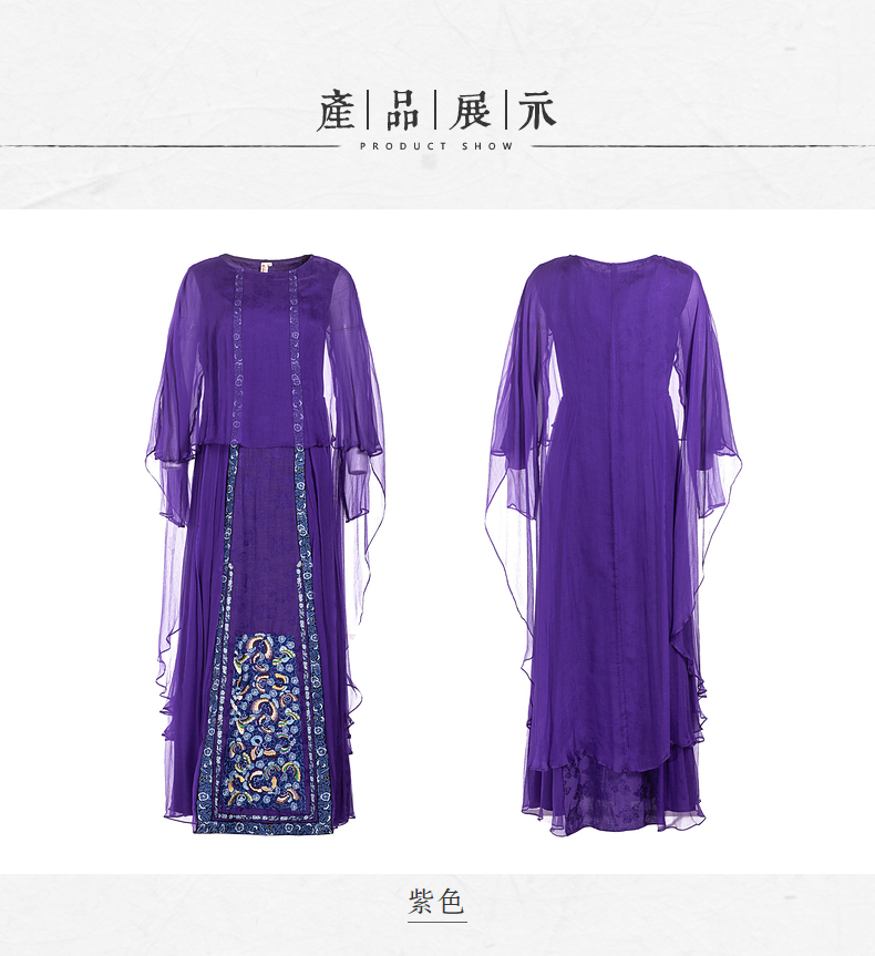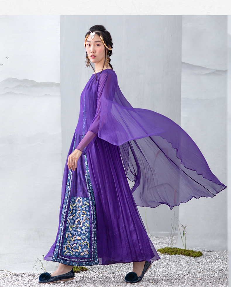 【林栖设计小店】【现货】生活在左马面裙系列紫色真丝绣花复古中长款马面裙连衣裙子飘逸 1911057