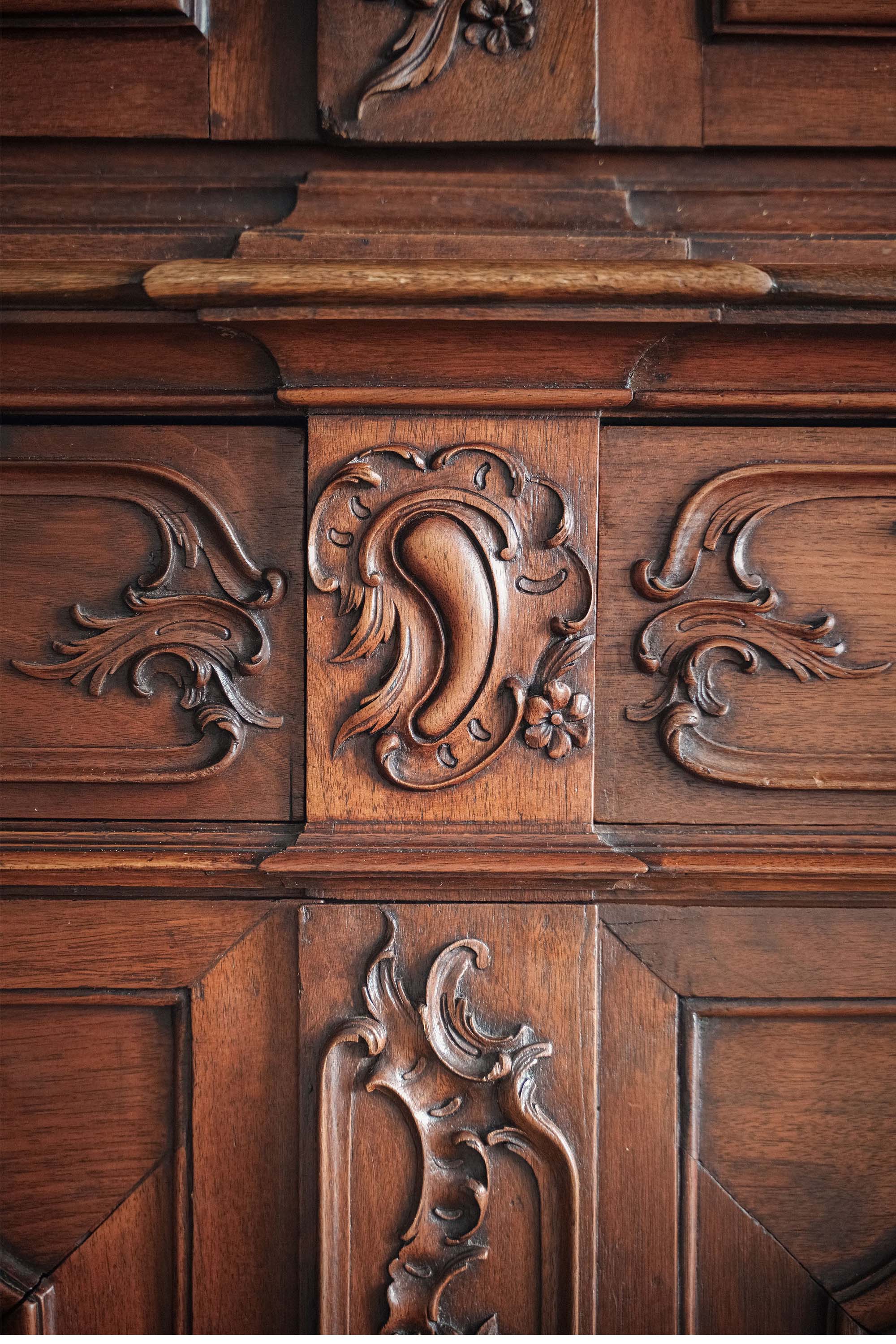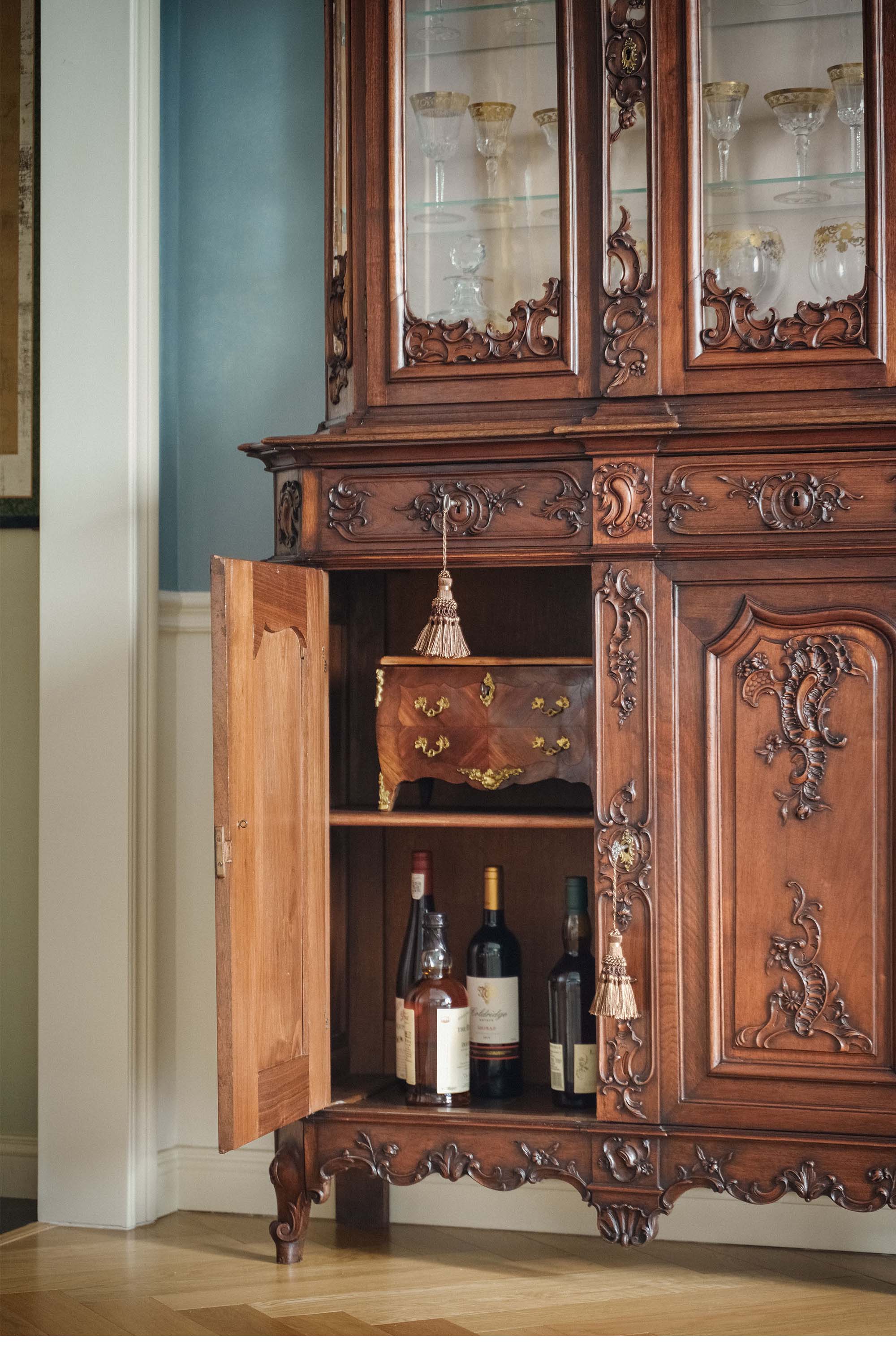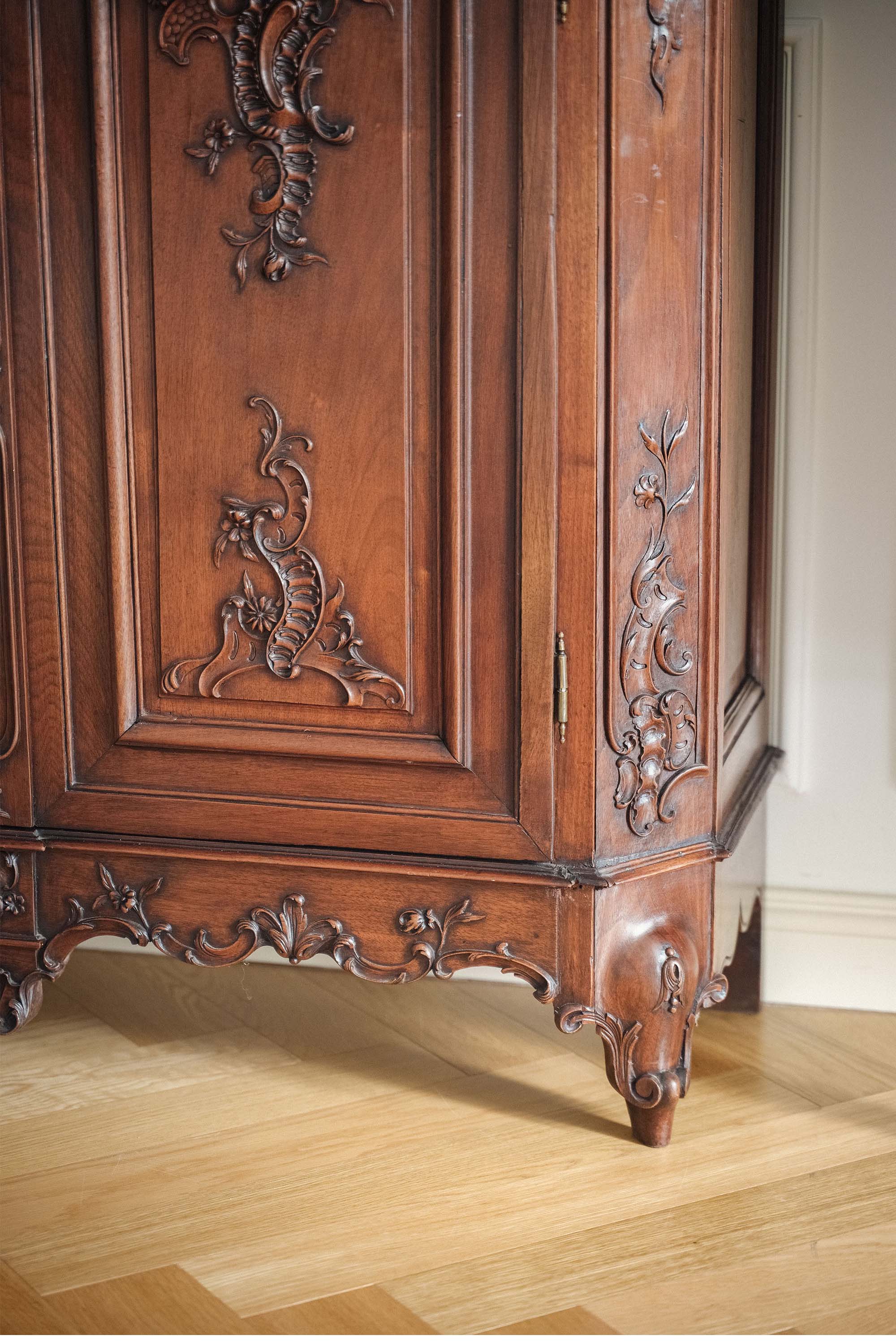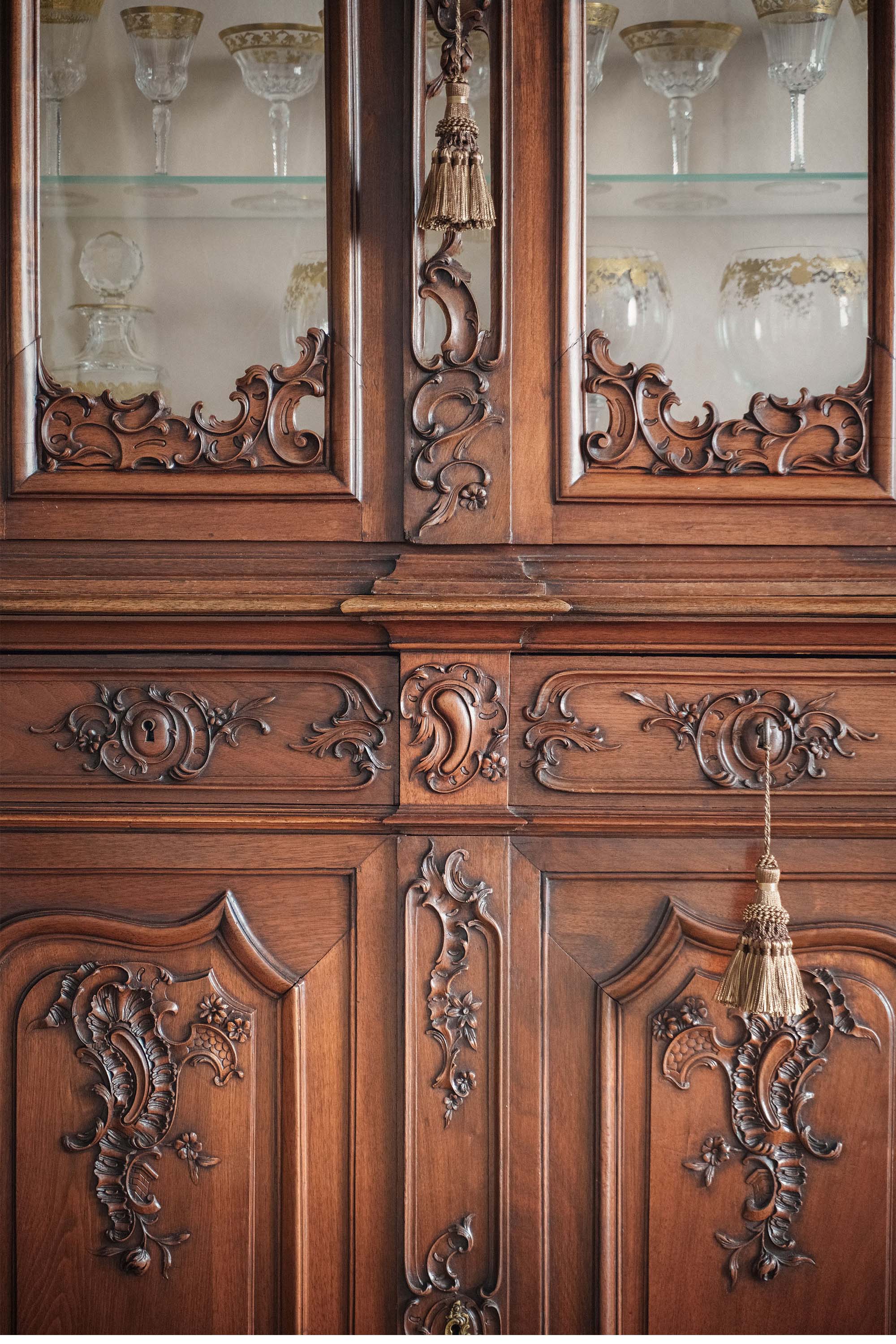 1890年代法国出品路易十五风格花卉卷叶主题胡桃木精雕装饰玻璃展柜