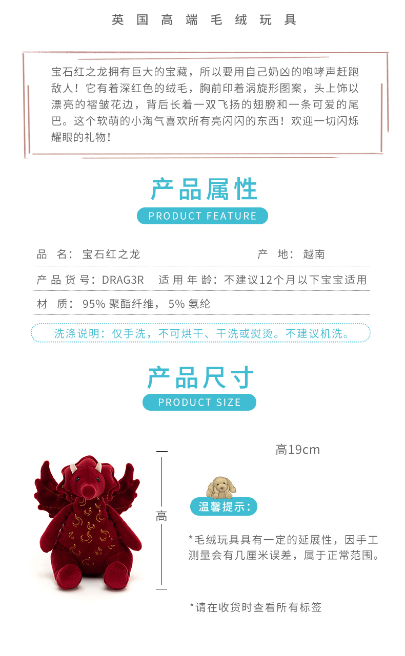 Jellycat 宝石红之龙