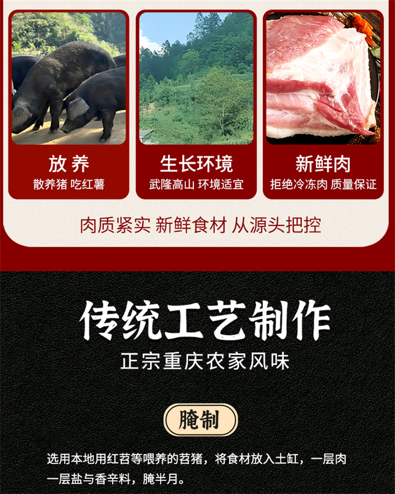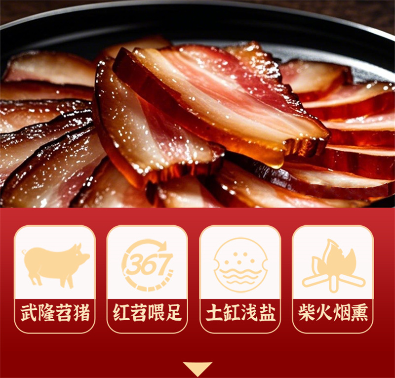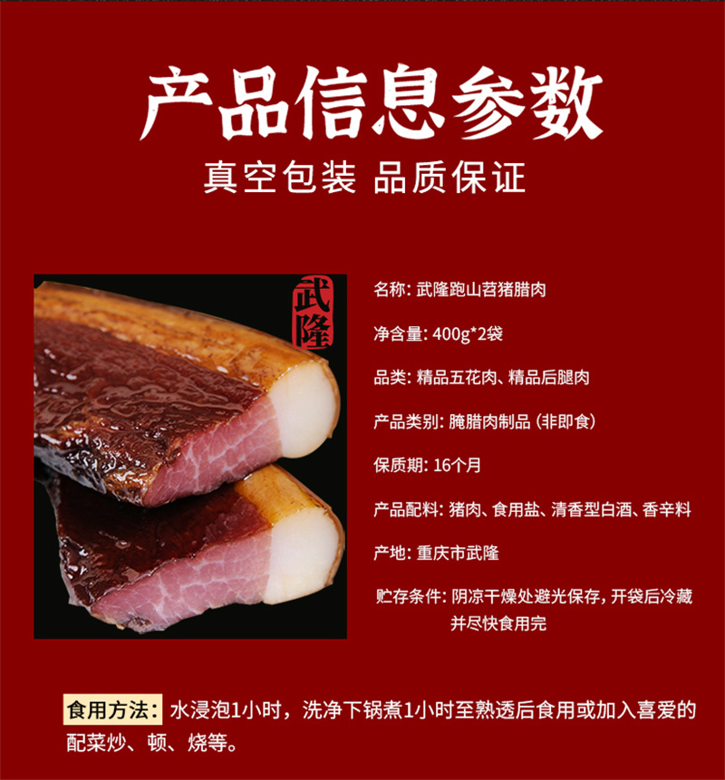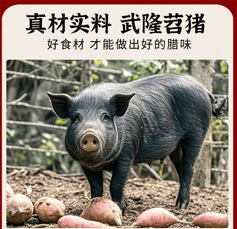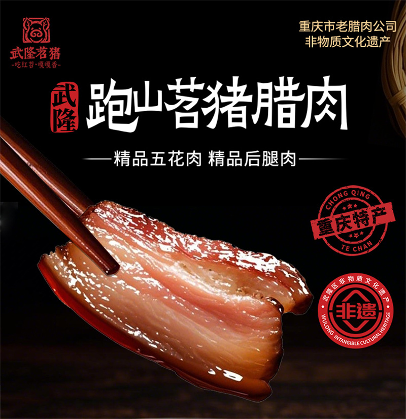 苕猪武隆跑山苕猪腊肉后腿肉 400克*2袋 武隆跑山苕猪柴火烟熏
