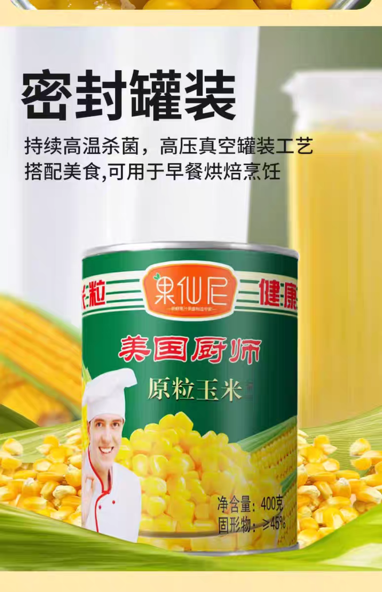 果仙尼 美国厨师 原粒玉米粒罐头 (400g/罐 24罐/箱 两种规格可选) 披萨蔬菜沙拉原料 玉米烙甜点 烘焙原料
