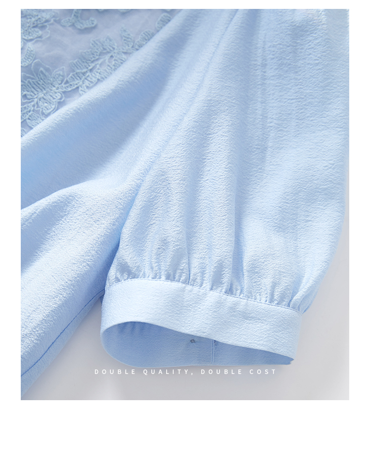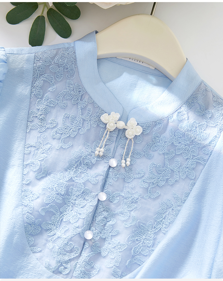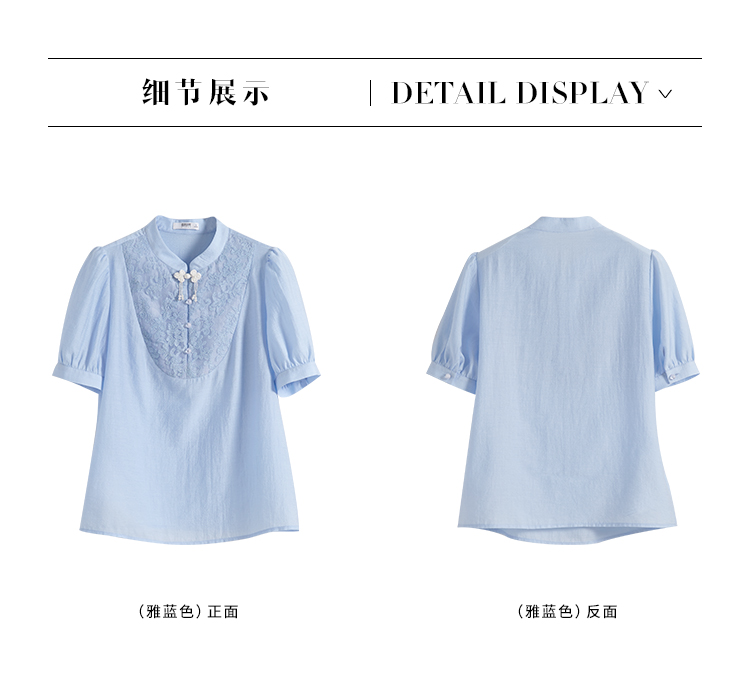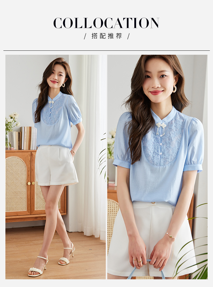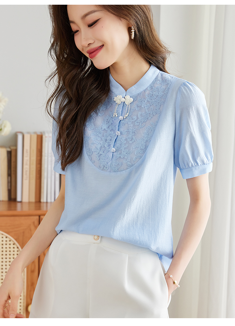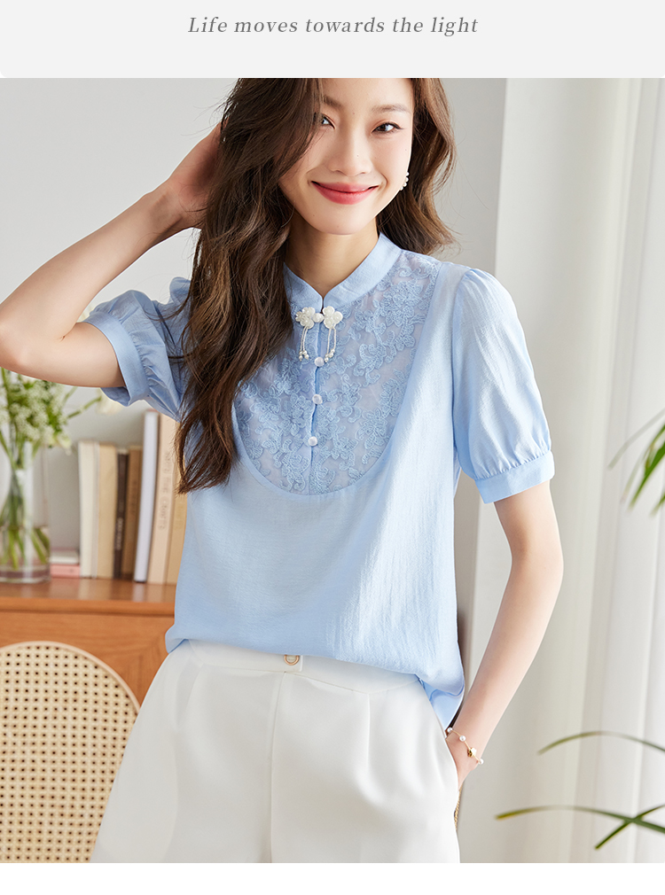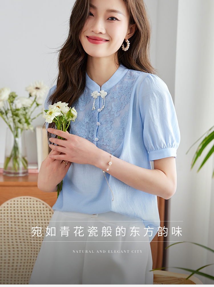 【专属特价】熙世界新中式蕾丝绣花醋酸衬衫2025夏季新款国风立领泡泡袖上衣