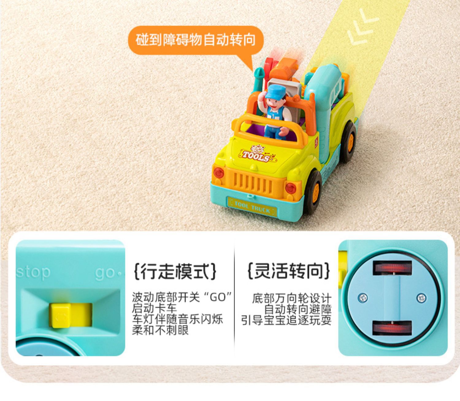 【小常识学一学】汇乐工具车交警车玩具 电动儿童仿真消防车模型 电动早教益智玩具