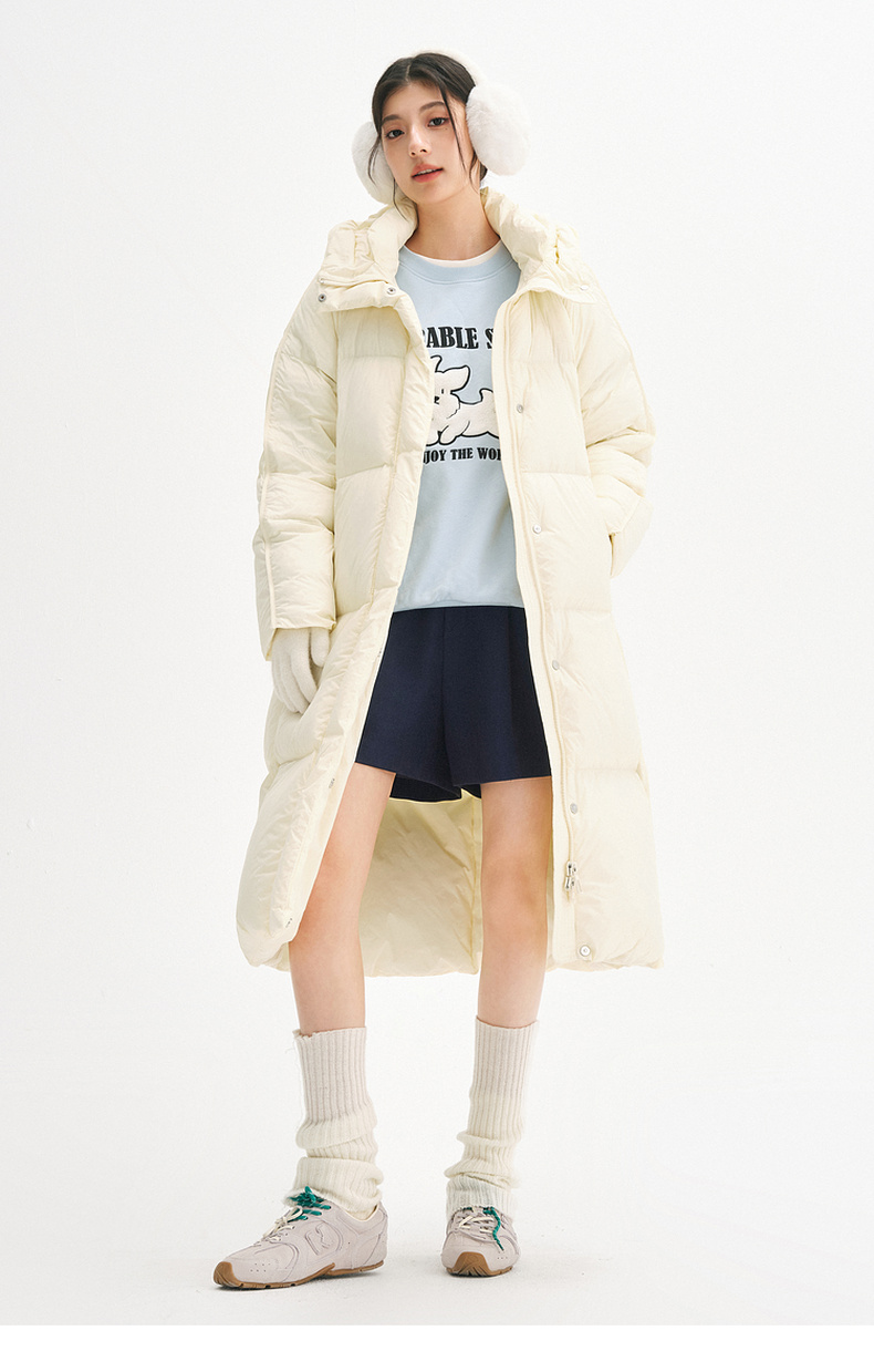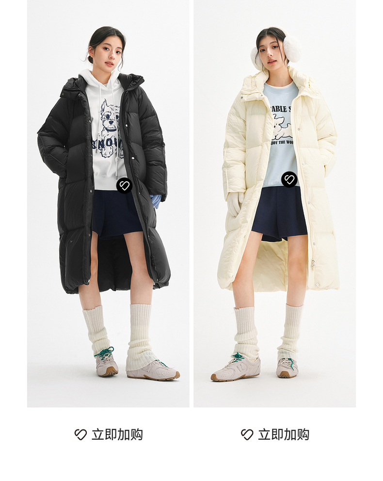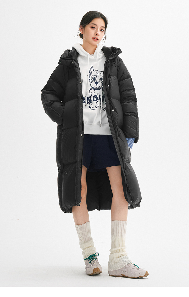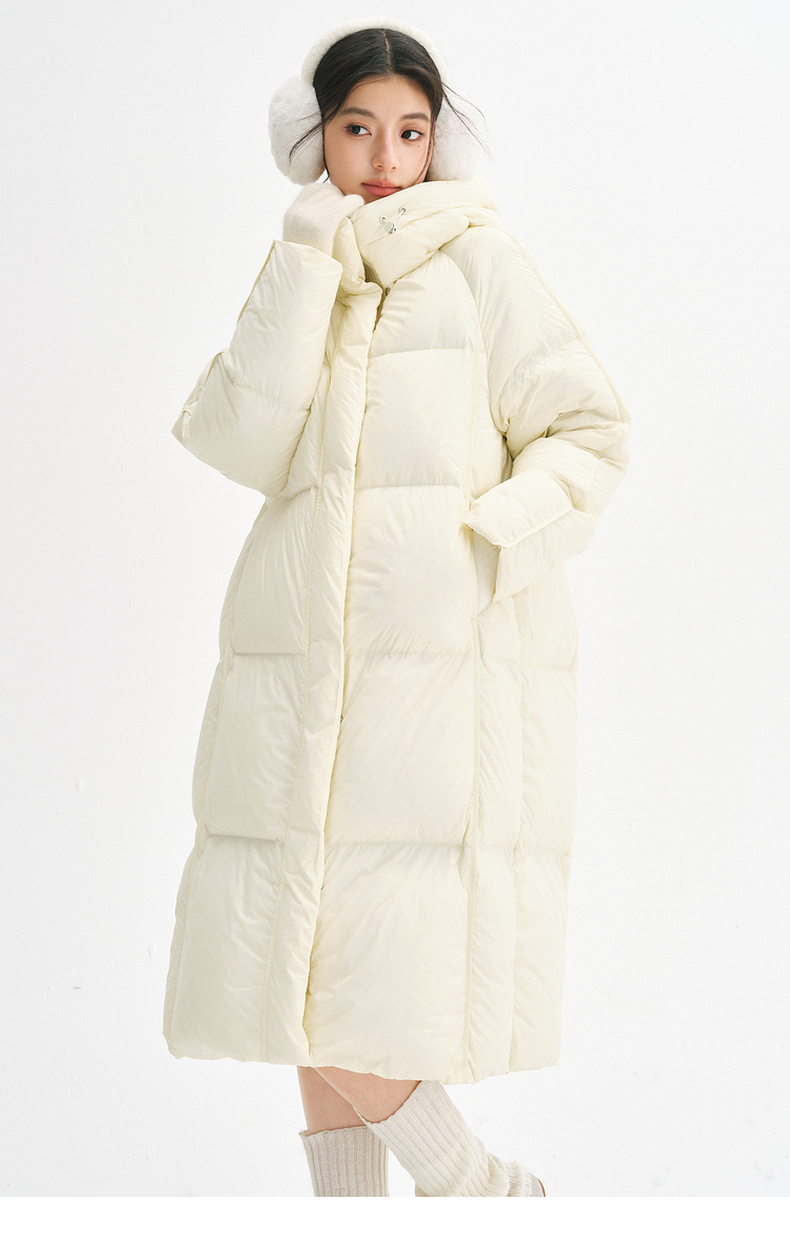 【严选】【90鸭绒】诗凡黎连帽防风羽绒服2024年冬新款柔软保暖长款外套SFA180181