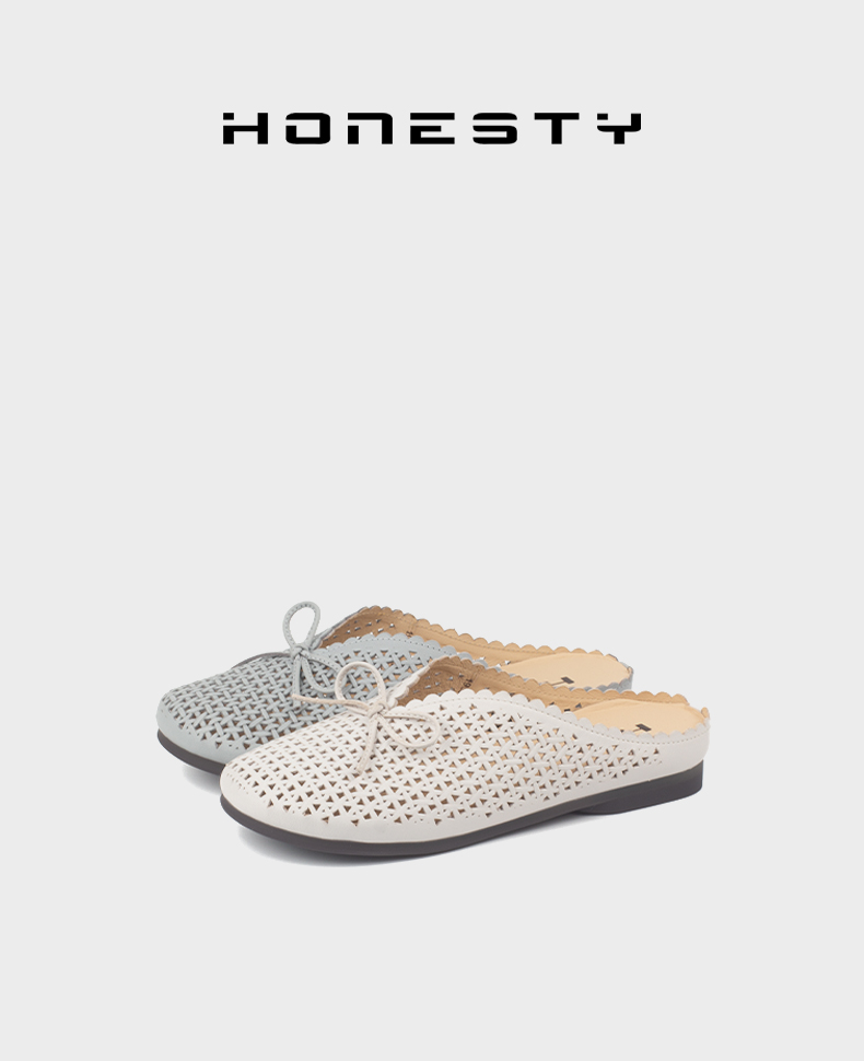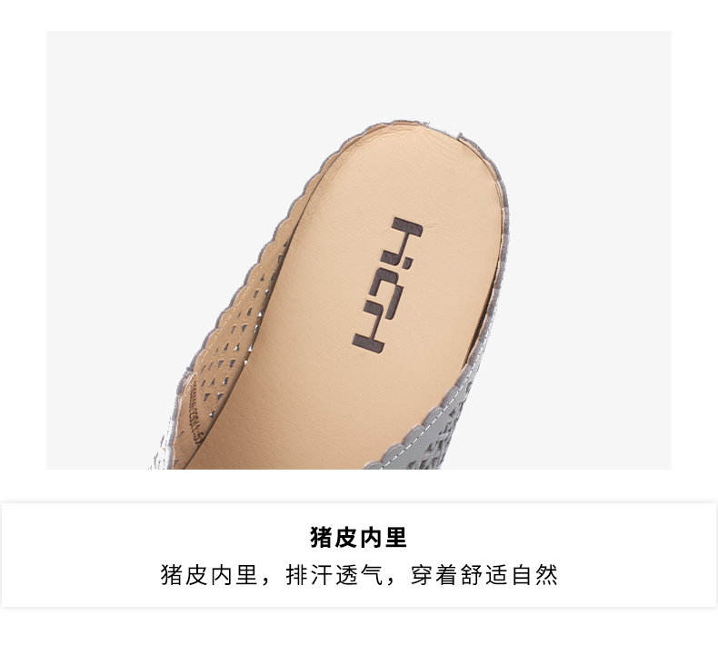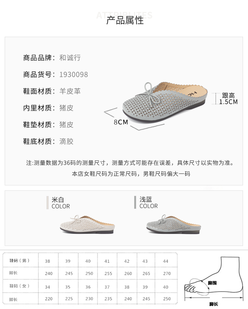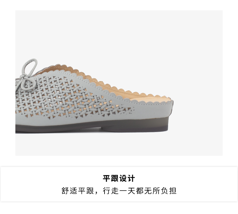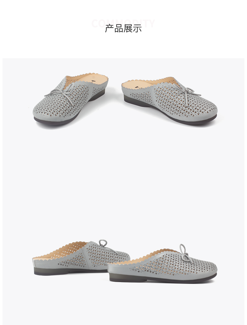和诚行 2025夏季新款真皮镂空蝴蝶结女鞋百搭平底包头拖鞋1930098
