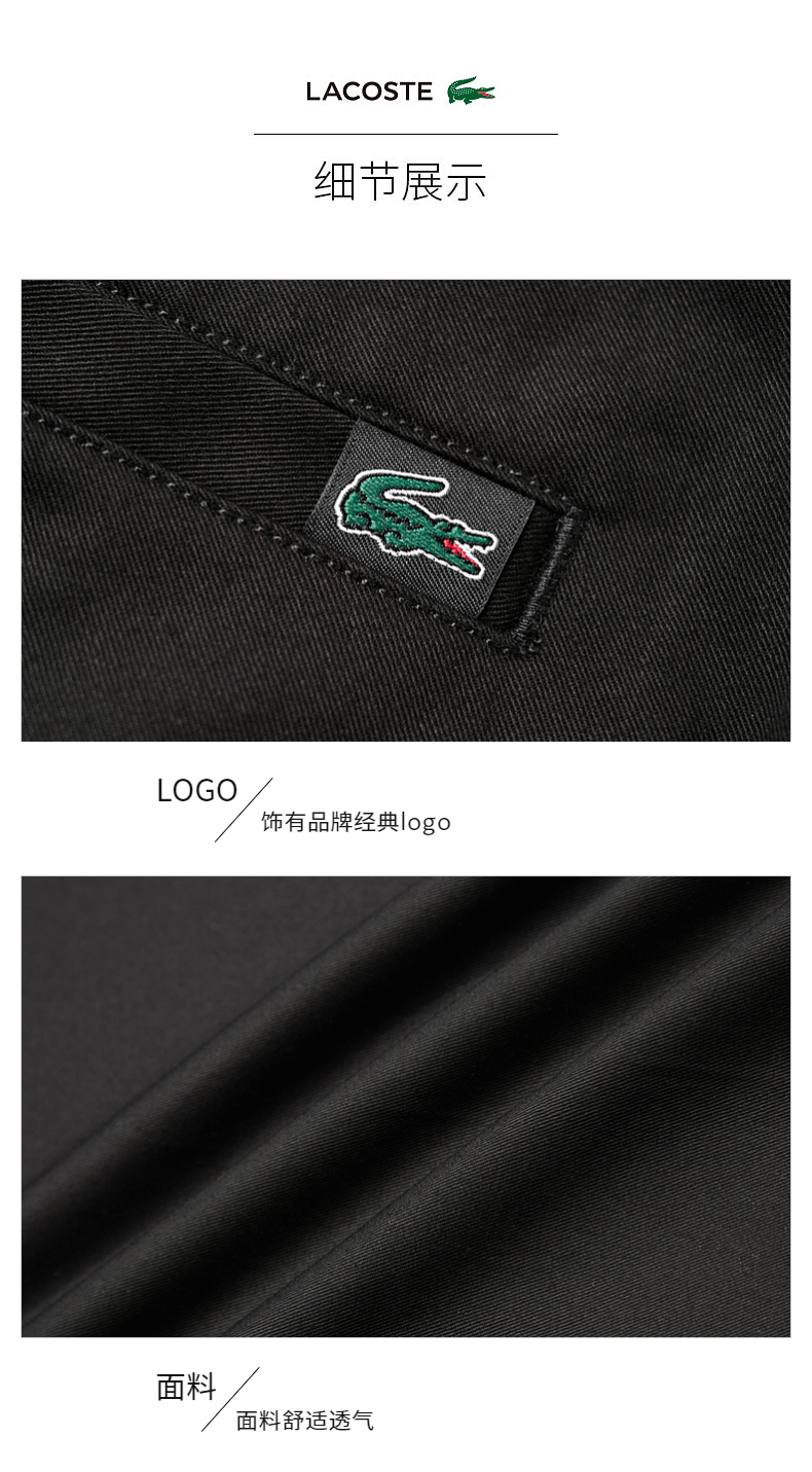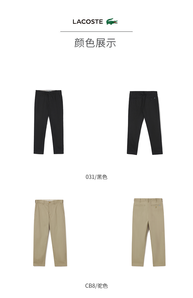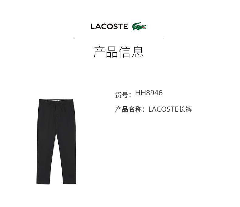 【海南专供价】Lacoste法国鳄鱼男装基础款通勤舒适直筒休闲裤长裤西裤HH8946-98