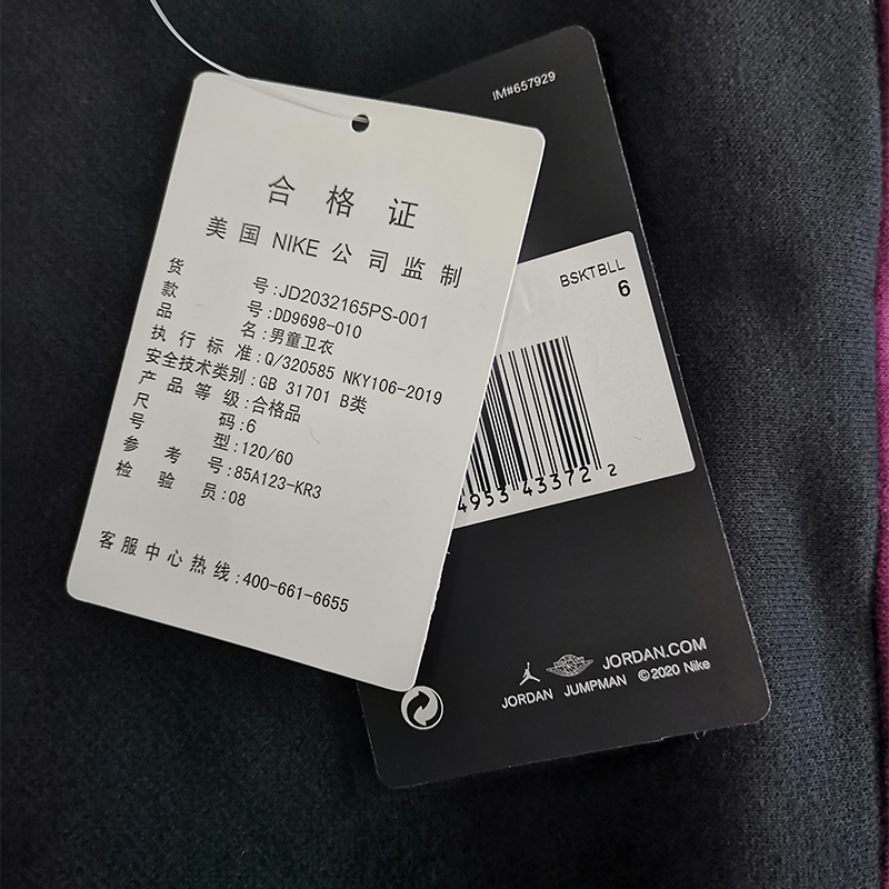 JORDAN乔丹AJ童装PSG联名秋冬男童连帽卫衣加绒卫衣JD2032165