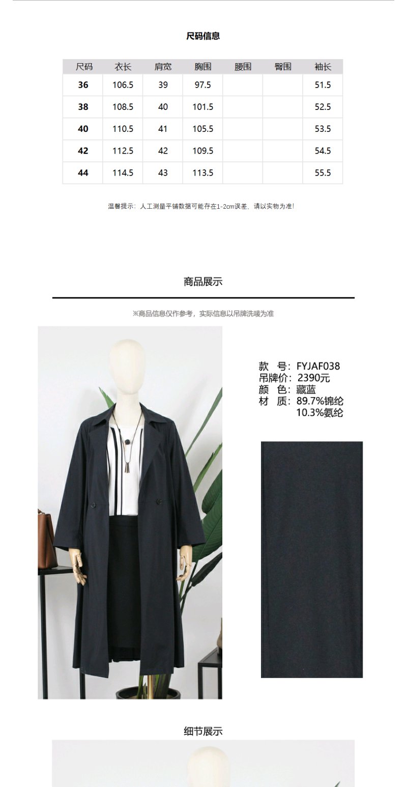 FOCALS福柯斯春秋新款收腰过膝中长款轻薄外套风衣FYJAF038B7
