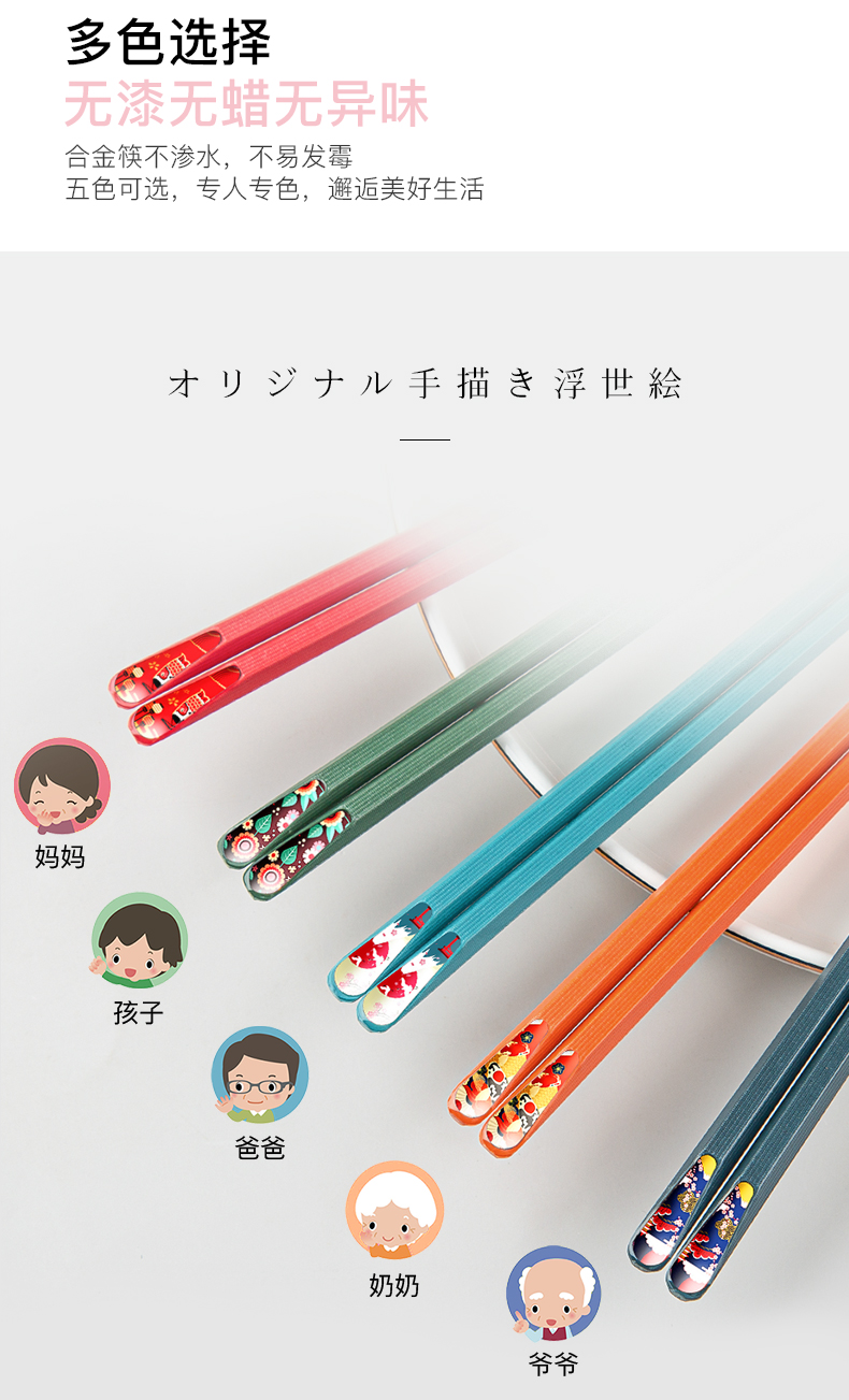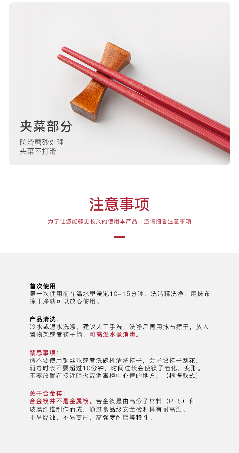 【日式合金筷子】简约而不简单 家用高颜值 耐高温防霉防滑分餐一人一筷呵护全家饮食健康