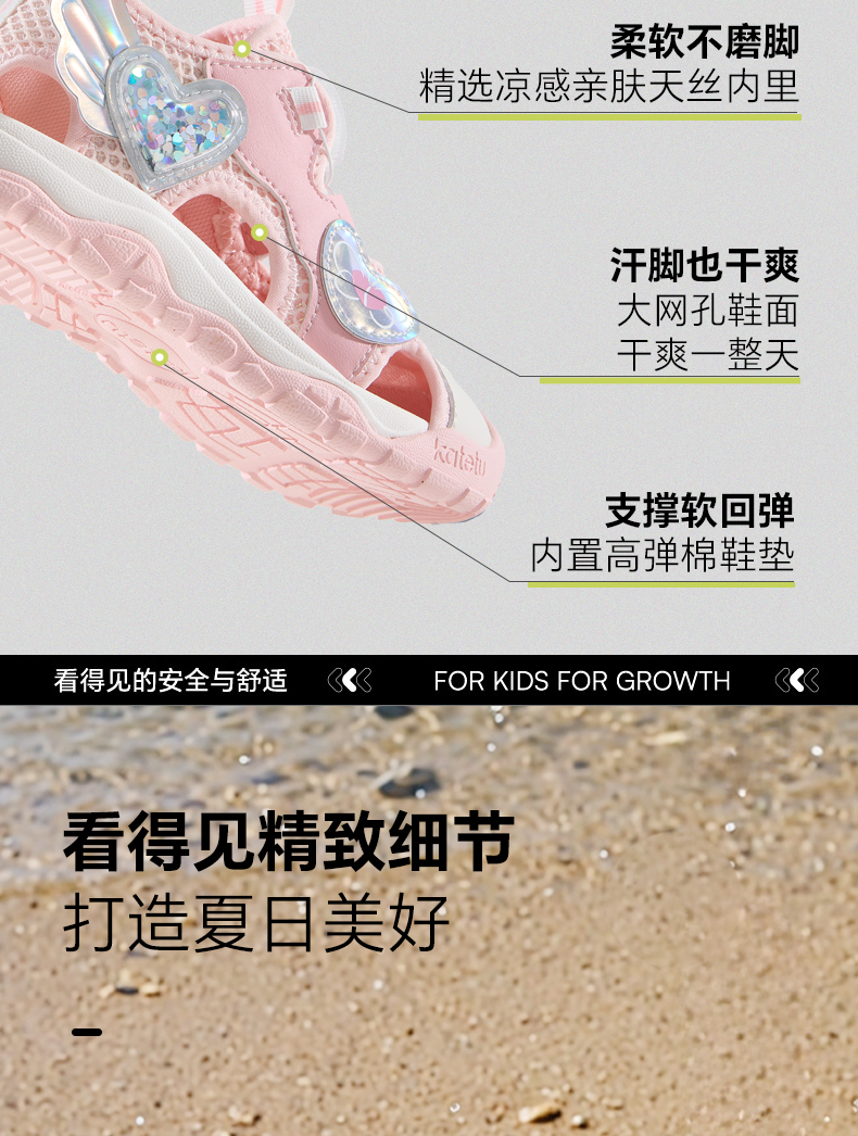 卡特兔童鞋女童运动鞋2025夏季新品驱蚊鞋防滑耐磨透气女童凉鞋