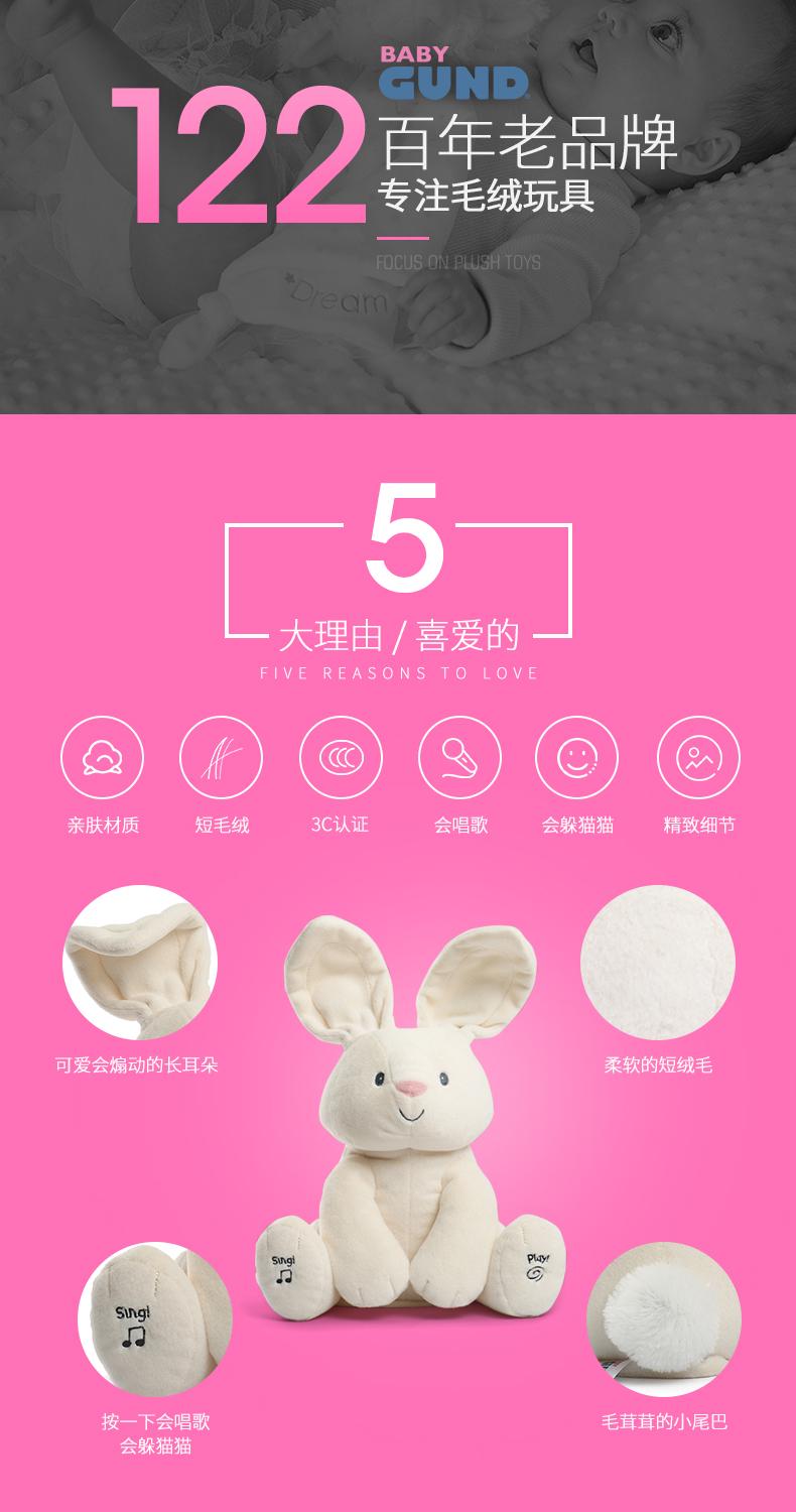 Baby Gund费罗拉害羞小兔子躲猫猫婴儿安抚毛绒玩偶4061346