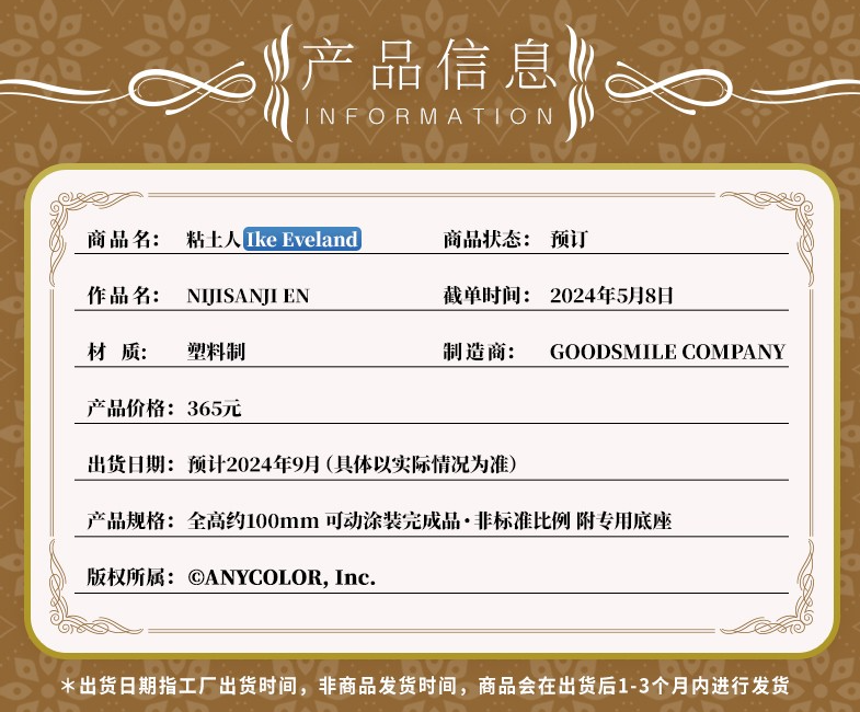【GSC现货】粘土人 Ike Eveland NIJISANJI EN