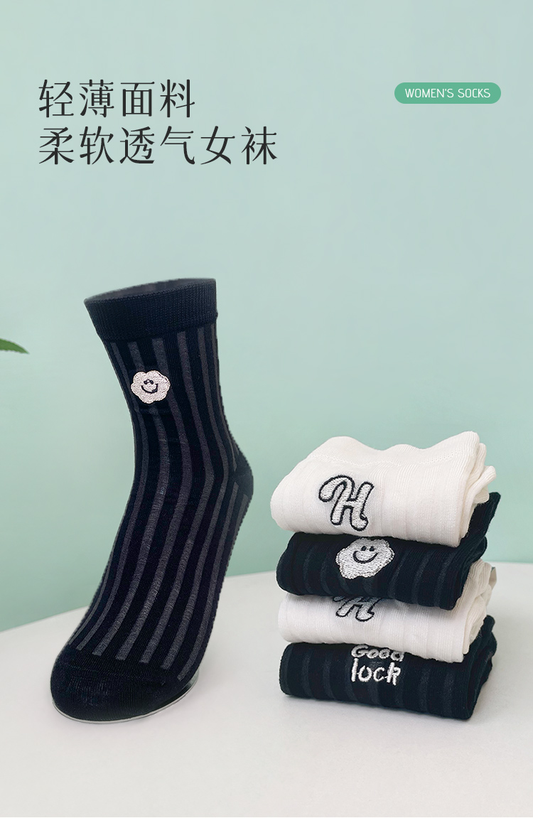 【49元5双,数量拍5】新款夏季薄款女袜透气轻薄简约凉快WZM3470