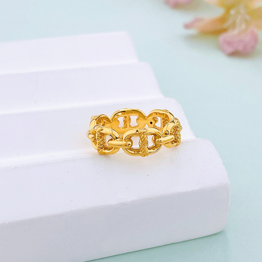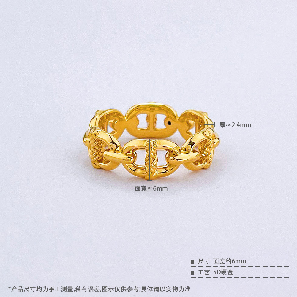 【限时克减150元】足金 #锤纹 无氰5D硬金固口戒指镂空绕线锤纹猪鼻子圈戒(AU5DJZ00027)(预售产品下单后不退款不退货不换货不补差价
