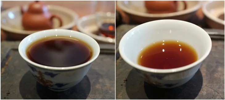 适宜茶汤浓度示意,左满杯,右半杯
