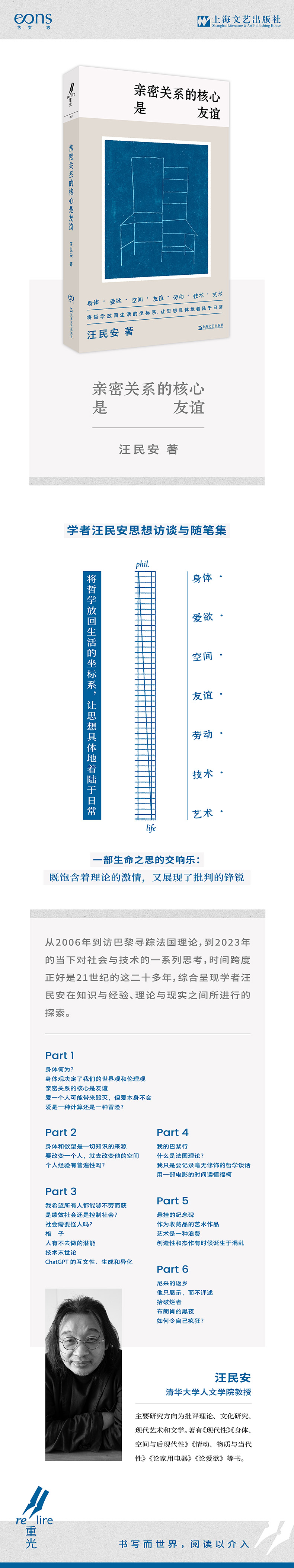 此书是学者汪民安的思想访谈与随笔集,从2006年到访巴黎寻踪法国理论,到2023年的当下对社会与技术的一系列思考,时间跨度正好是21世纪的这二十多年,综合呈现汪民安在知识与经验、理论与现实之间所进行的探索。