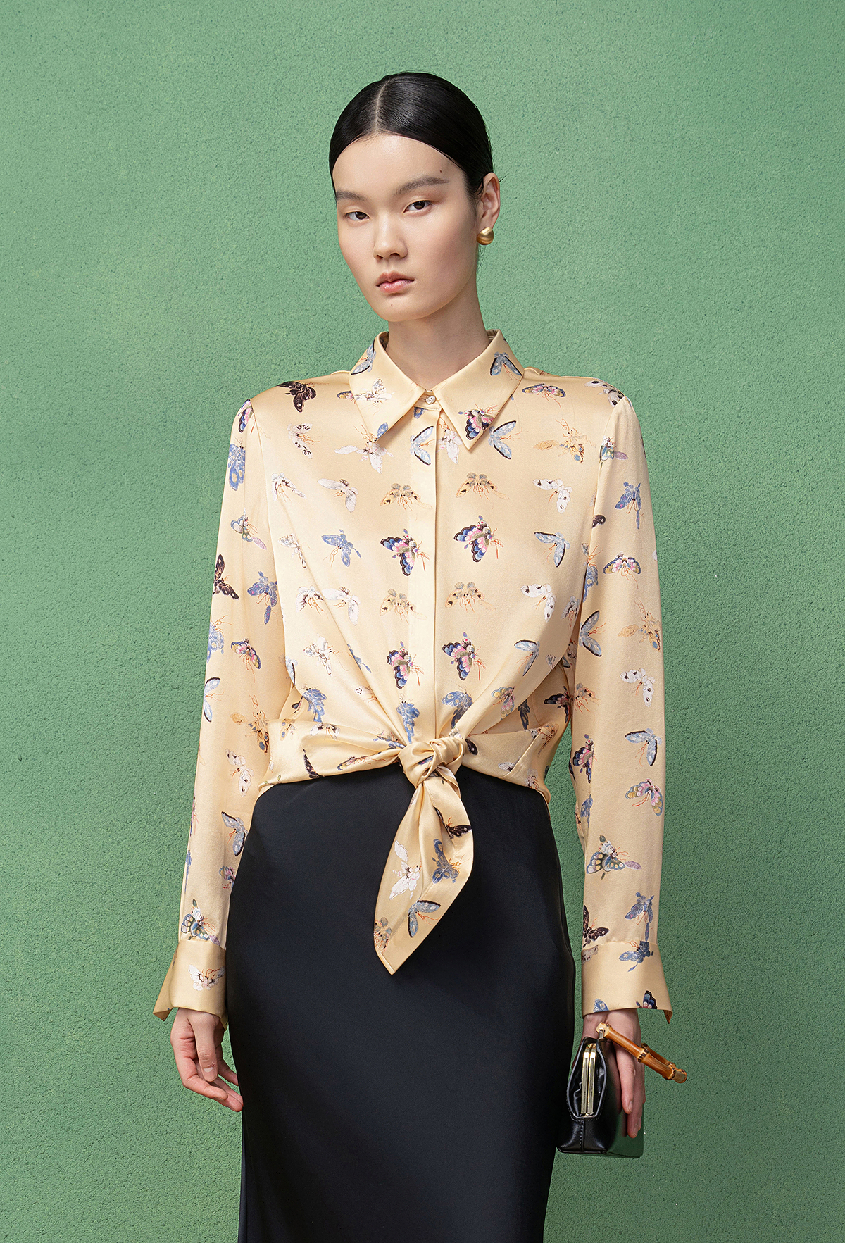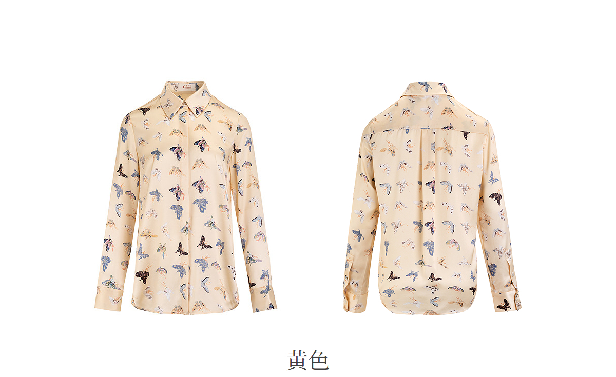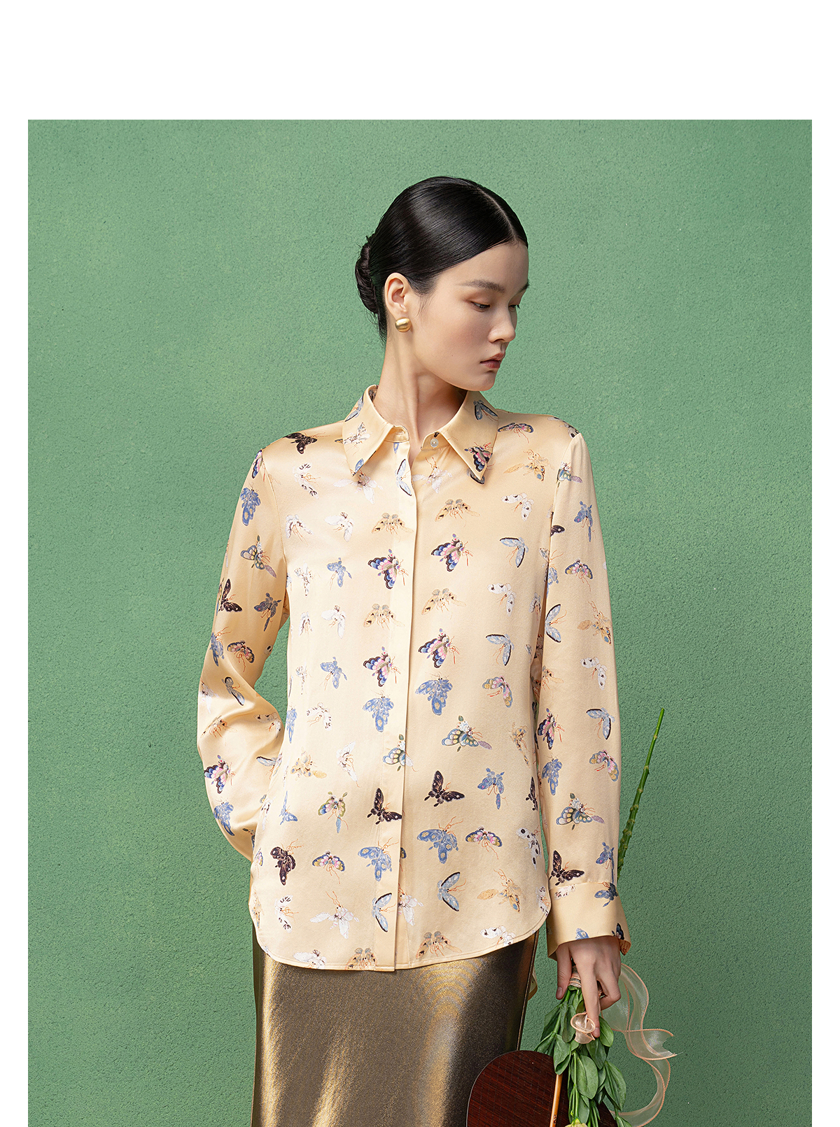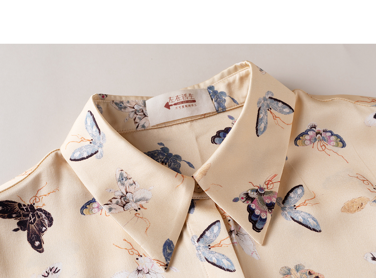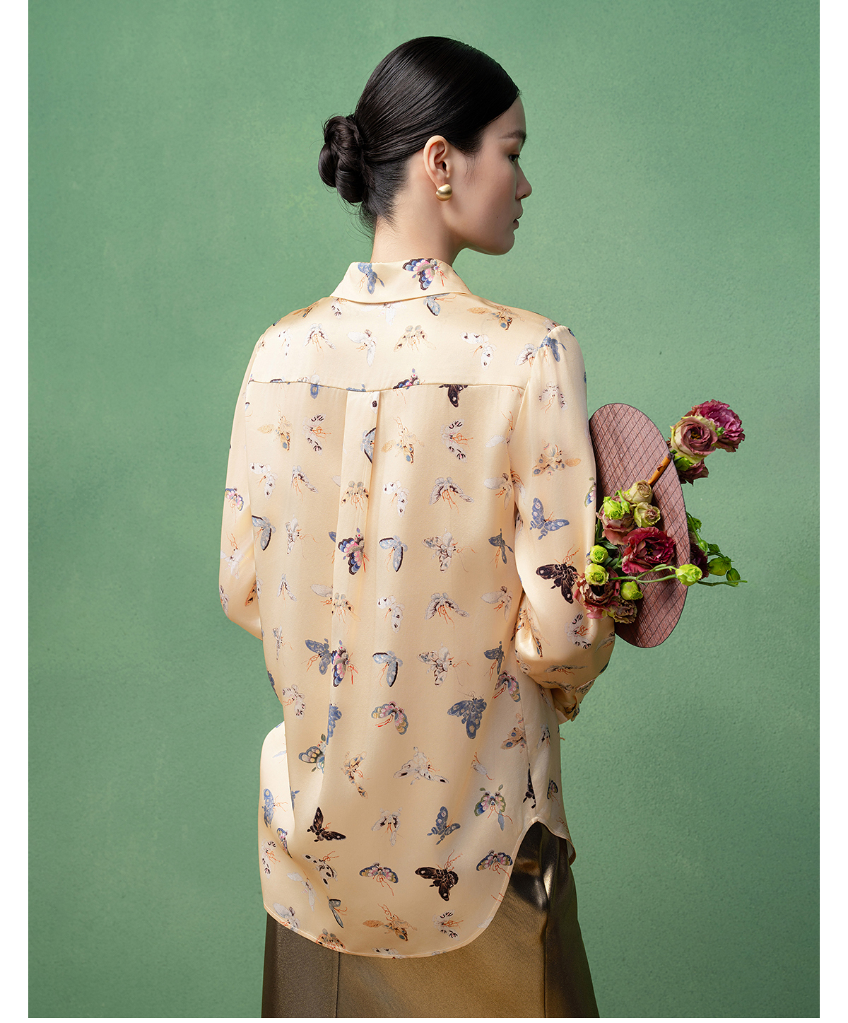【林栖设计小店】生活在左真丝蝴蝶衬衫印花2025新中式秋季新款上衣女1953083