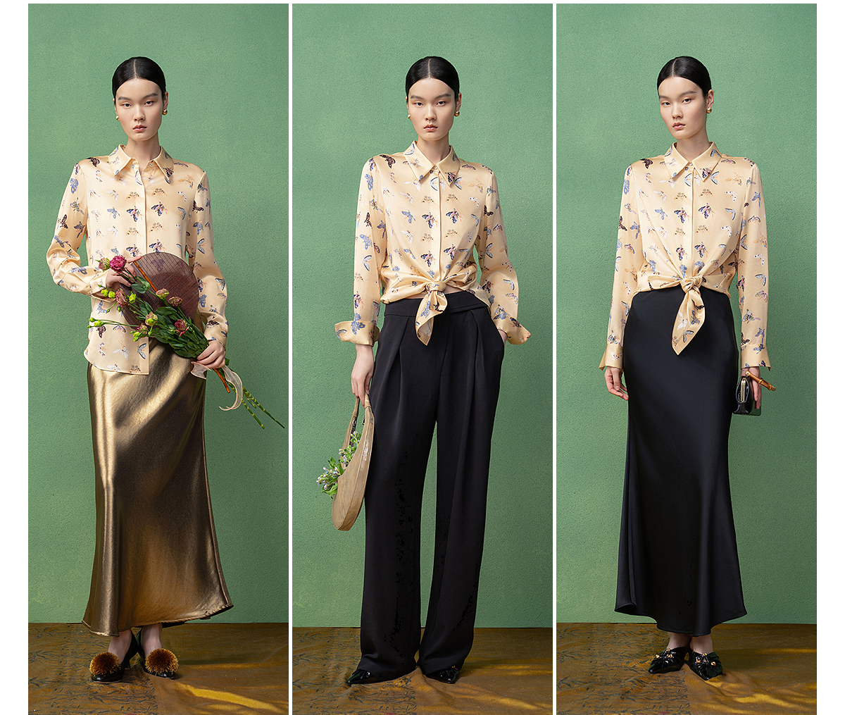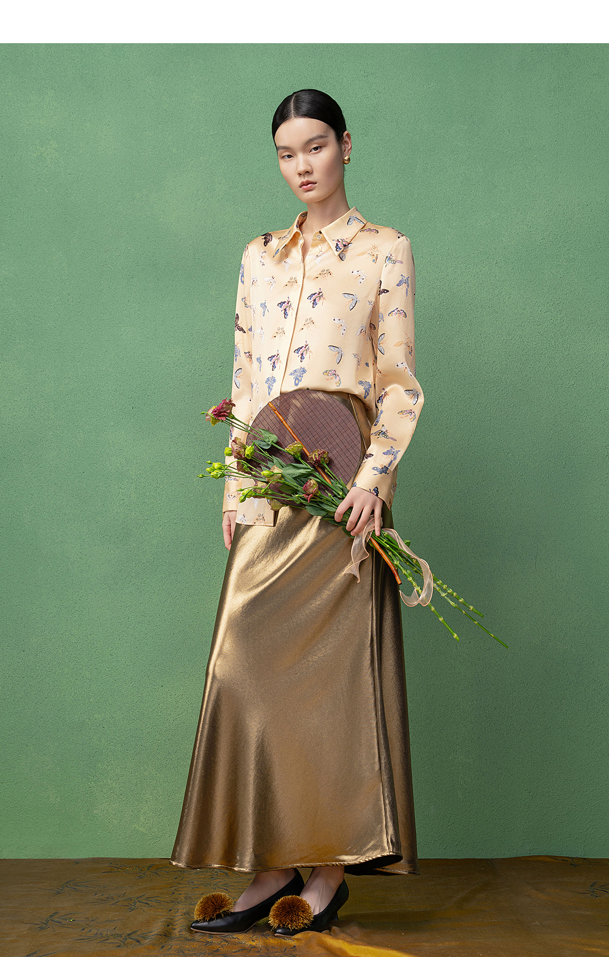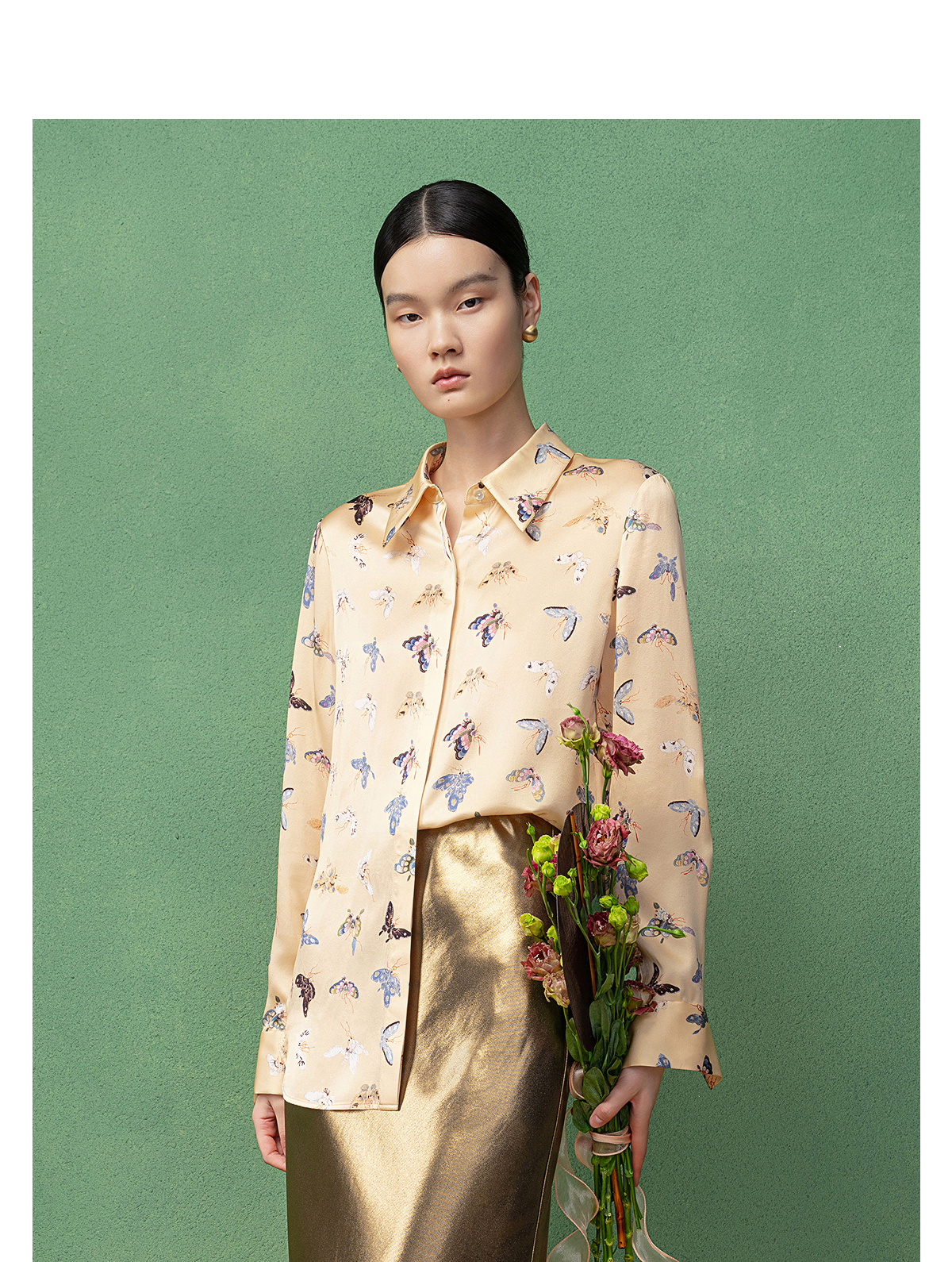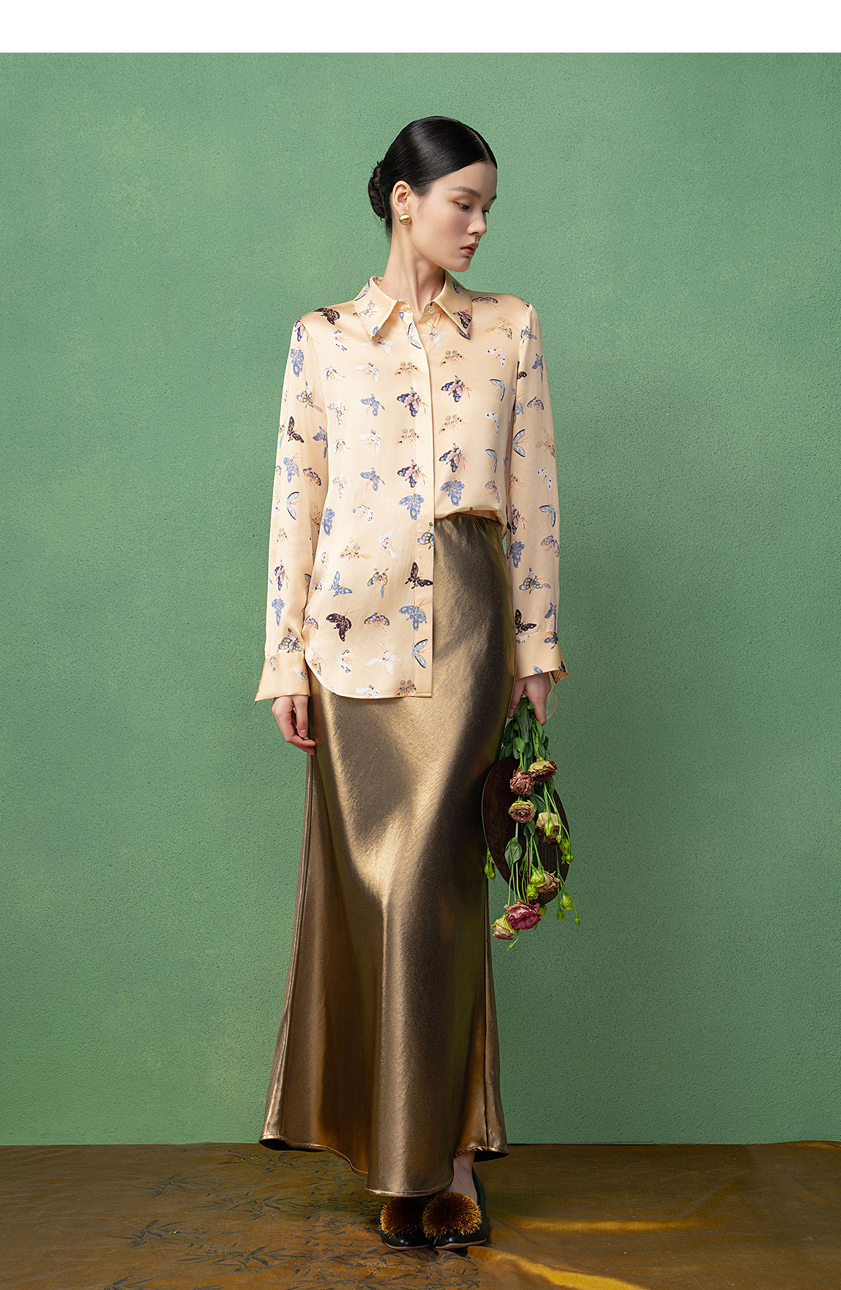 【林栖设计小店】生活在左真丝蝴蝶衬衫印花2025新中式秋季新款上衣女1953083