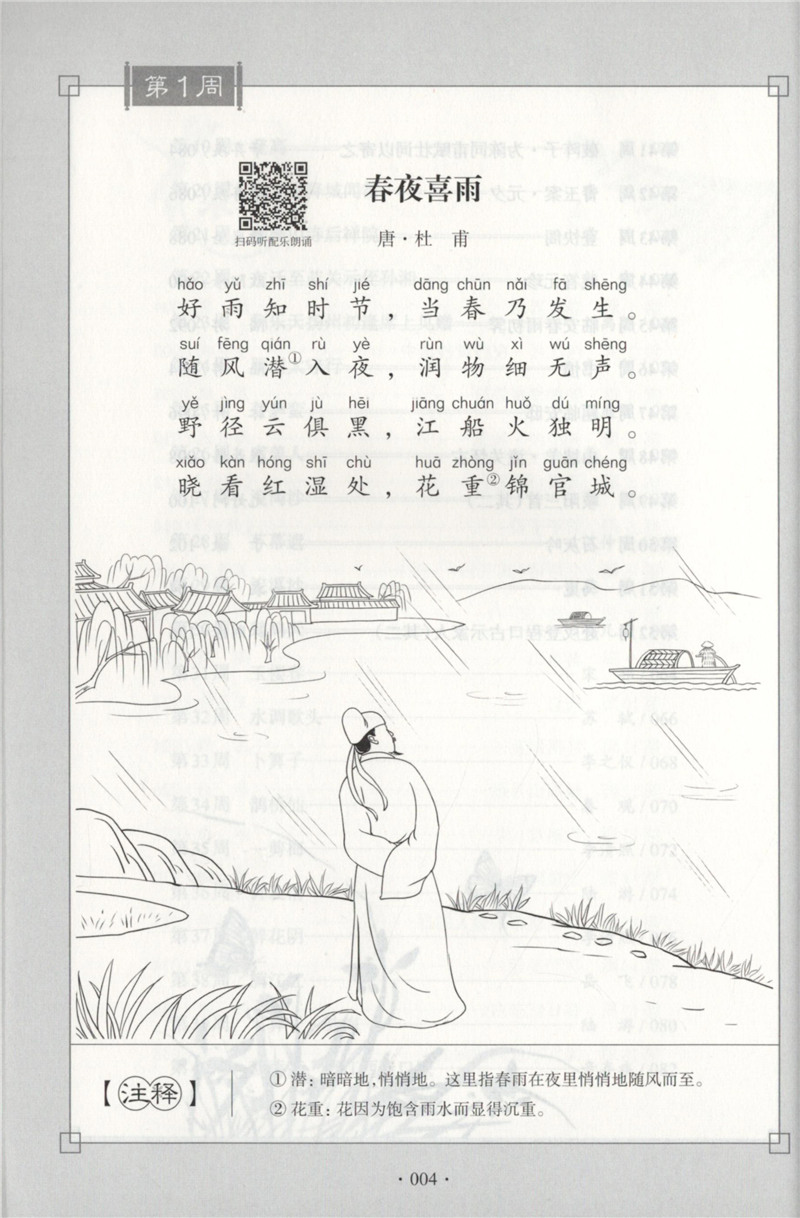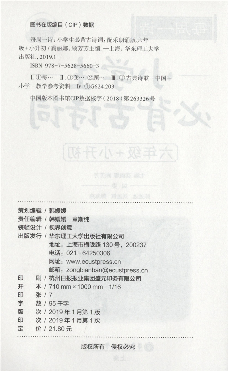 每周一诗 小学生必背古诗词 语文六年级+小升初/6年级 注音配乐朗诵 部编版扫码获取配套音频 华东理工大学出版社