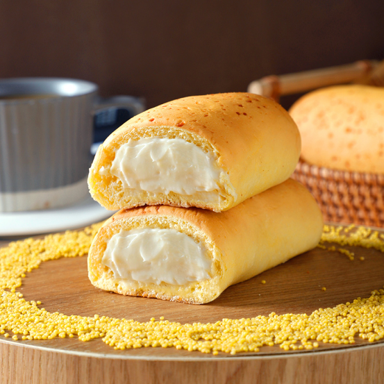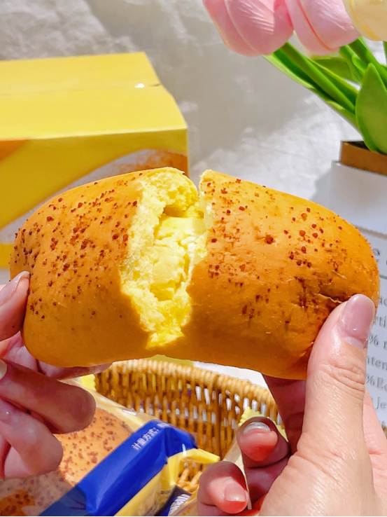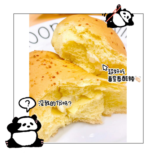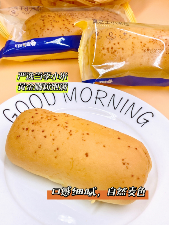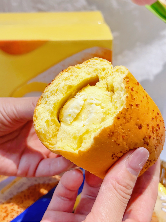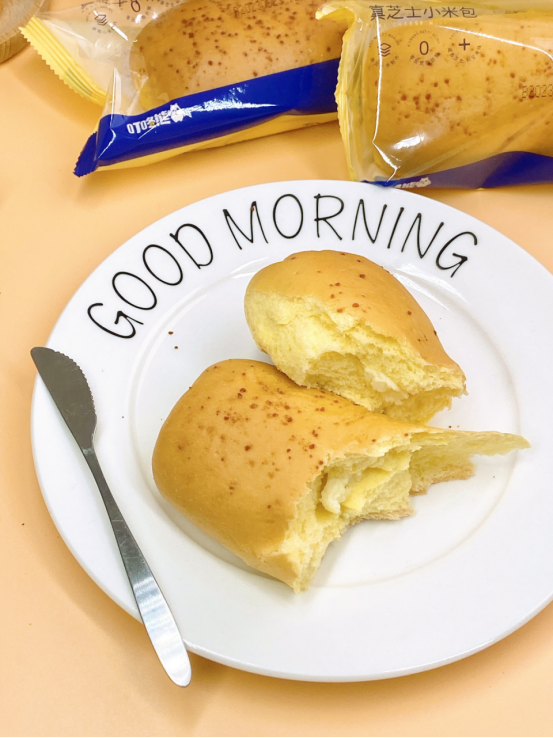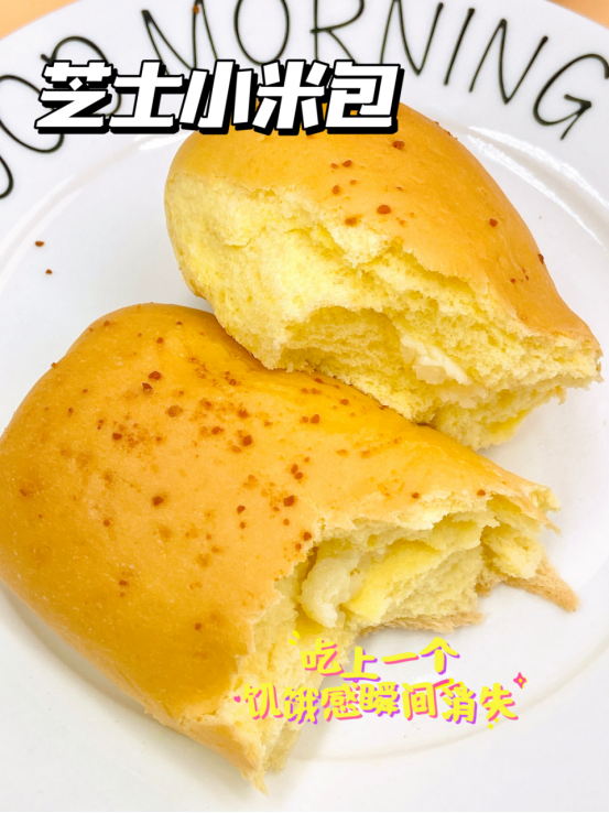 2、真芝士小米面包!每一个口感都是那么的完美,外层酥脆,内里柔软,咬下去还有浓郁的芝士香味!