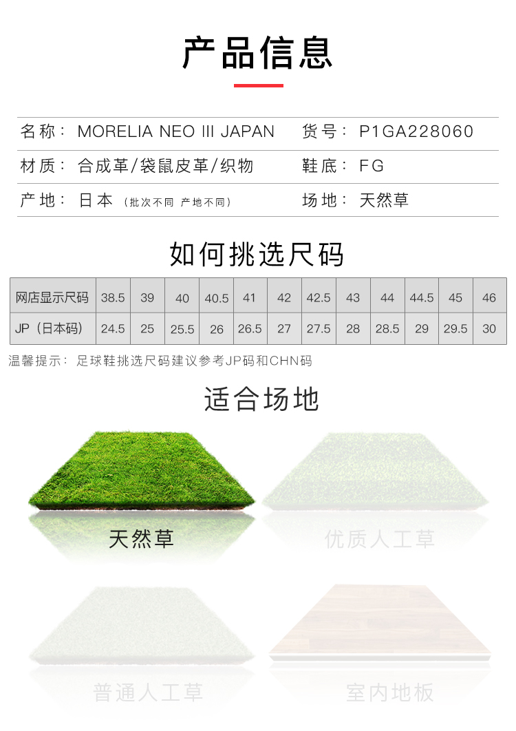 Mizuno/美津浓 MORELIA NEO III JAPAN (MIJ) 男子足球鞋P1GA228060