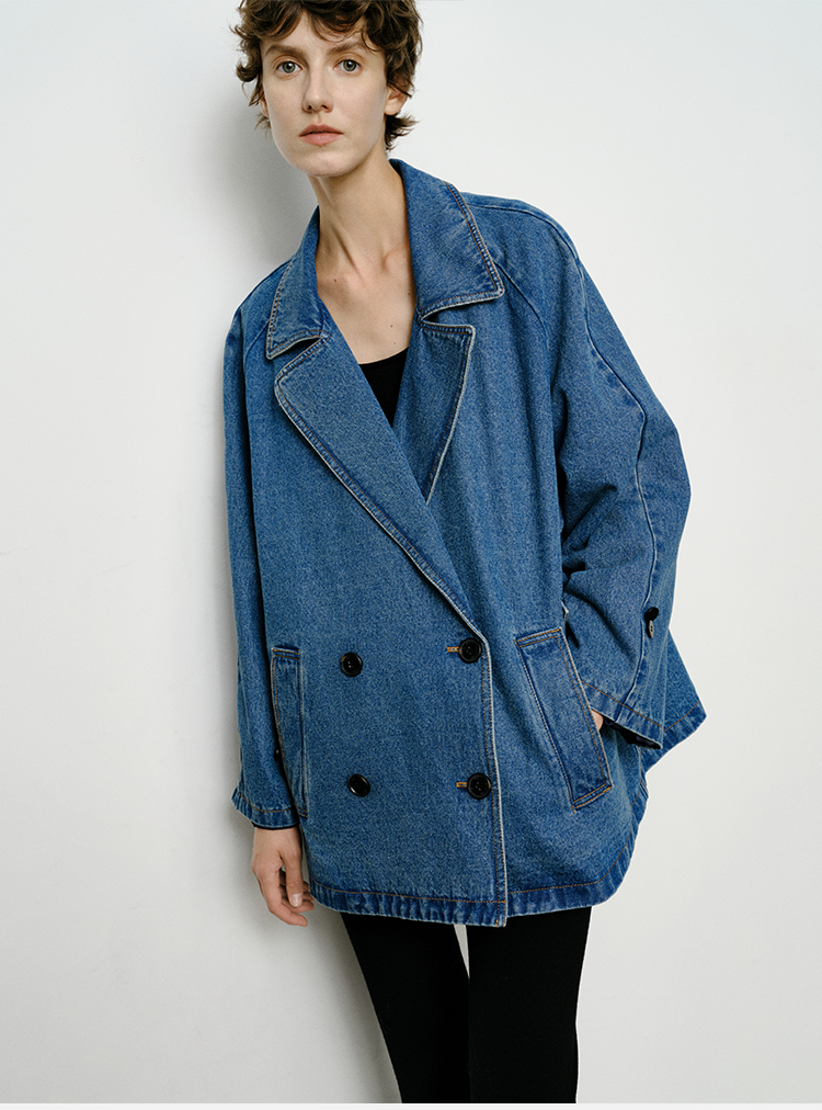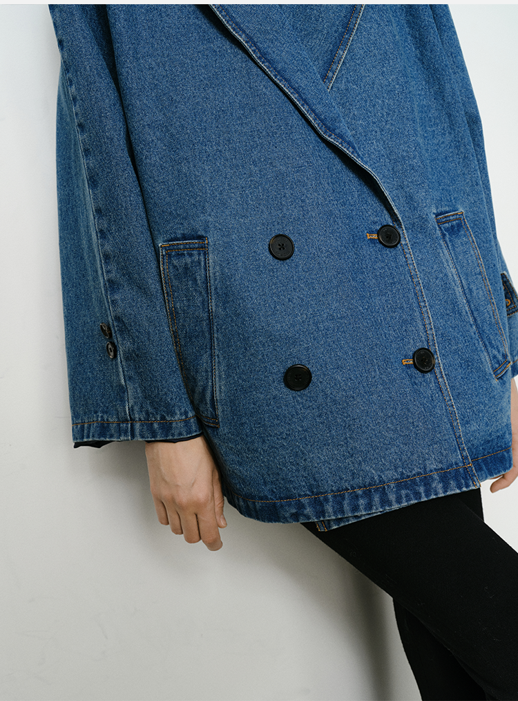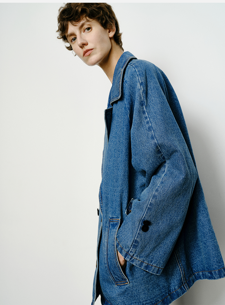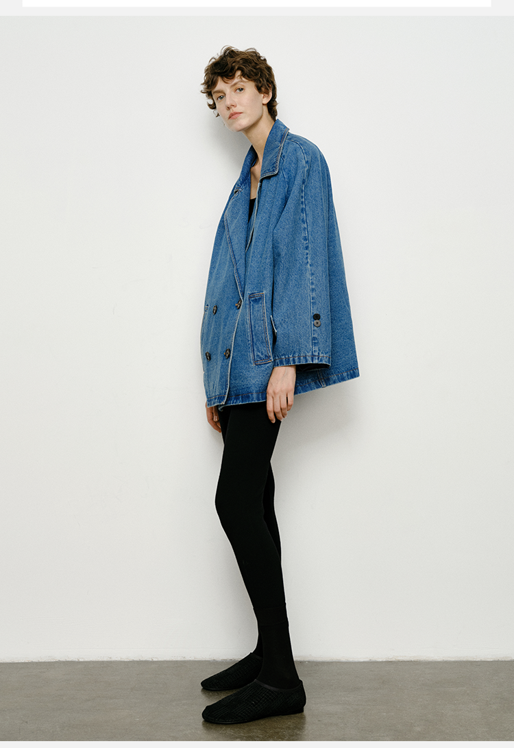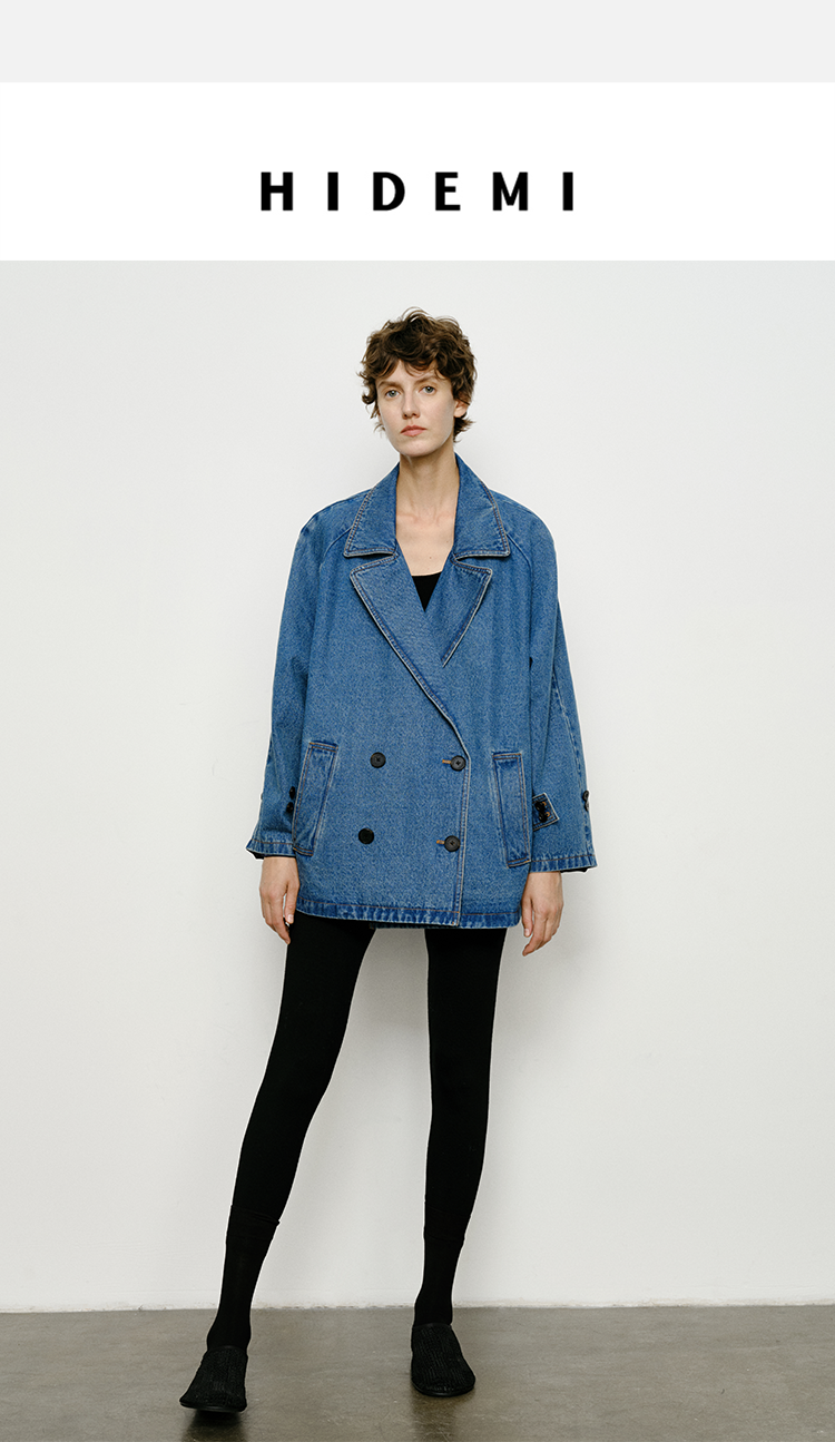 HIDEMI 双排扣翻领大廓形极简设计感水洗牛仔西装