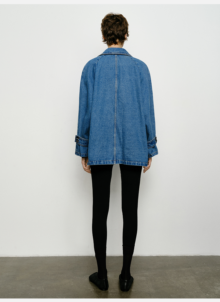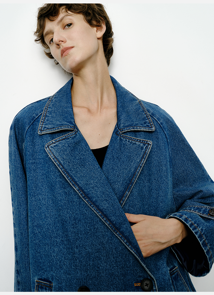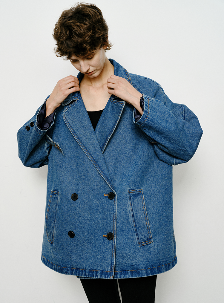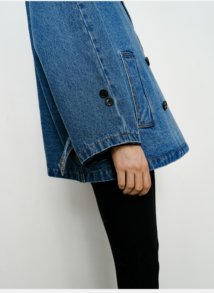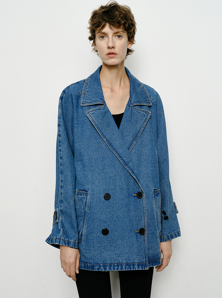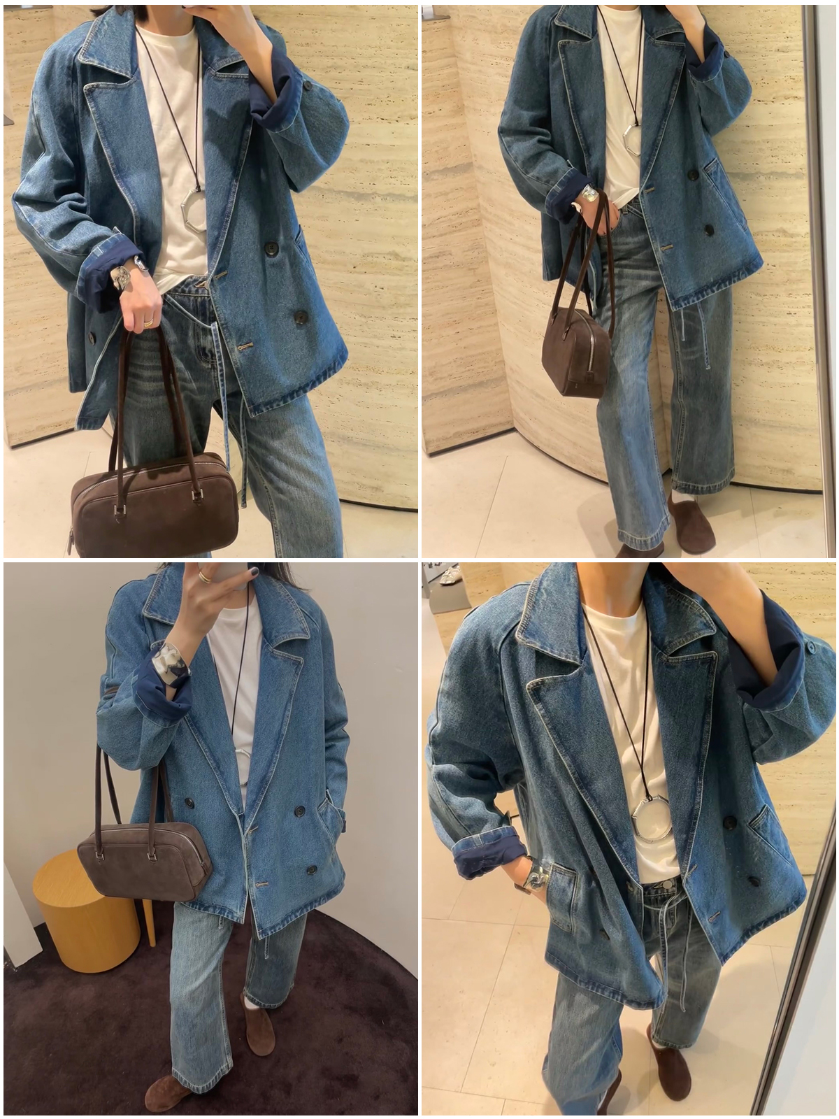 HIDEMI 双排扣翻领大廓形极简设计感水洗牛仔西装